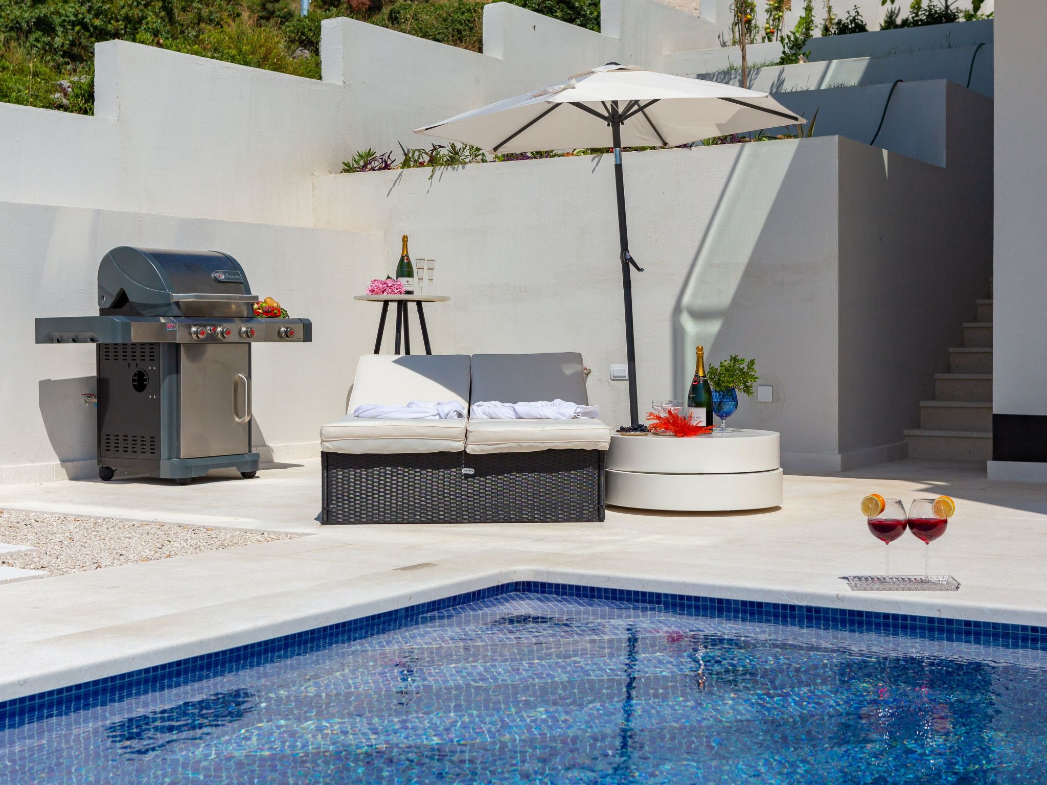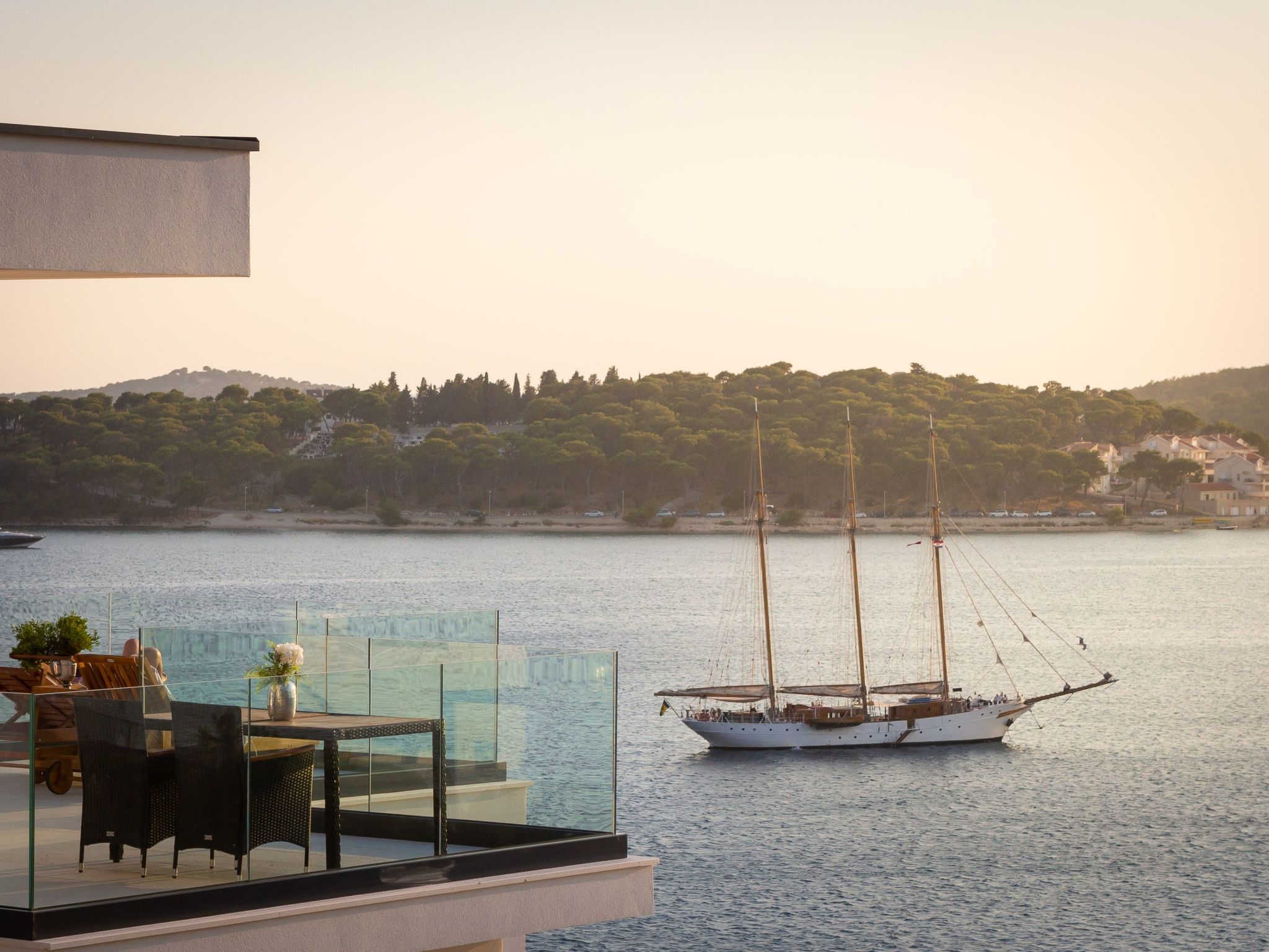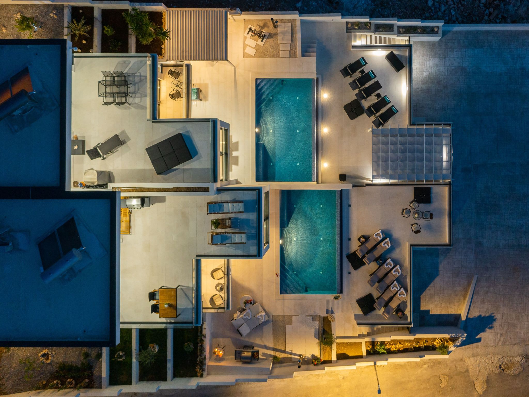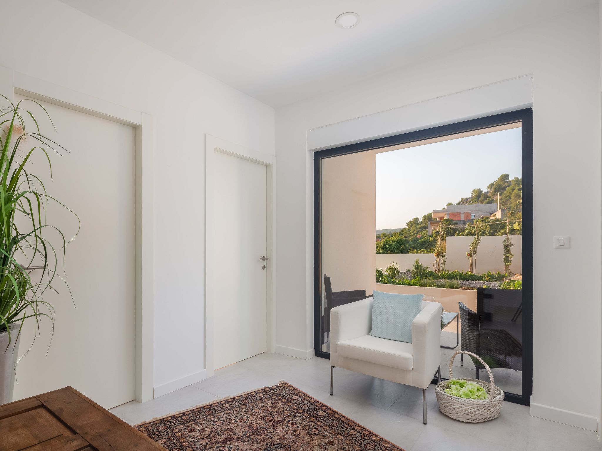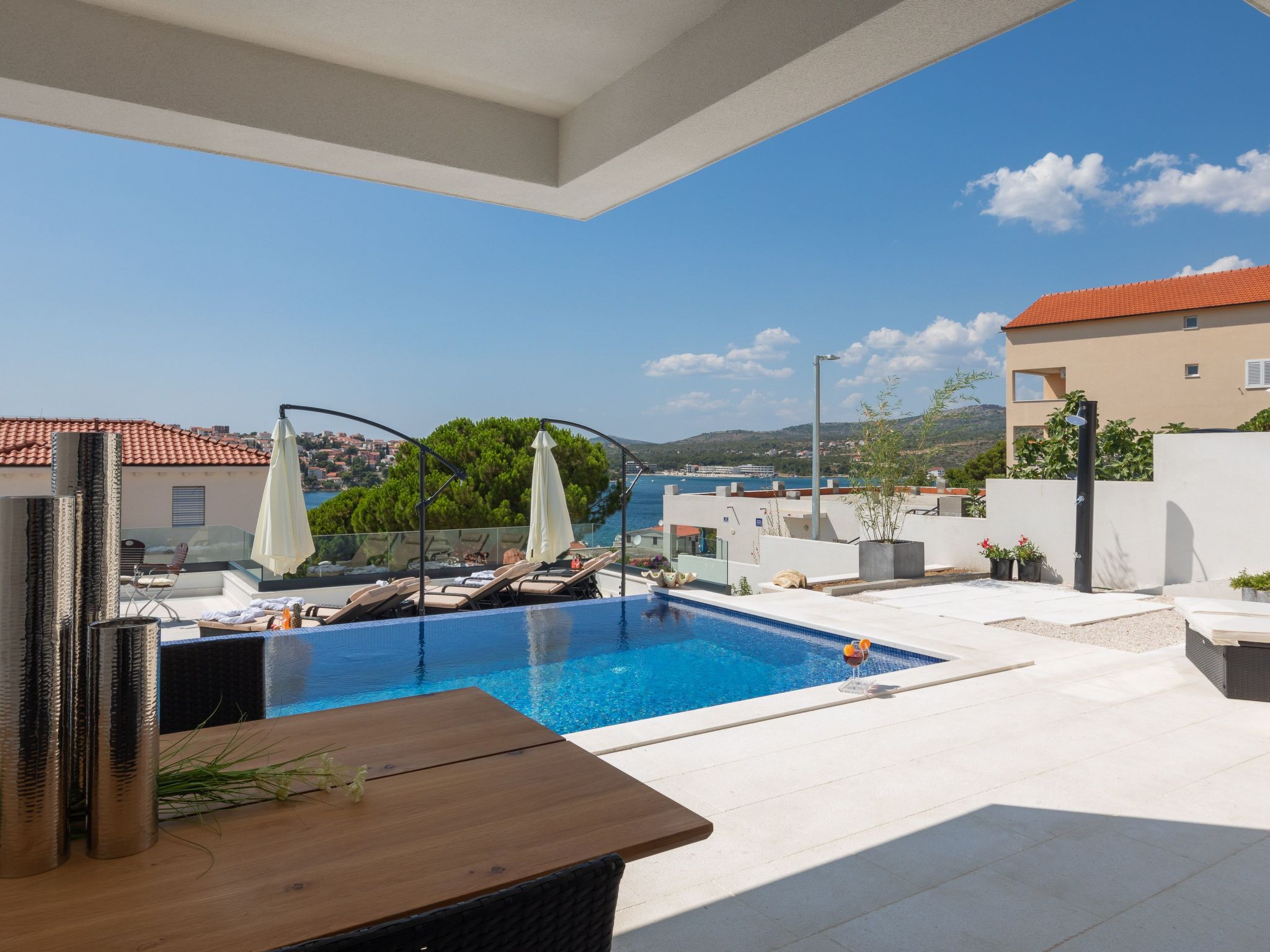 The west-facing villa guarantees unforgettable sunsets. The pictures with the unique panorama are ideal for posting. All rooms are with sea view, balcony, terrace and smart TV. The towns of Primosten & Marina Frappa can be reached in a few minutes. In Rogoznica you will find many nice bars & restaurants on the new promenade. It is only about 80 metres from the villa to the beach & sea.Zatoglav is popular, many new, beautiful holiday homes. There is no need to worry about construction noise during the season, work on new houses is suspended until the end of September. There are many new houses in the neighbourhood, but also simple houses that are a little older.On the beach, which is about 80 metres from the house, there is always a place to sunbathe, even in the high season. Zatoglav is an absolutely quiet place, the road that leads to Zatoglav also ends here. So there is no through traffic. Rogoznica is just a few minutes away. There are several supermarkets, banks, doctors and of course many restaurants offering fresh fish. For those who like to prepare their own fish, there is also a fish market offering the catch of the day. Several bakeries offer fresh bread every day and there is also a delivery service to the villas. The Marina Frappa harbour guarantees sophisticated boats and maritime flair. In addition to live music during the season, there are also culinary delights right on the harbour. The jetties are open and the boats can be used for souvenir photos.In Rogoznica you can hire all kinds of water sports, sailing boats and motorboats, jet skis and stand-up paddle boards. A highlight is the Dragon Eye near Marina Frappa, an archaeological phenomenon that takes us back thousands of years. You will be amazed. From Rogoznica it is only a few minutes' drive to Primosten. This small, picturesque town is the postcard motif par excellence. We particularly recommend the sunset and the live music during the season. A detour to the Nardin restaurant is absolutely worthwhile, super sushi and top wines await the guest. If you drive further north, towards Sebinik, the coast is always on the left and you can't help but be amazed. Many beautiful restaurants, secluded beaches. After about 30 minutes you reach Sibenik, this old harbour town with its fortifications has an extremely attractive old town where the evening life pulsates. Many new restaurants and chic bars have opened in recent years and offer a really attractive programme.The villa was built in a modern style, all rooms are west-facing and there are stunning sea views from every bedroom. The rooms are all brightly decorated and furnished in a modern maritime style. Each bedroom has a Smart TV with internet access and the ability to watch Netflix, Prime, etc. The living room has a 65-inch screen and a Marshall jukebox that can be used to control Bluetooth and other sources. A total of 220 square metres of living space is available. The large living room with integrated dining room and designer kitchen guarantee pleasant evenings. All modern cooking facilities are available and invite you to enjoy.In the outdoor area there is a large dining table and sun loungers for 8 people, the sun loungers have storage tables with a cooling compartment. A large gas barbecue turns the barbecue party into a leisure highlight.Rogoznica, about 3 km away, is one of the most beautiful marinas in Croatia. There are bathing facilities everywhere, gravel, concrete, some even with sand. The Dragon eye is one of the attractions in Rogoznica. Primosten about 10 km away is a popular excursion destination with a unique backdrop, this island town is a must for every holidaymaker. Trogir is about 20 minutes away and is highly recommended with its cosy old town. The rest of the fortress can be admired, but there is also a beautiful waterfront promenade with moorings for luxury yachts. The largest city in the region, Split, is about 45 minutes away. Nightlife, culture, shopping malls, the airport, everything is available here