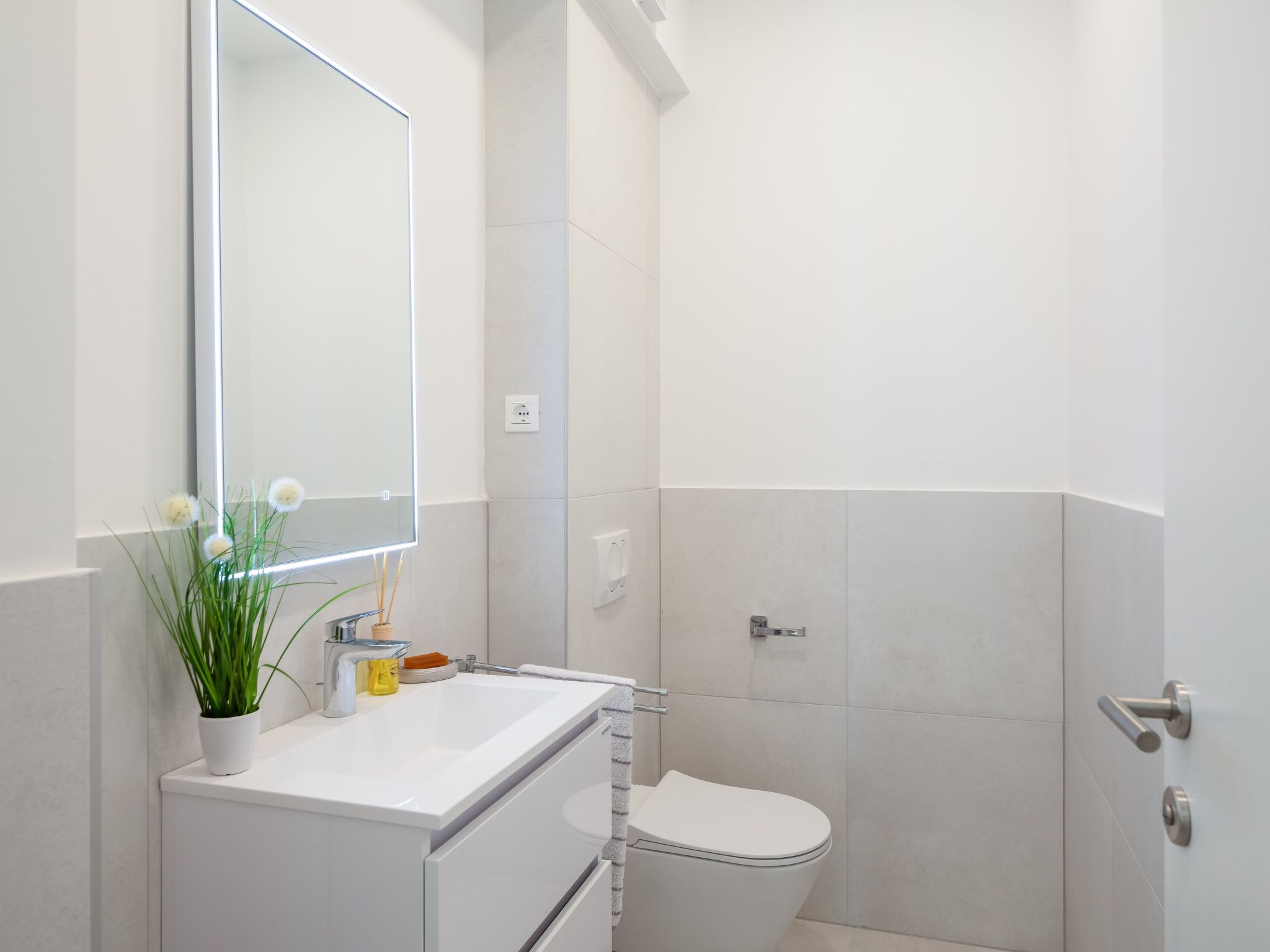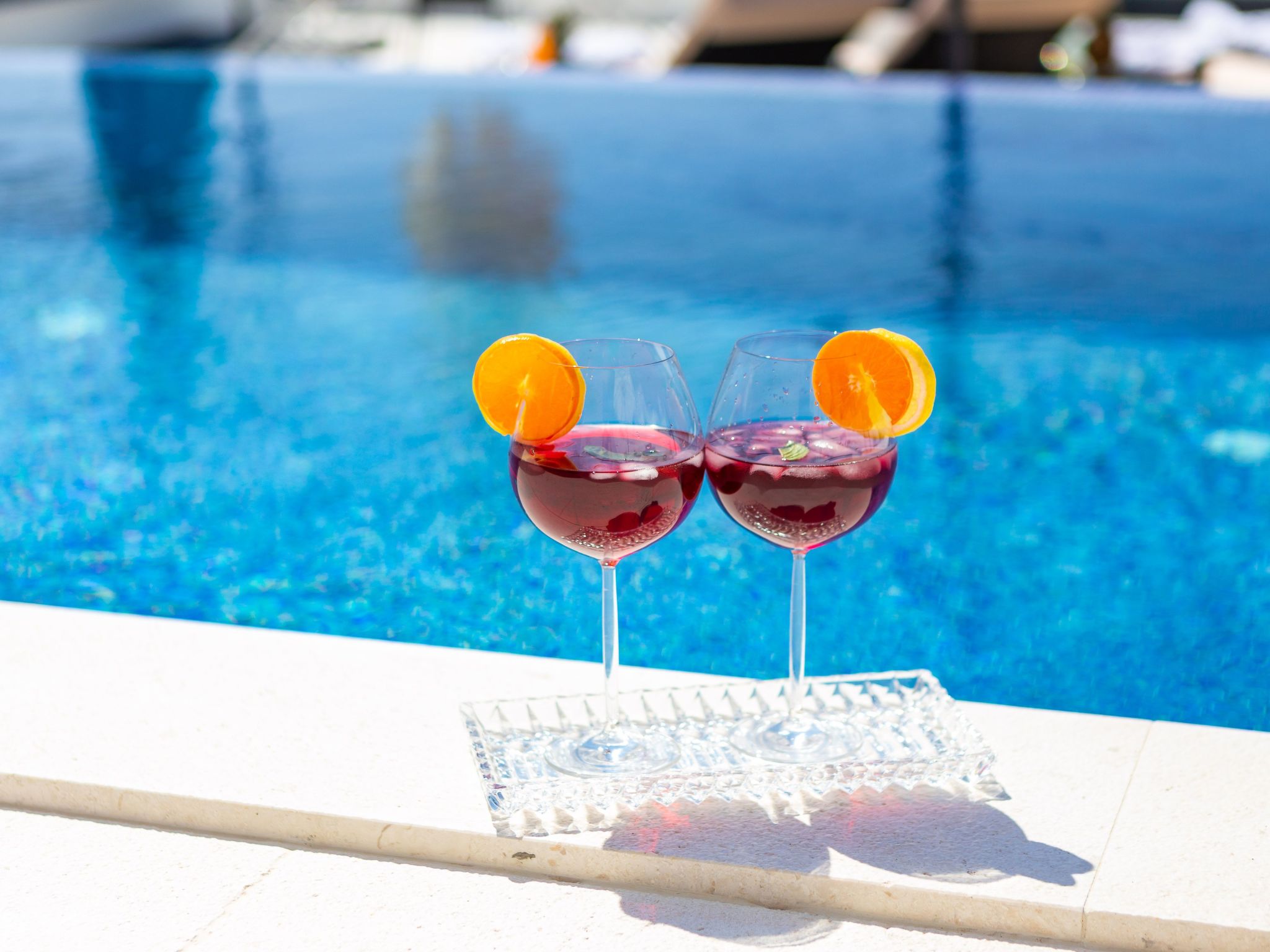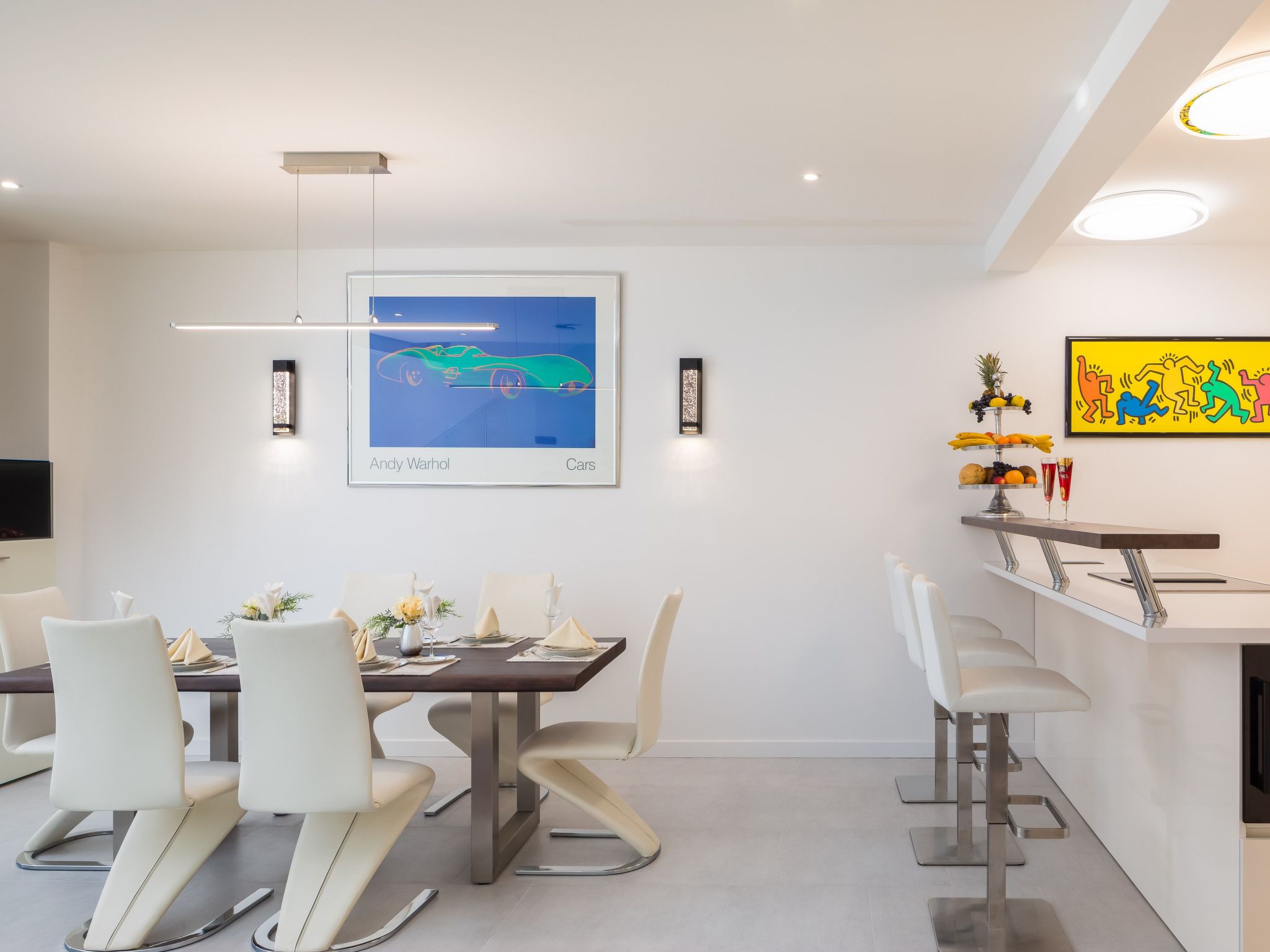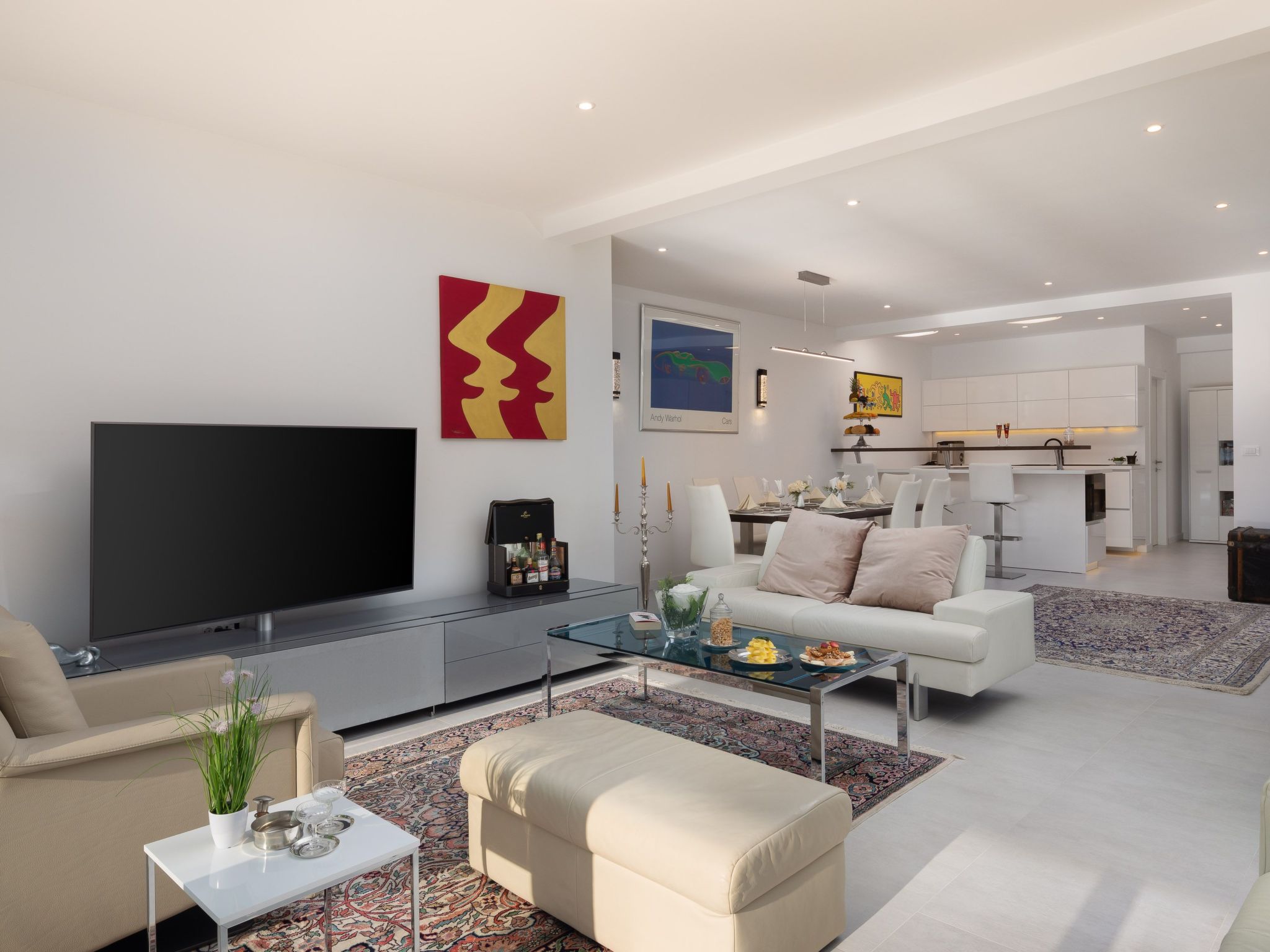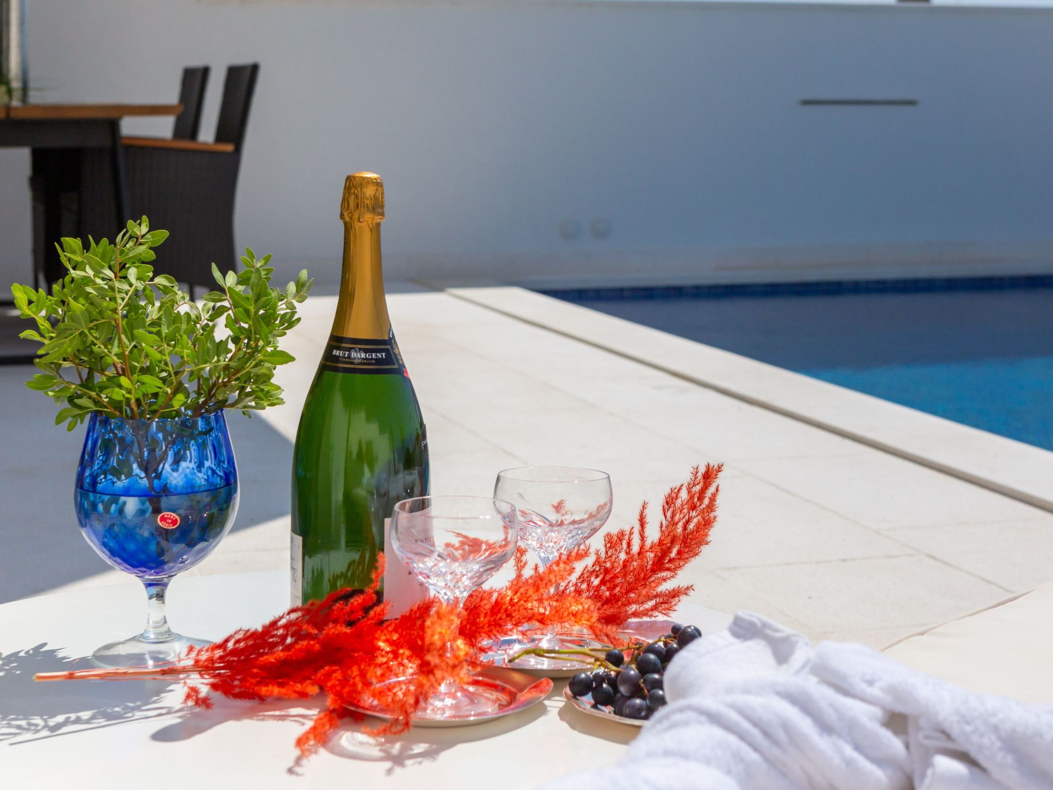 The west-facing villa guarantees unforgettable sunsets. The pictures with the unique panorama are ideal for posting. All rooms are with sea view, balcony, terrace and smart TV. The towns of Primosten & Marina Frappa can be reached in a few minutes. In Rogoznica you will find many nice bars & restaurants on the new promenade. It is only about 80 metres from the villa to the beach & sea.Zatoglav is popular, many new, beautiful holiday homes. There is no need to worry about construction noise during the season, work on new houses is suspended until the end of September. There are many new houses in the neighbourhood, but also simple houses that are a little older.On the beach, which is about 80 metres from the house, there is always a place to sunbathe, even in the high season. Zatoglav is an absolutely quiet place, the road that leads to Zatoglav also ends here. So there is no through traffic. Rogoznica is just a few minutes away. There are several supermarkets, banks, doctors and of course many restaurants offering fresh fish. For those who like to prepare their own fish, there is also a fish market offering the catch of the day. Several bakeries offer fresh bread every day and there is also a delivery service to the villas. The Marina Frappa harbour guarantees sophisticated boats and maritime flair. In addition to live music during the season, there are also culinary delights right on the harbour. The jetties are open and the boats can be used for souvenir photos.In Rogoznica you can hire all kinds of water sports, sailing boats and motorboats, jet skis and stand-up paddle boards. A highlight is the Dragon Eye near Marina Frappa, an archaeological phenomenon that takes us back thousands of years. You will be amazed. From Rogoznica it is only a few minutes' drive to Primosten. This small, picturesque town is the postcard motif par excellence. We particularly recommend the sunset and the live music during the season. A detour to the Nardin restaurant is absolutely worthwhile, super sushi and top wines await the guest. If you drive further north, towards Sebinik, the coast is always on the left and you can't help but be amazed. Many beautiful restaurants, secluded beaches. After about 30 minutes you reach Sibenik, this old harbour town with its fortifications has an extremely attractive old town where the evening life pulsates. Many new restaurants and chic bars have opened in recent years and offer a really attractive programme.The villa was built in a modern style, all rooms are west-facing and there are stunning sea views from every bedroom. The rooms are all brightly decorated and furnished in a modern maritime style. Each bedroom has a Smart TV with internet access and the ability to watch Netflix, Prime, etc. The living room has a 65-inch screen and a Marshall jukebox that can be used to control Bluetooth and other sources. A total of 220 square metres of living space is available. The large living room with integrated dining room and designer kitchen guarantee pleasant evenings. All modern cooking facilities are available and invite you to enjoy.In the outdoor area there is a large dining table and sun loungers for 8 people, the sun loungers have storage tables with a cooling compartment. A large gas barbecue turns the barbecue party into a leisure highlight.Rogoznica, about 3 km away, is one of the most beautiful marinas in Croatia. There are bathing facilities everywhere, gravel, concrete, some even with sand. The Dragon eye is one of the attractions in Rogoznica. Primosten about 10 km away is a popular excursion destination with a unique backdrop, this island town is a must for every holidaymaker. Trogir is about 20 minutes away and is highly recommended with its cosy old town. The rest of the fortress can be admired, but there is also a beautiful waterfront promenade with moorings for luxury yachts. The largest city in the region, Split, is about 45 minutes away. Nightlife, culture, shopping malls, the airport, everything is available here