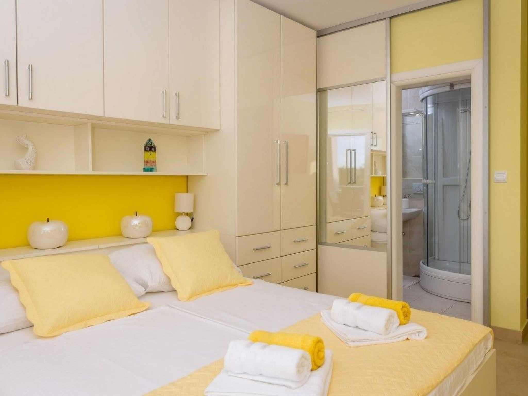 Geweldig strand in Rogoznica met en zwemgedeelte voor het hele gezin. Douches, kleedhokjes, bars en een opblaasbaar waterpark.