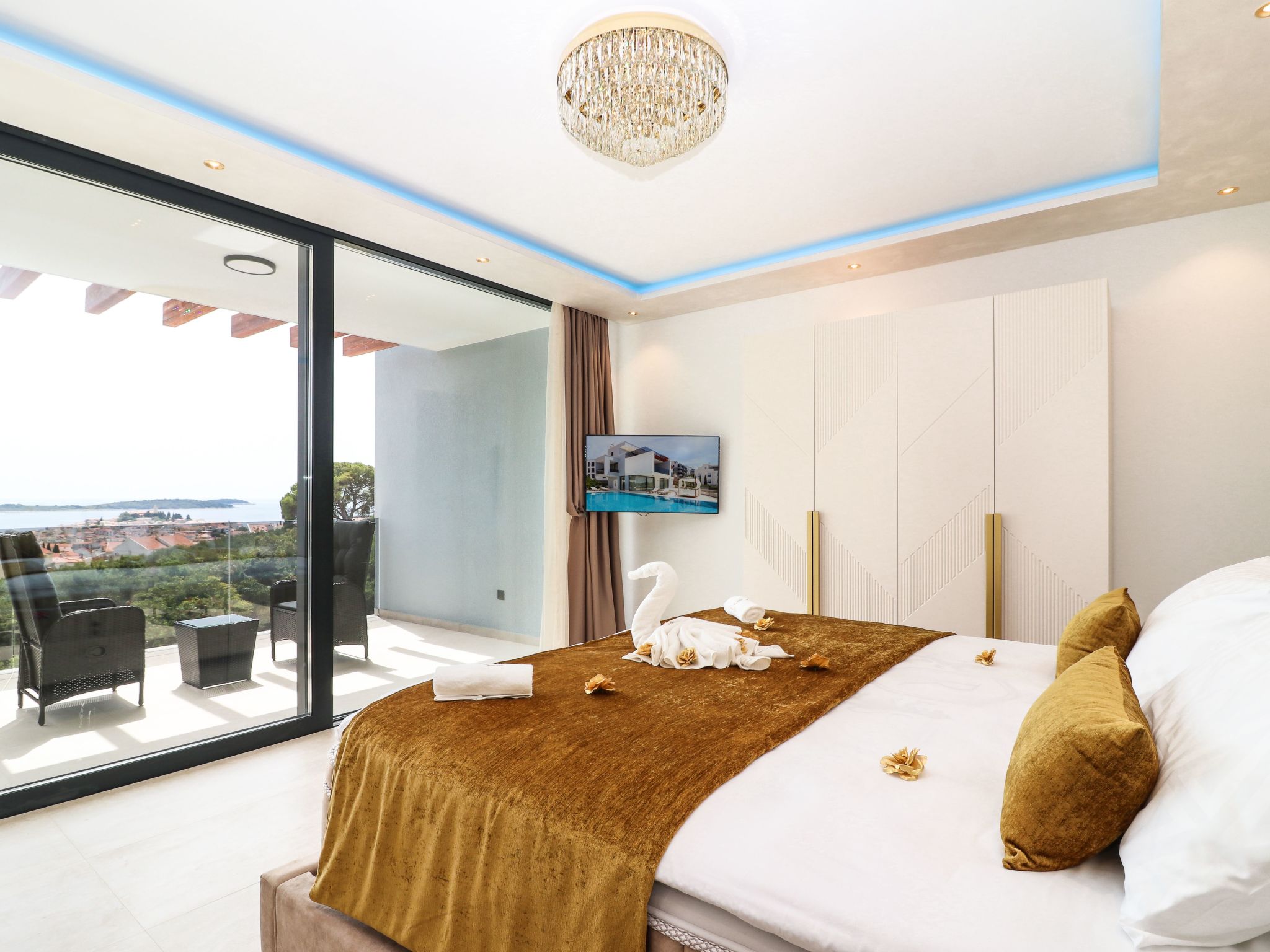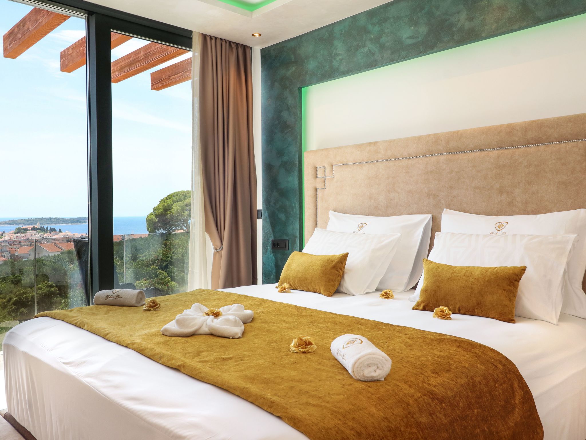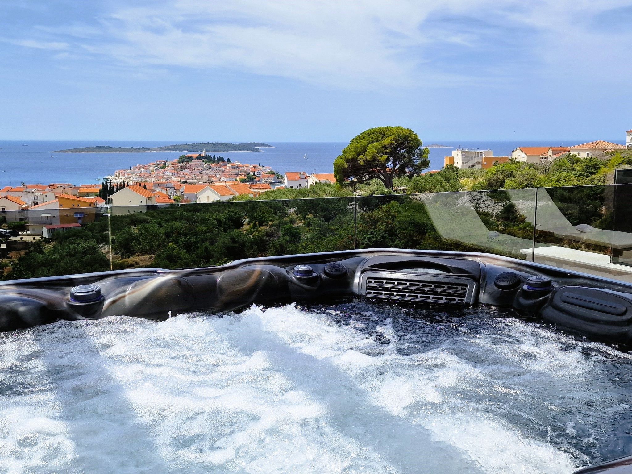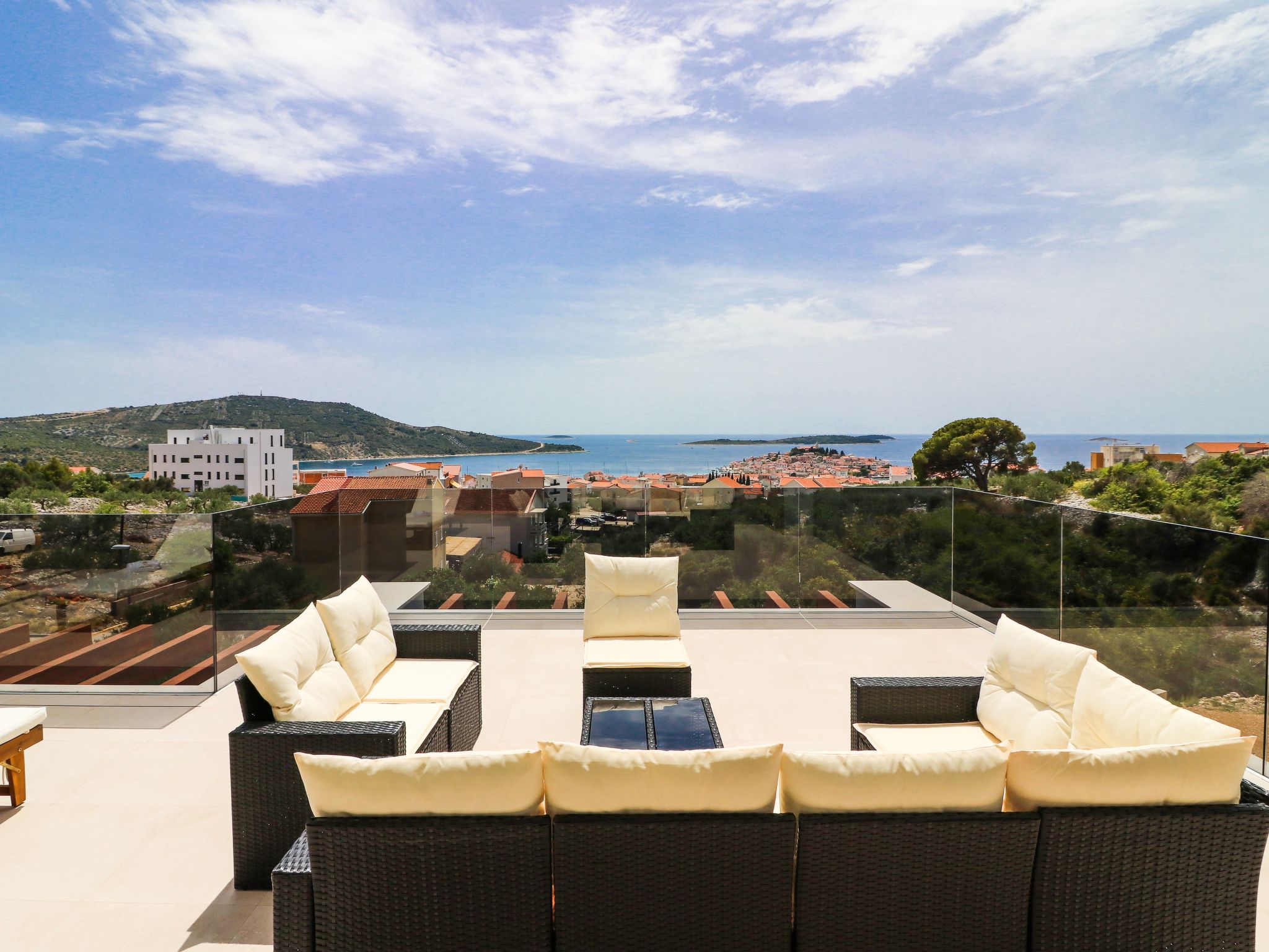 Villa Golden Lion is a luxurious property located in Primošten, a small Mediterranean jewel of central Dalmatia, and offering complete comfort. Within the house there is a heated infinity pool of 75 m2 with counter-current swimming, a fully equipped private gym of 80 m2, a sauna, a bubbelbad, four bedrooms with their own bathrooms, each of which has a view of the sea, a modern and fully equipped kitchen, and spacious, lighted living room with a touch of elegance. The house has underfloor heating, all rooms are air-conditioned, which guarantees optimal comfort. It offers a fantastic panoramic view of the sea and Primošten that takes your breath away.This facility will offer you maximum comfort and enable quality rest and relaxation.Our interests are to provide our guests optimal comfort and quality that will make their vacation a complete pleasure. As hosts, we look forward to the cooperation and hospitality of our future guests. We are available to our guests for all possible inquiries and requests, which we will try to fulfill as soon as possible. With many years of experience in renting, we can provide useful information, guide guests to local attractions, good restaurants and locations that might be interesting to visit.The facility is located near the center of Primošten, approx. 600 m from the main beach. It is located in a neighborhood that consists mostly of newly built residential buildings and has a good connection with the place. In just a few minutes on foot, you can reach the town center, all shops, restaurants, cafes and one of the most beautiful beaches in the heart of Dalmatia.