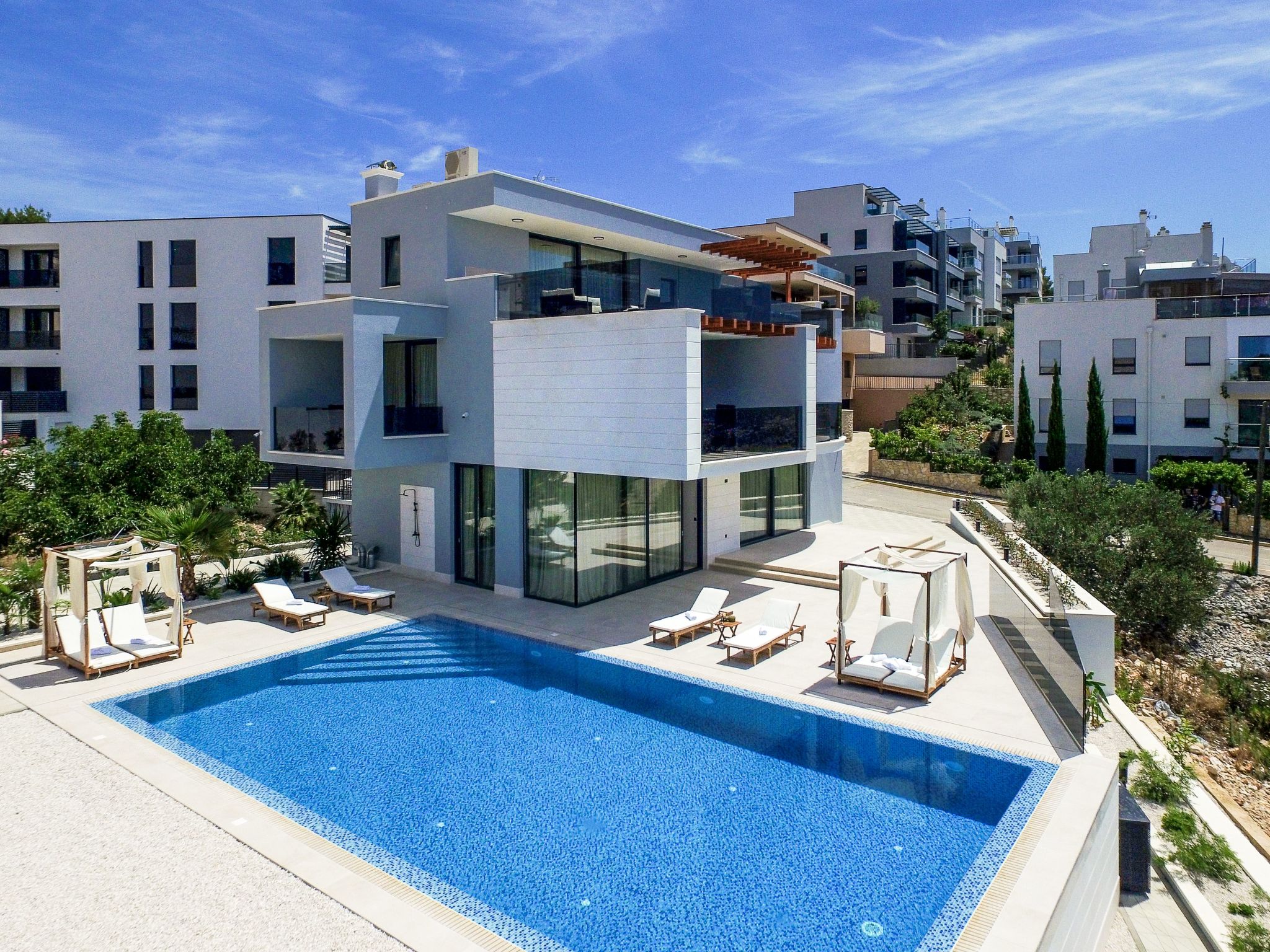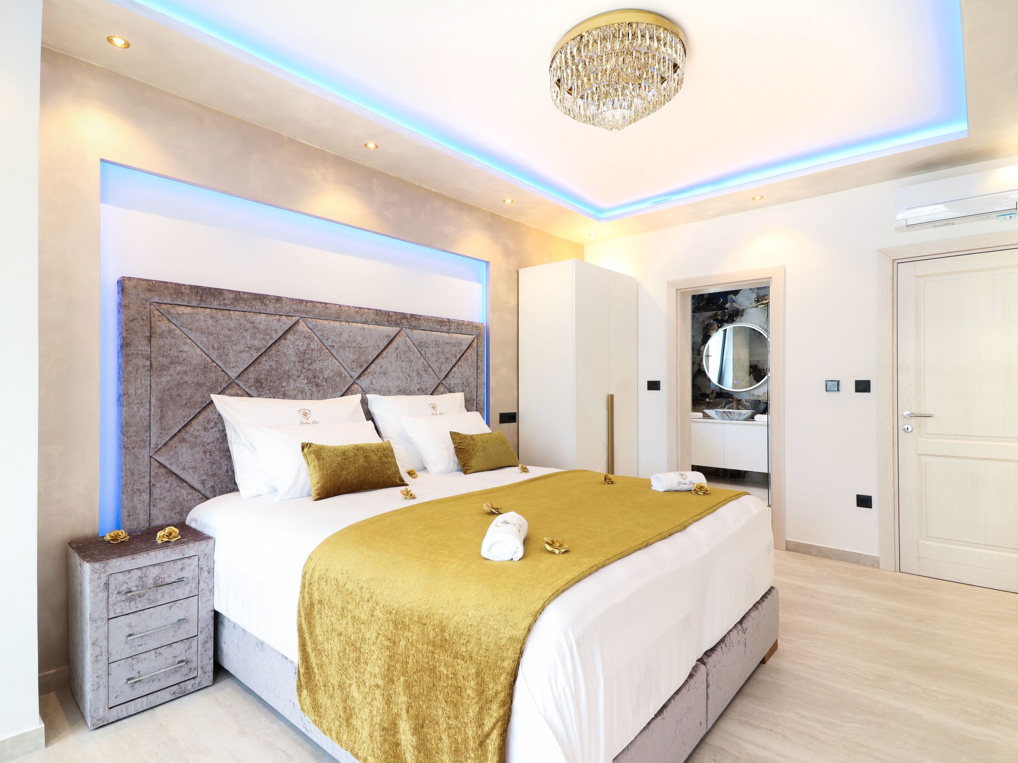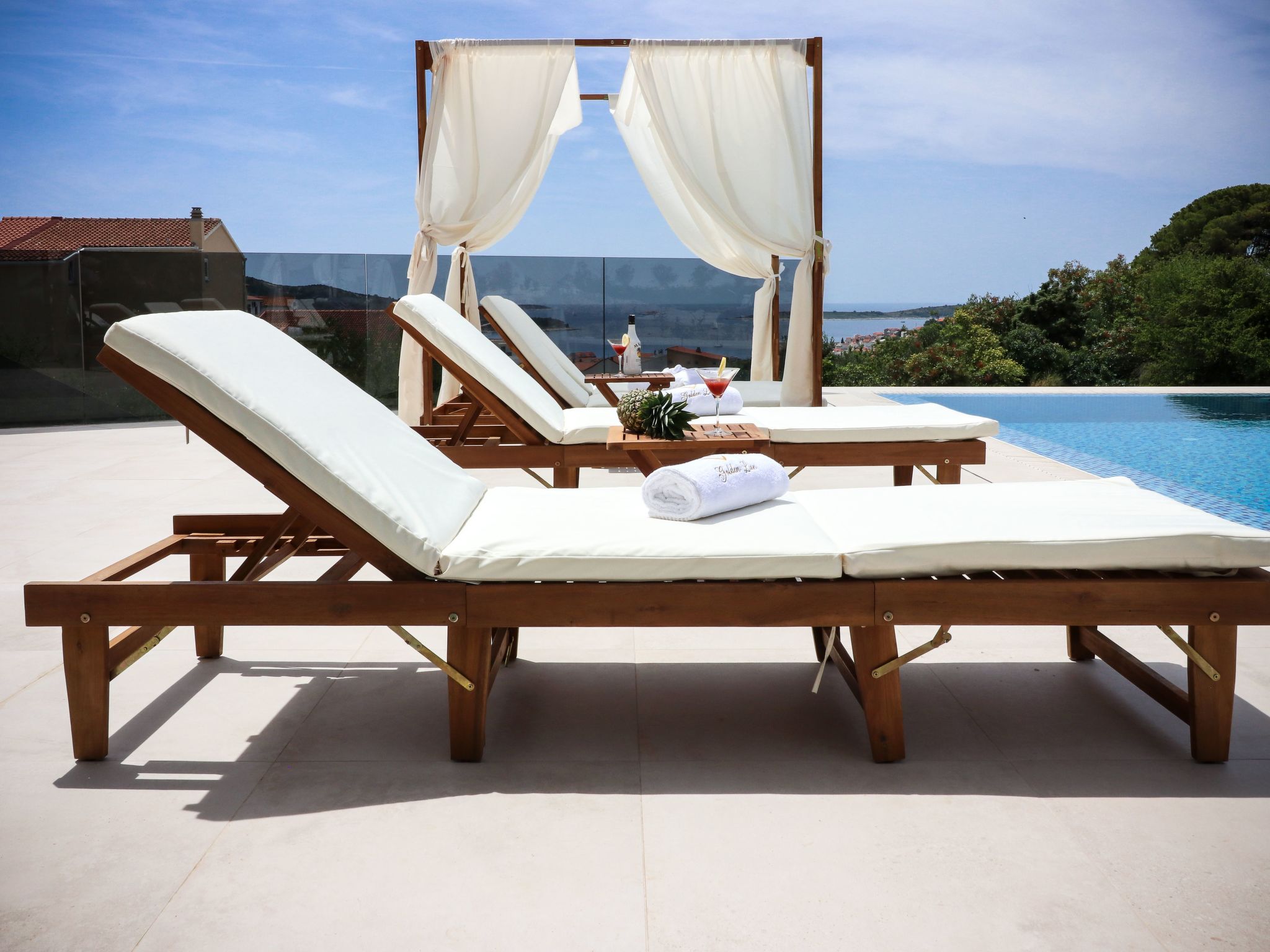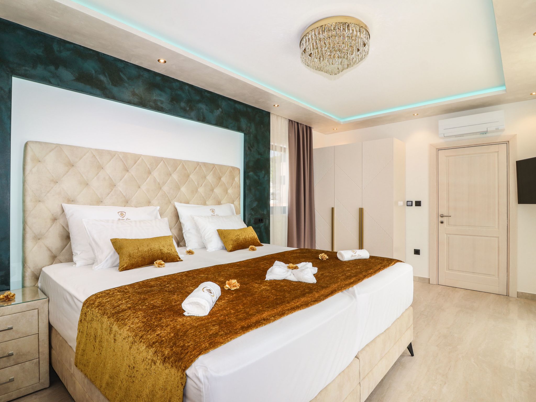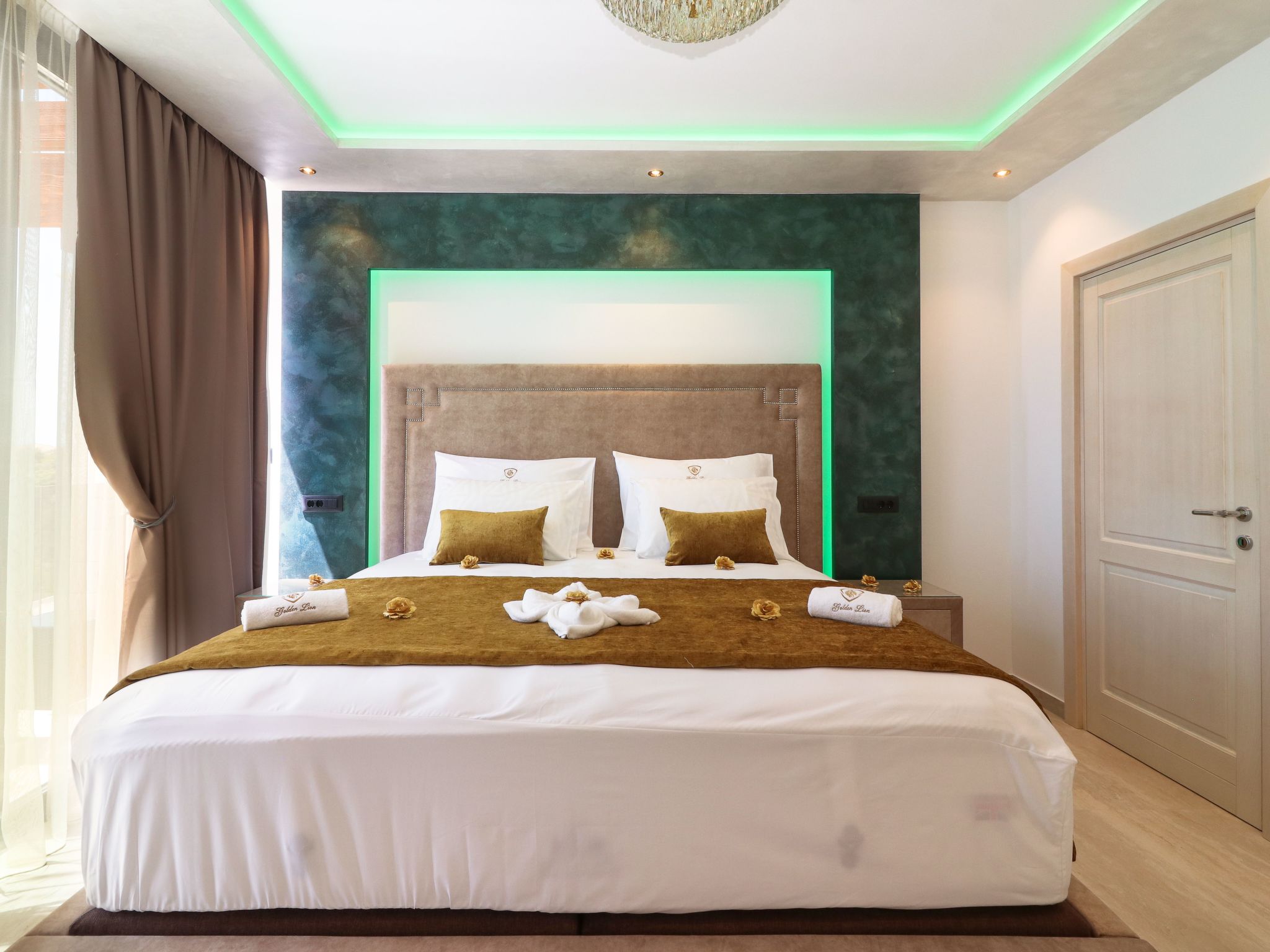 Villa Golden Lion is a luxurious property located in Primošten, a small Mediterranean jewel of central Dalmatia, and offering complete comfort. Within the house there is a heated infinity pool of 75 m2 with counter-current swimming, a fully equipped private gym of 80 m2, a sauna, a bubbelbad, four bedrooms with their own bathrooms, each of which has a view of the sea, a modern and fully equipped kitchen, and spacious, lighted living room with a touch of elegance. The house has underfloor heating, all rooms are air-conditioned, which guarantees optimal comfort. It offers a fantastic panoramic view of the sea and Primošten that takes your breath away.This facility will offer you maximum comfort and enable quality rest and relaxation.Our interests are to provide our guests optimal comfort and quality that will make their vacation a complete pleasure. As hosts, we look forward to the cooperation and hospitality of our future guests. We are available to our guests for all possible inquiries and requests, which we will try to fulfill as soon as possible. With many years of experience in renting, we can provide useful information, guide guests to local attractions, good restaurants and locations that might be interesting to visit.The facility is located near the center of Primošten, approx. 600 m from the main beach. It is located in a neighborhood that consists mostly of newly built residential buildings and has a good connection with the place. In just a few minutes on foot, you can reach the town center, all shops, restaurants, cafes and one of the most beautiful beaches in the heart of Dalmatia.