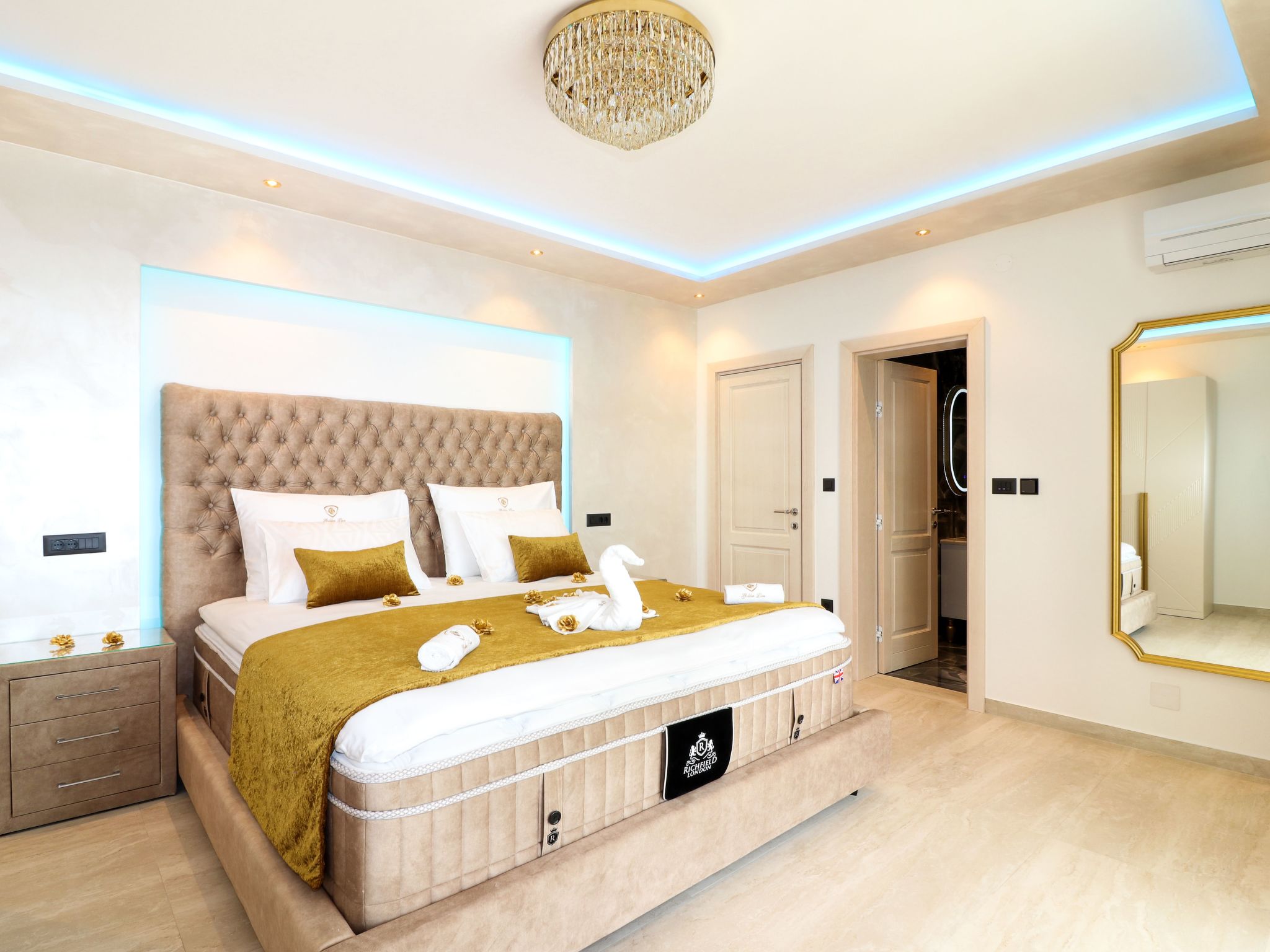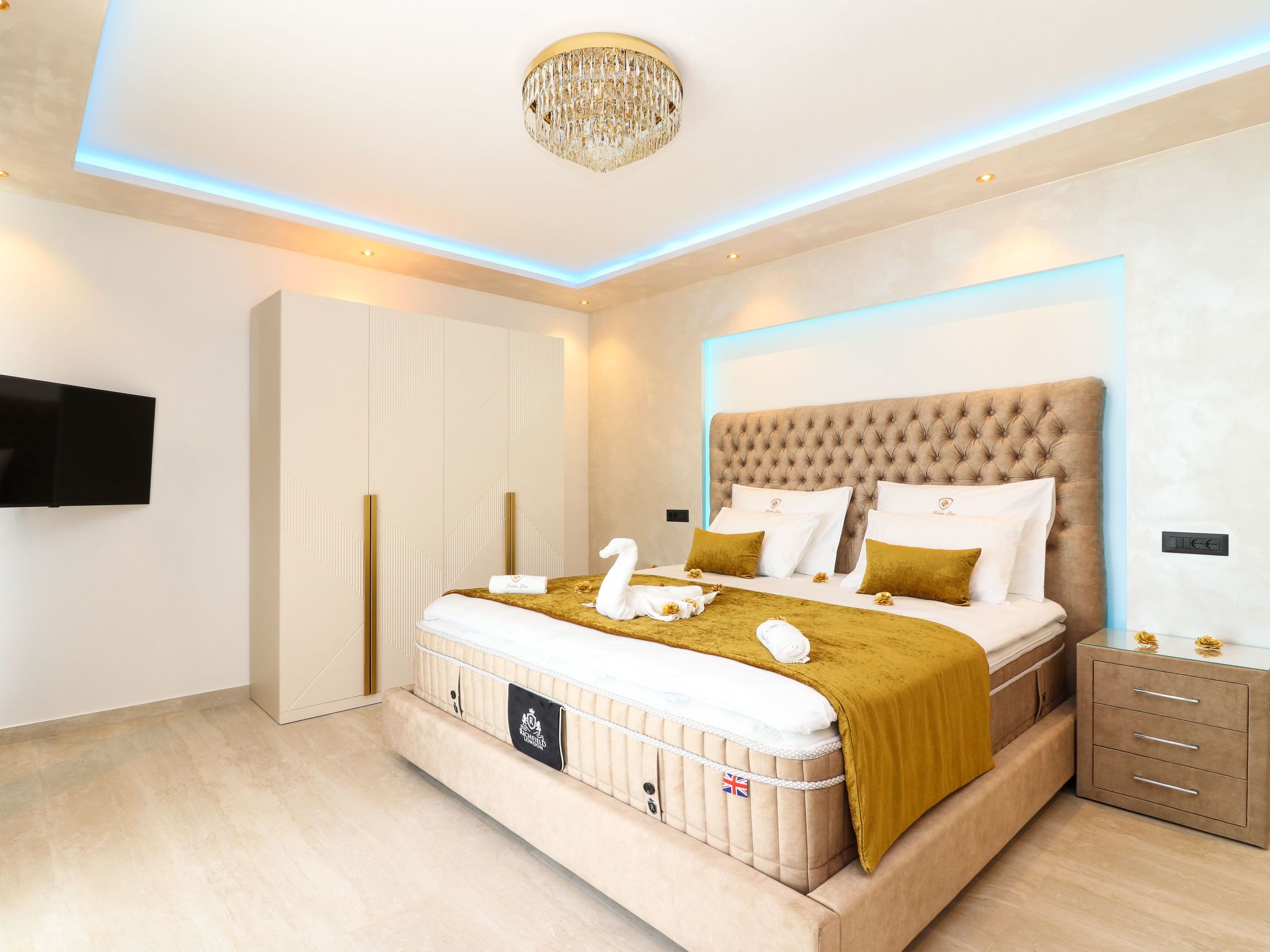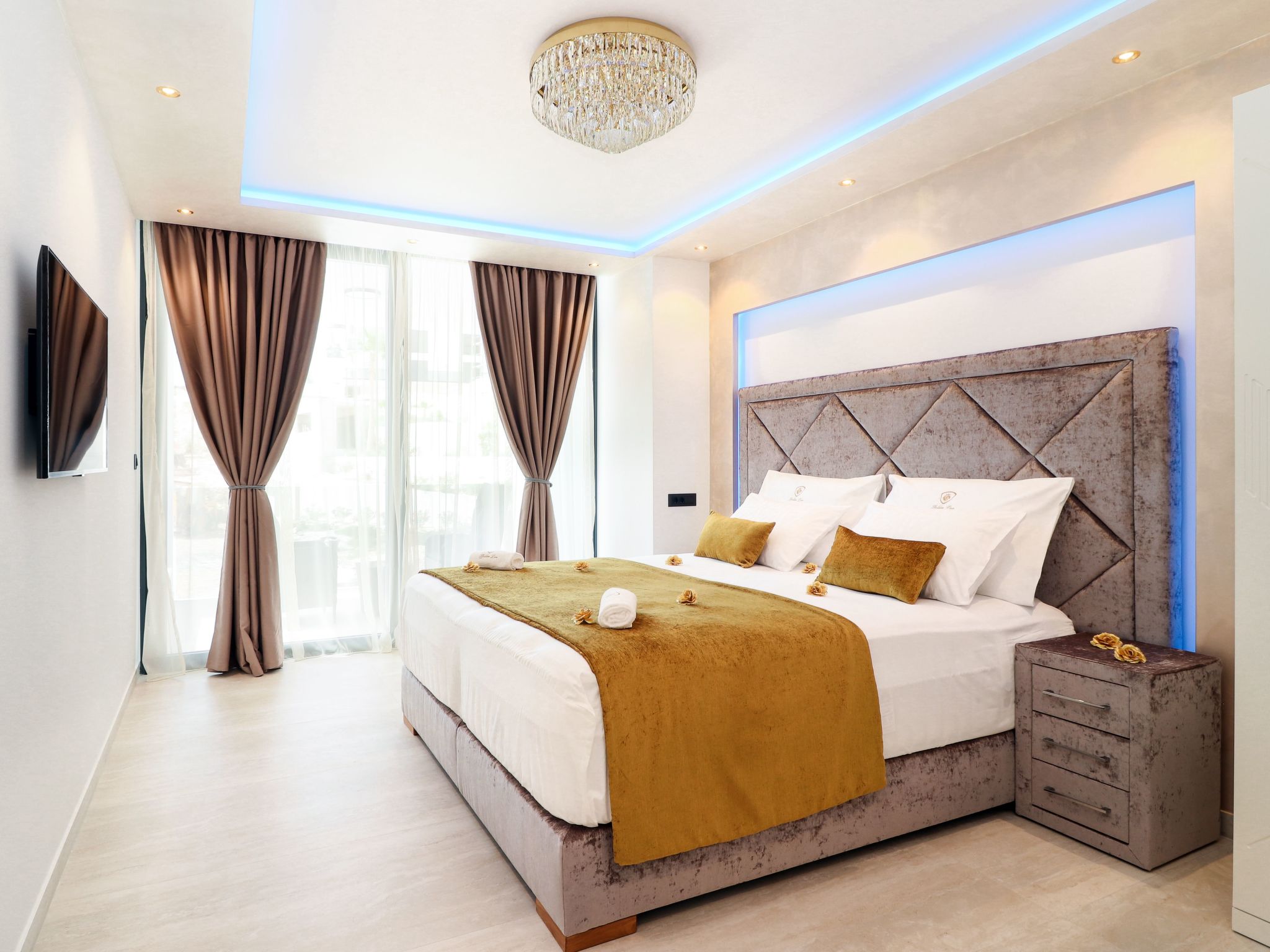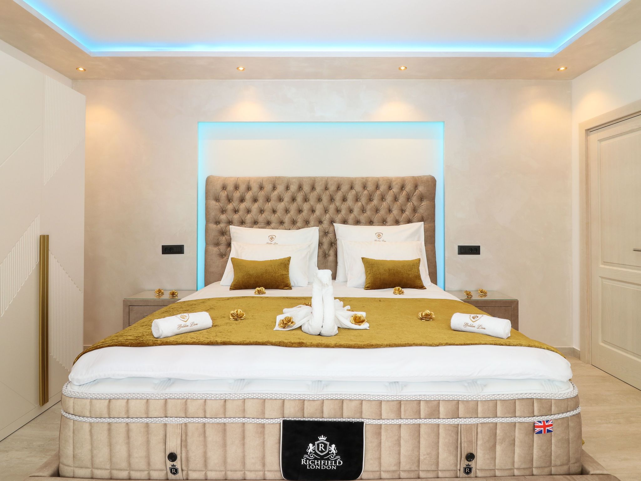 Villa Golden Lion is a luxurious property located in Primošten, a small Mediterranean jewel of central Dalmatia, and offering complete comfort. Within the house there is a heated infinity pool of 75 m2 with counter-current swimming, a fully equipped private gym of 80 m2, a sauna, a bubbelbad, four bedrooms with their own bathrooms, each of which has a view of the sea, a modern and fully equipped kitchen, and spacious, lighted living room with a touch of elegance. The house has underfloor heating, all rooms are air-conditioned, which guarantees optimal comfort. It offers a fantastic panoramic view of the sea and Primošten that takes your breath away.This facility will offer you maximum comfort and enable quality rest and relaxation.Our interests are to provide our guests optimal comfort and quality that will make their vacation a complete pleasure. As hosts, we look forward to the cooperation and hospitality of our future guests. We are available to our guests for all possible inquiries and requests, which we will try to fulfill as soon as possible. With many years of experience in renting, we can provide useful information, guide guests to local attractions, good restaurants and locations that might be interesting to visit.The facility is located near the center of Primošten, approx. 600 m from the main beach. It is located in a neighborhood that consists mostly of newly built residential buildings and has a good connection with the place. In just a few minutes on foot, you can reach the town center, all shops, restaurants, cafes and one of the most beautiful beaches in the heart of Dalmatia.