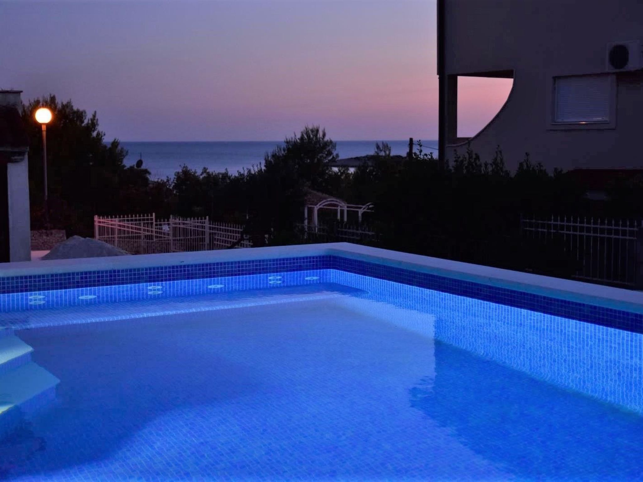 4-star Villa "Luger" - panoramic windows, 150m to the sea, high terrace with sea view, 2016 NEW The villa is located in the quiet, Dalmatian village of Razanj in a quiet side street. 150 metres from the house to the beach. The beach right next to the house is relatively steep, so ladders are provided. On the other side of the bay (5 min walk) there is another beach (pebbles) that leads shallow into the water. The villa is the highest building in the surrounding neighbourhood and therefore offers an excellent view of the sea. It is completely surrounded by a well-kept garden plot.