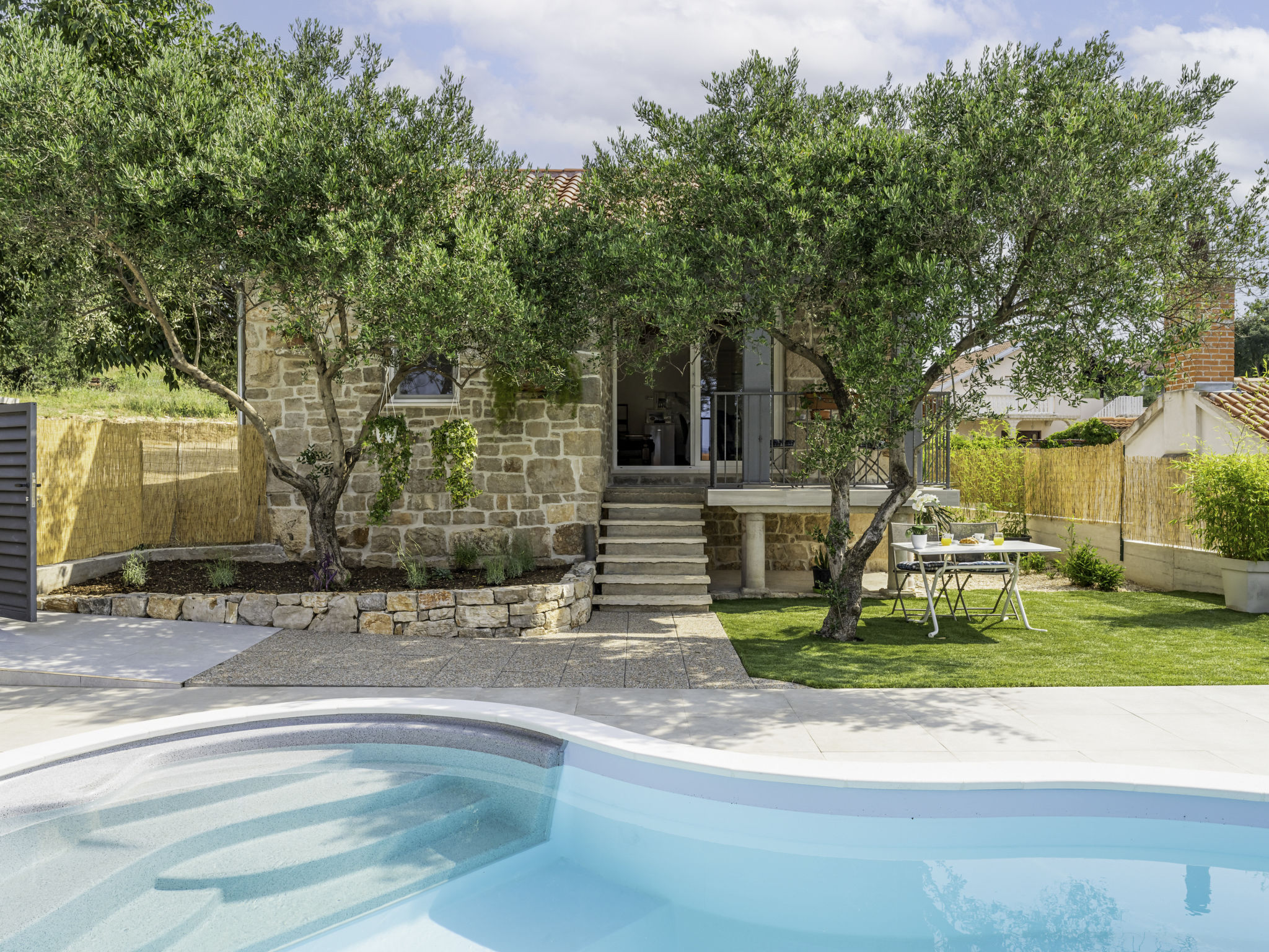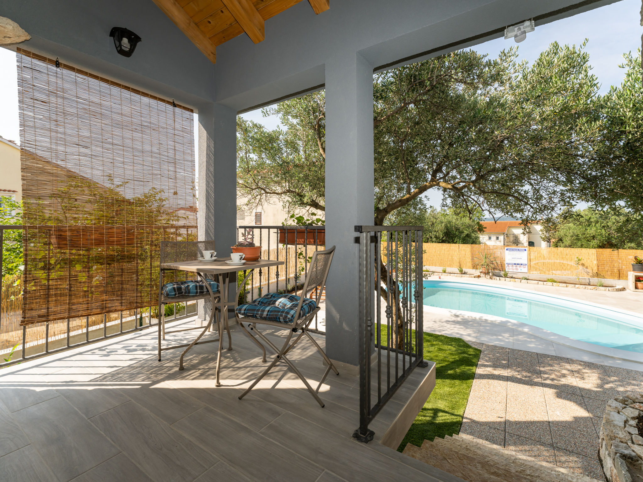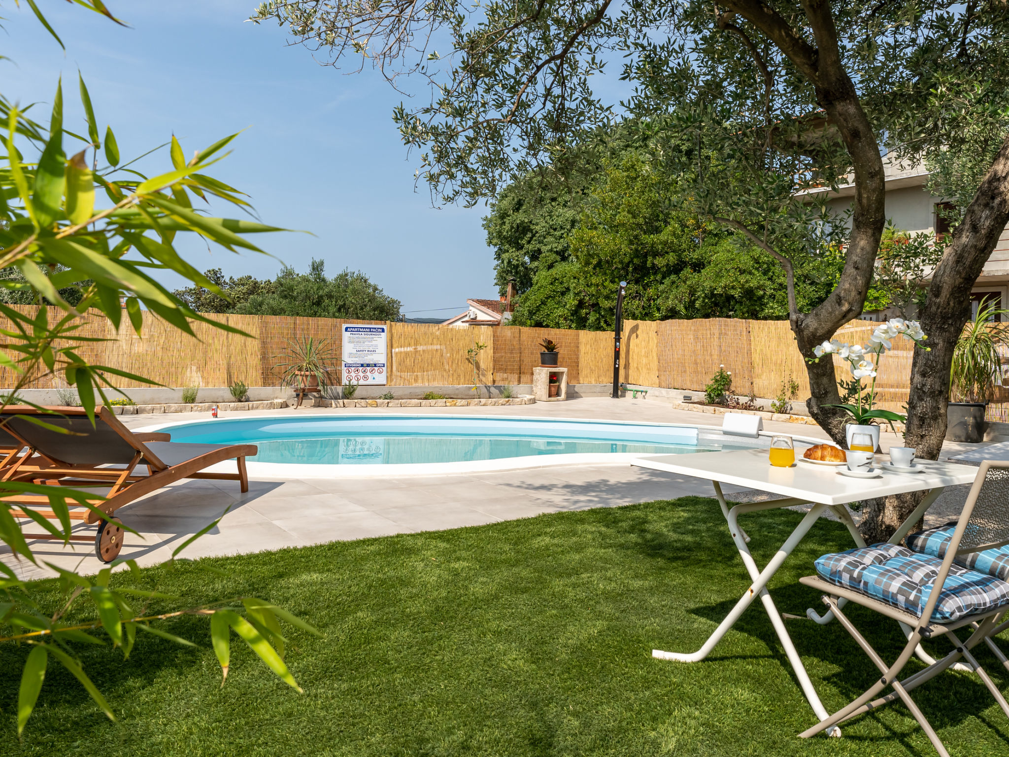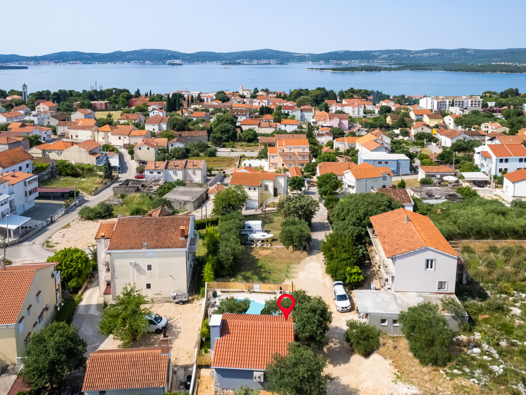 Sv.Filip i Jakov 4 km van Biograd: Mooi eengezinswoning "Pacin", bouwjaar 2023. 800 m van het centrum, zonnige, verhoogde ligging, 600 m van zee, 600 m van het strand. Voor alleengebruik: terrein 300 m2 (omheind), openluchtzwembad niervormig (7 x 4 m, 28 m2, 140 cm diepte, seizoensgebonden beschikbaarheid: 01.Apr. - 01.Nov.) met trap. Tuinmeubelen, barbecue, onderhoud zwembad door de eigenaar/tuinman. In het huis: internetaansluiting, wasmachine. Parkeerplaats bij het huis. Supermarkt 475 m, restaurant 600 m, bushalte 350 m, kiezelstrand 1 km.