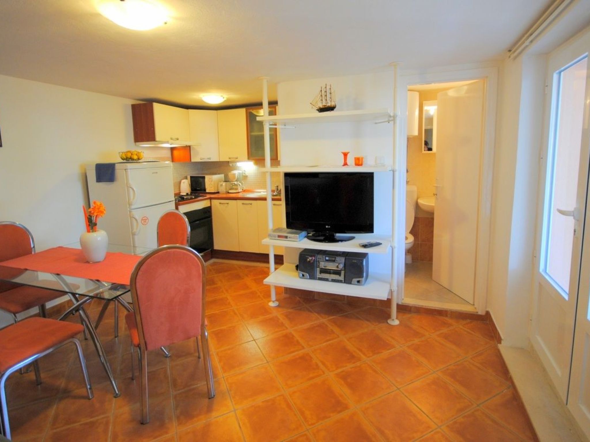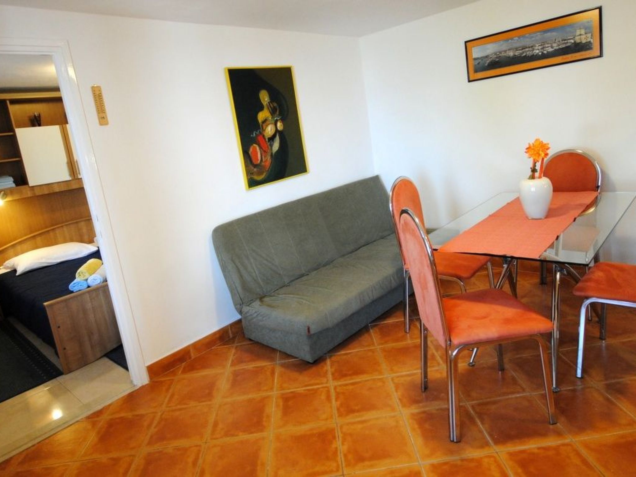 Welcome to the perfect getaway nestled in the heart of Okrug Gornji, where the sparkling Adriatic Sea is just a whisper away. This charming ground floor beach studio apartment offers a serene retreat for up to three guests, seeking a blend of comfort and convenience. A mere stone's throw from the sea and close to all local amenities, this property is an ideal choice for those eager to explore the beauty of Dalmatia whilst enjoying the coziness of a home-like setting.Inside, the 40 square meter space is thoughtfully arranged to maximize comfort. The bedroom is equipped with a comfortable double bed, ensuring restful nights. For additional sleeping arrangements, a sofa bed is available to accommodate an extra guest. The combination of a well-equipped kitchen and dining area provides a welcoming space for meal preparation and enjoyment. With partial air conditioning available, the indoor ambiance remains pleasant throughout your stay, regardless of the weather outside.Stepping outside, the apartment extends into an inviting open front terrace, allowing guests to bask in the mild Dalmatian climate. Although the focus is not on luxury, the communal garden area offers a tranquil spot for relaxation and socializing. This shared space adds an extra dimension of outdoor enjoyment, complementing your beachside holiday experience.The apartment's enviable location means that the shimmering sea is only 20 meters away, inviting guests to indulge in leisurely swims or morning strolls along the pebble beach. Furthermore, the vibrant center of Okrug Gornji is within easy reach, just 100 meters away, where you can discover local shops, eateries, and essential services. For a deeper dive into the region's history, the historic town of Trogir is a short 6-7 minutes drive away, offering a glimpse into Croatia's rich cultural tapestry.Embrace the simplicity and charm of this beach studio apartment for a memorable holiday in Okrug Gornji. Whether you're lounging by the sea, exploring nearby historic sites, or simply enjoying the local cuisine, this property serves as a cozy base for all your Dalmatian adventures. Embark on a journey where comfort meets convenience, all wrapped up in the inviting ambiance of our cherished beachfront retreat.