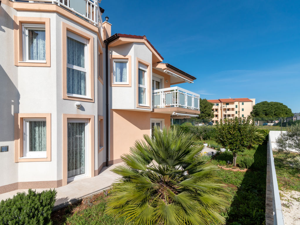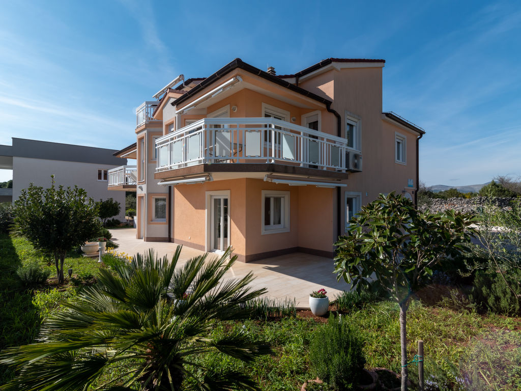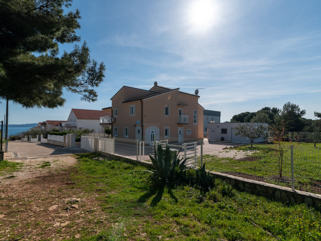 Okrug Gornji (Ciovo) 6 km van Trogir: Mooi appartementencomplex "Villa Nikaroni". 1.5 km van het centrum van Okrug Gornji, rustige, zonnige ligging, 250 m van zee, 250 m van het strand. Voor medegebruik: terrein 1.000 m2, tuin met gazon. Barbecue. In het huis: internetaansluiting. Parkeerplaats bij het huis op het terrein. Winkel, restaurant 650 m, bushalte 2 km, rotsstrand 250 m.