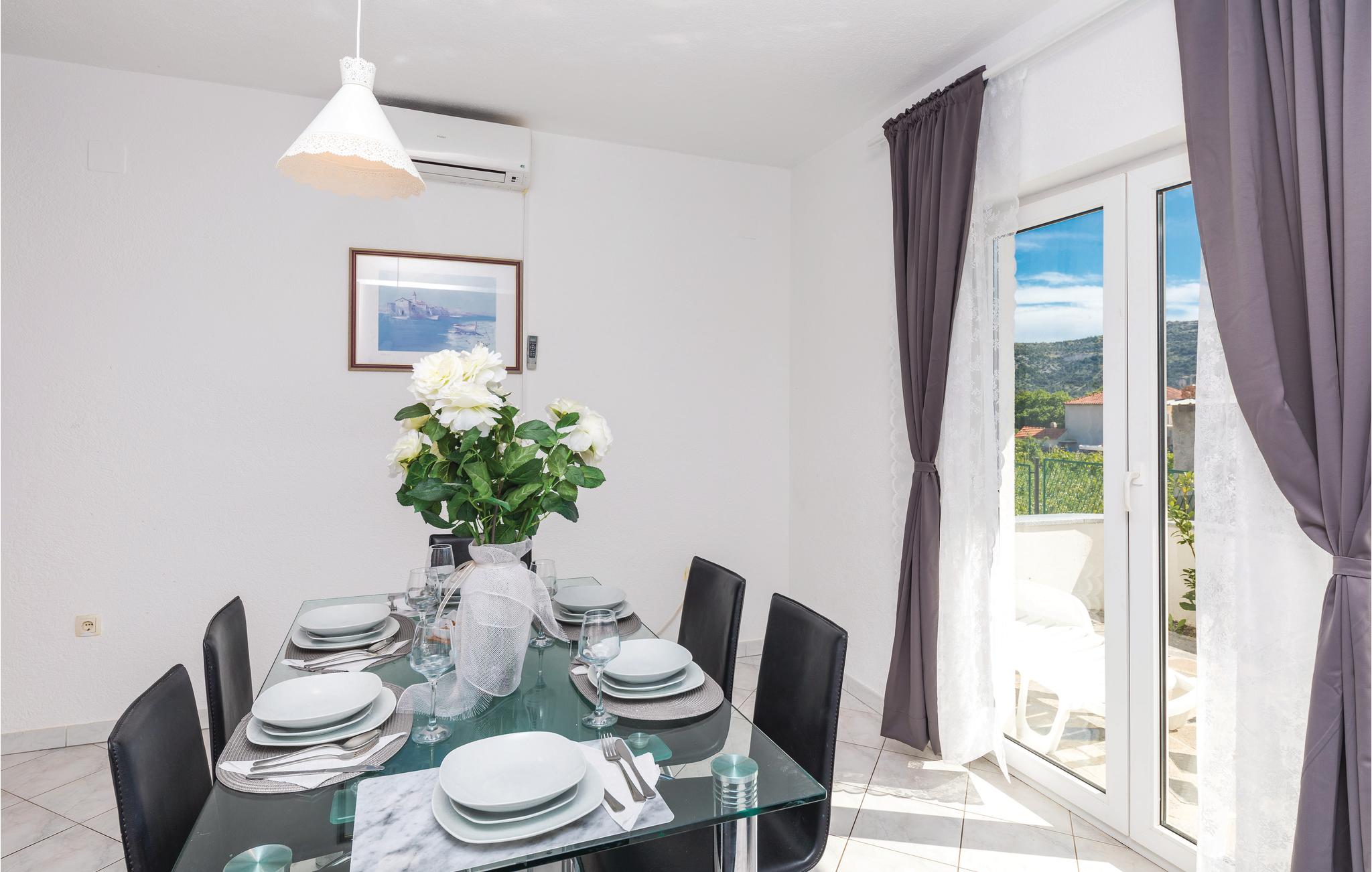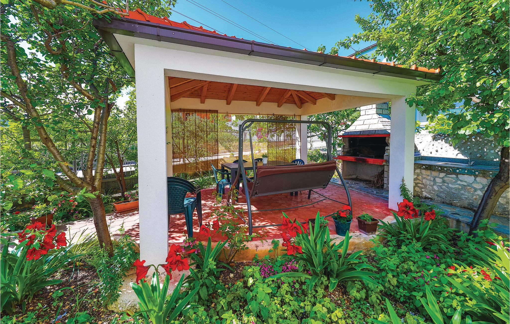Het gezellig ingerichte vakantiehuis ligt in het dorp Poljica, dat slechts een paar kilometer van de stad Trogir ligt. Langs de plaatselijke strandpromenade bevinden zich diverse winkels en restaurants met lokale lekkernijen. Op de begane grond van het vakantiehuis bevinden zich de woonkamer met keuken en eethoek en een badkamer, terwijl boven drie slaapkamers en een badkamer zijn. Naast het huis staat een overdekte gazebo met open haard en daarnaast is ook een kleine kinderspeelplaats. In het kleine dorp zijn de stranden vrij snel te bereiken via de nabijgelegen landweg.