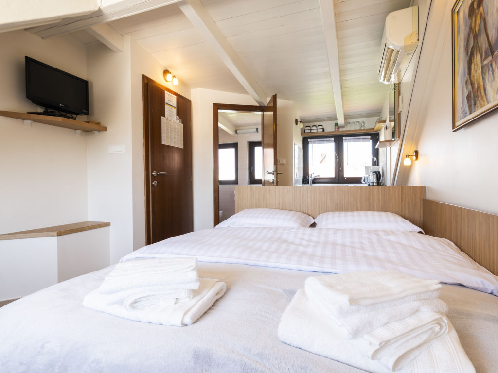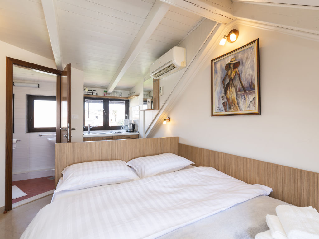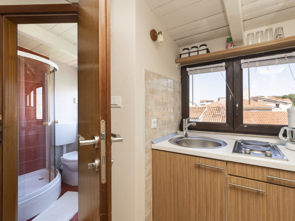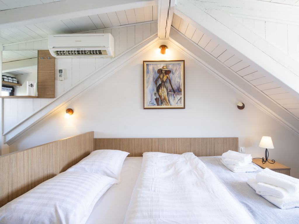 Appartement 1-kamer 20 m2 op de 3e verdieping. Met afgeschuinde daken, Studio met 1 2-pers bed (160 cm, lengte 200 cm), eettafel en Sat-TV (Flatscreen TV), air-conditioning. Open keuken (2-pits kookplaat, waterkoker, elektrische koffiemachine). Douche/WC. Ter beschikking: Internet (WiFi, gratis).