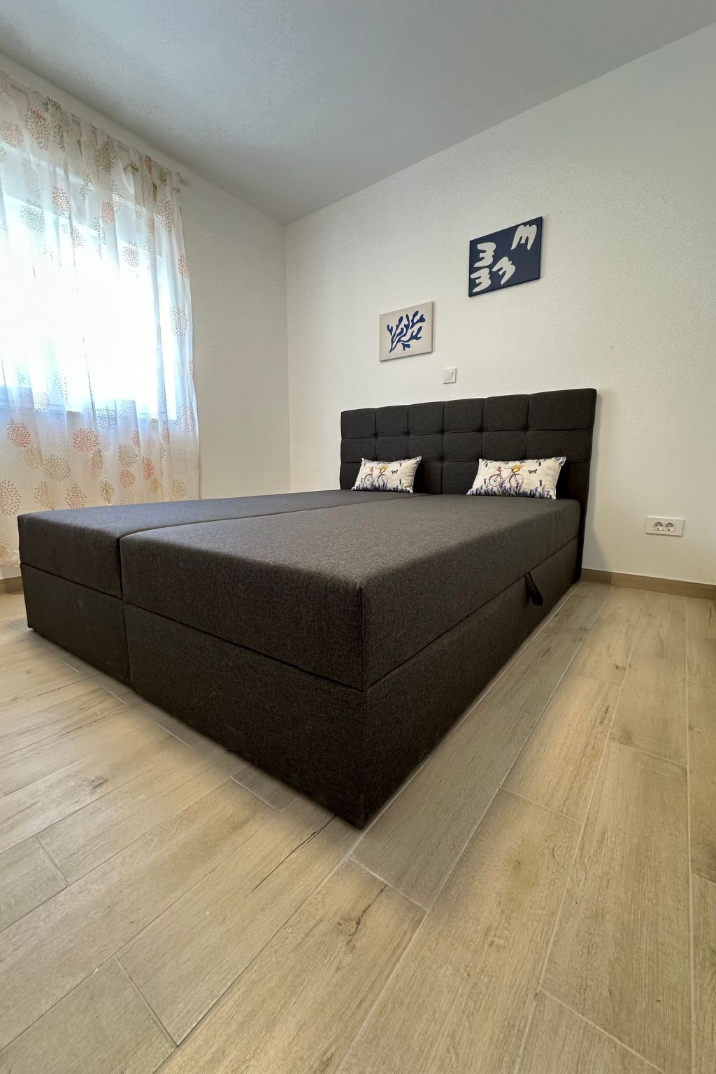 Uitstekend uitgerust strand met waterpark in Vodice. Gratis openbare douches en kleedhokjes. Verhuur van alles wat je maar kunt bedenken, om plezier te hebben aan zee (van waterfietsen tot kano's, tot parachutes getrokken door motorboten, tot bananen, enz.) en voor de kleintjes, maar niet alleen, enorme springkussens direct aan zee.