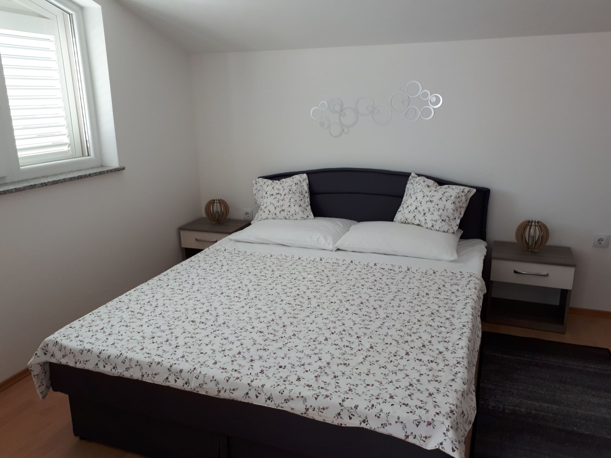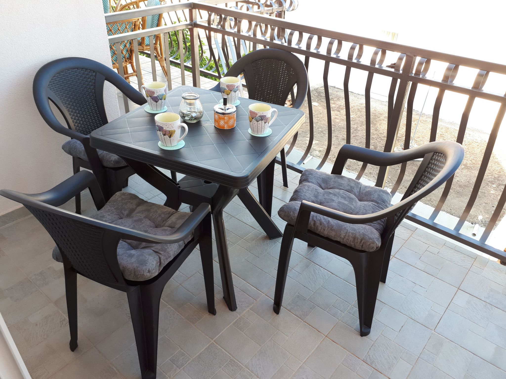 The flat is located on the second floor with a separate entrance and can accommodate up to two people.It has a bedroom with a double bed (160 cm wide). A baby cot can be provided on request.The air-conditioned living and dining area has a kitchenette with ceramic hob, fridge-freezer, kettle and coffee machine, as well as a dining table with chairs, a comfortable sofa bed and a flat-screen TV with satellite channels.From the living area you can access the balcony equipped with garden furniture.The bathroom is equipped with a shower, washbasin, toilet and hairdryer.Bed linen, towels, reliable WLAN internet access, use of the air conditioning and parking space will be provided free of charge with your holiday flat.Next to the house is our summer kitchen (for communal use) with a small kitchen with gas hob and oven. A washing machine and an iron/ironing board are also available for our guests.Behind the house is the barbecue, which is available to our guestsA fig tree with extra sweet fruits will tempt you to eat.We live on the ground floor and are always available for help, questions and company.Our house is located in a quiet street