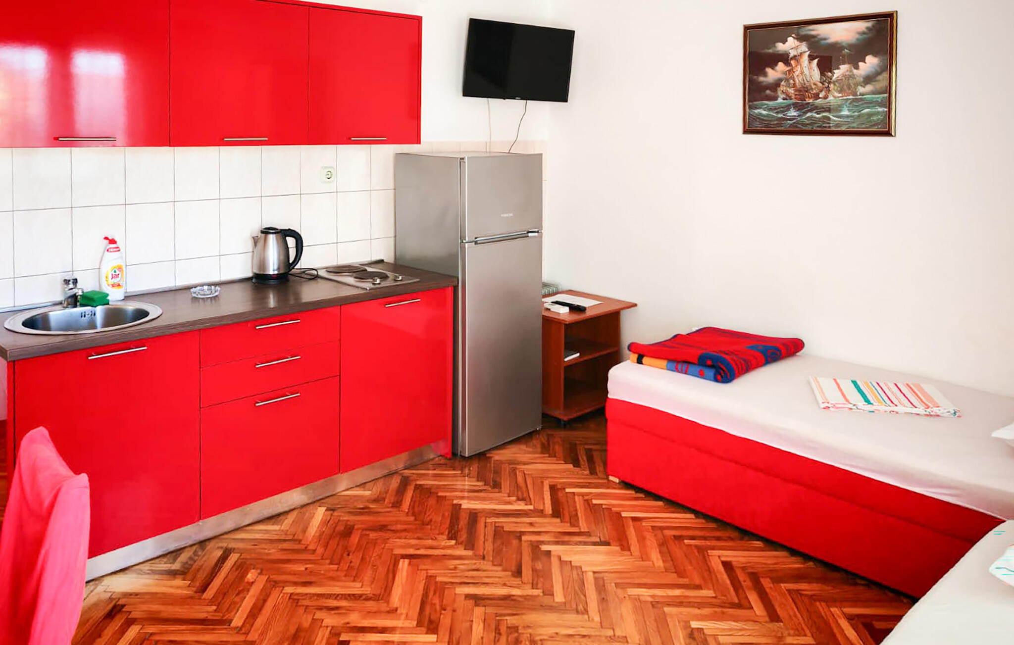 In de onmiddellijke nabijheid van het centrum van Vodice en tegelijkertijd omgeven door rust en weelderig groen, biedt dit verzorgde vakantieappartement je de ideale uitvalsbasis voor een afwisselende vakantie in elk jaargetijde. Bereid kleine maaltijden en plan je activiteiten samen. Vind tijd om samen een film te kijken na een lange dag of organiseer leuke spelletjesavonden.
