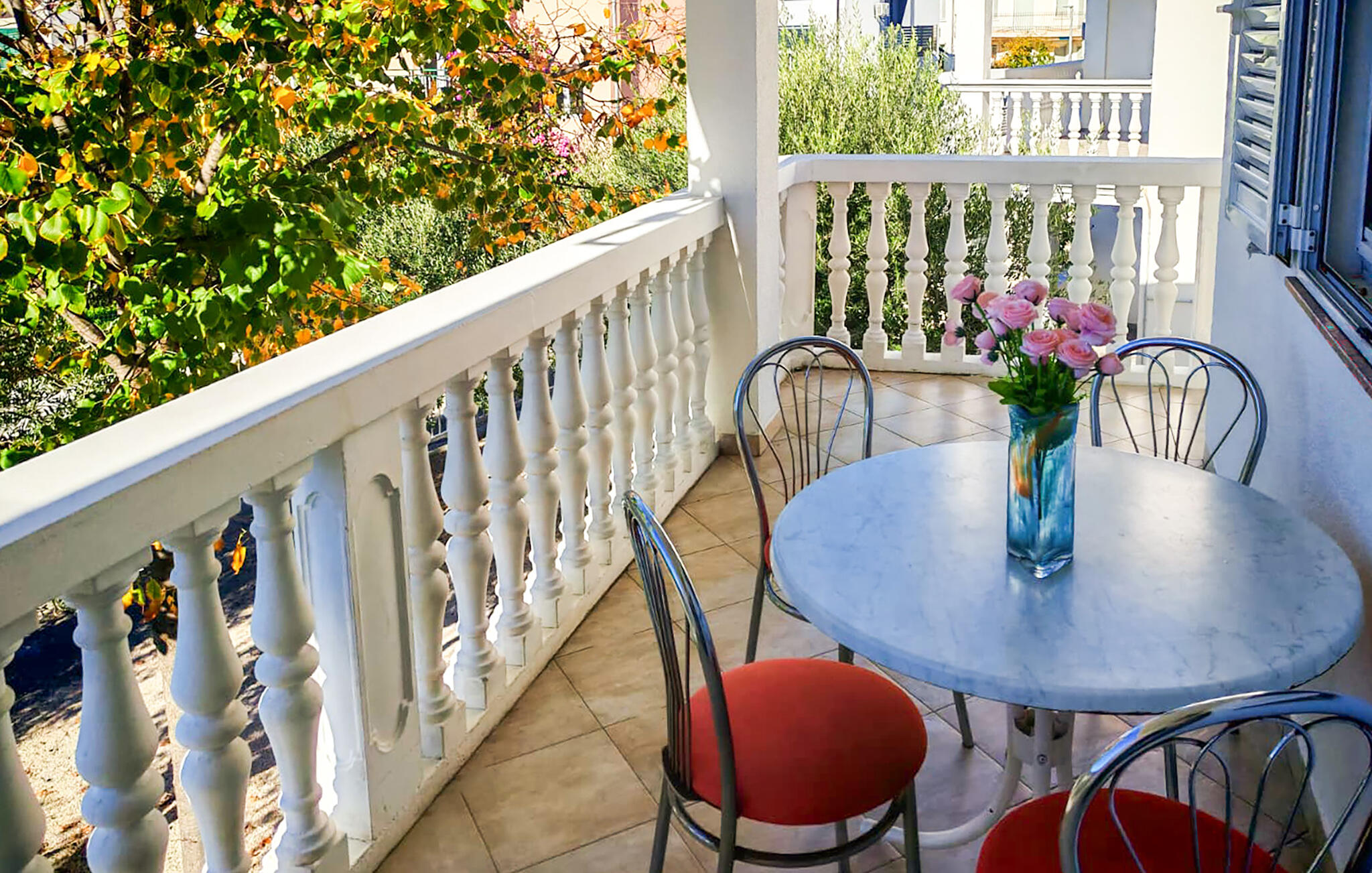 Serveer jezelf een heerlijk ontbijt op het balkon, geniet van de rustige sfeer met een glas wijn in de avond of maak een praatje bij de gemeenschappelijke barbecue.