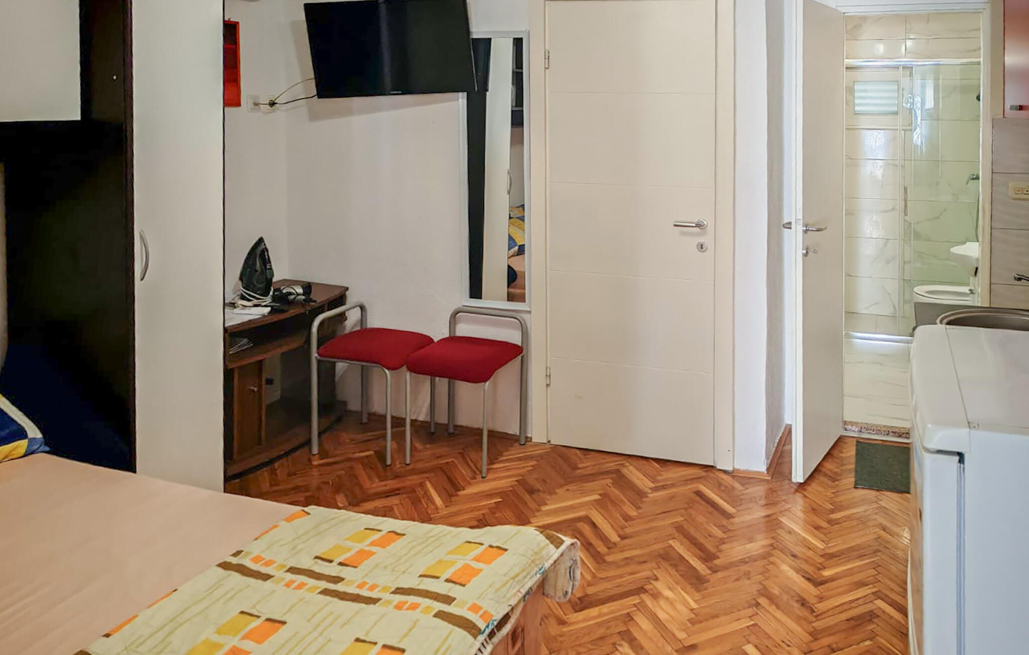 Keuken heeft warm/koud waterElektrische kookplatenKoelkastVriesvakKoffiezetapparaatGezamenlijke wasmachineStofzuiger1 TVSchotelantenneToilet: warm en koud water