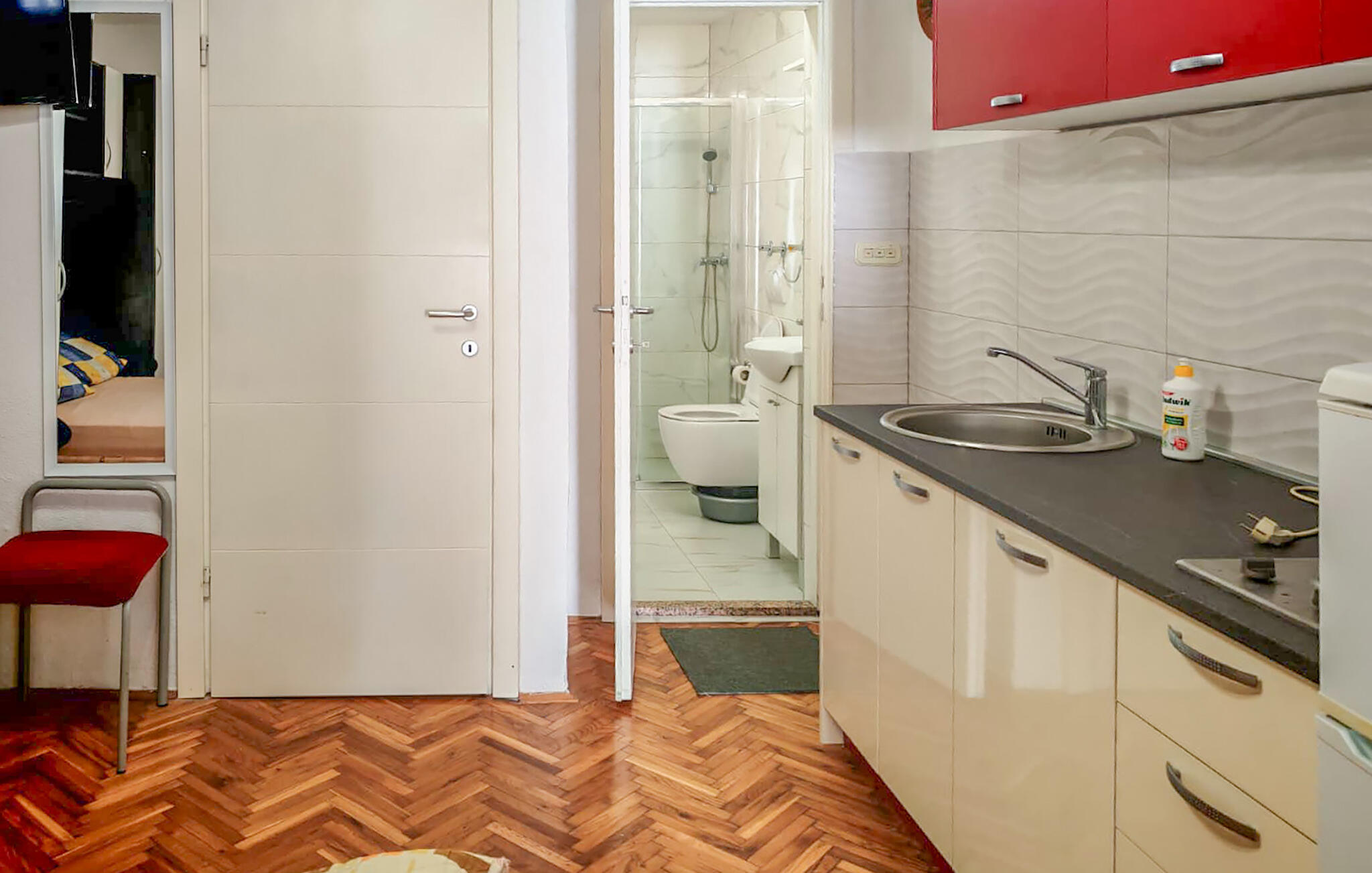 In de onmiddellijke nabijheid van het centrum van Vodice en omgeven door rust en weelderig groen, biedt dit appartement op de begane grond je de ideale uitvalsbasis voor een gevarieerde vakantie niet ver van de charmante stranden in elk jaargetijde. Bereid kleine maaltijden en plan je activiteiten samen. Vind tijd om samen een film te kijken na een lange dag of organiseer leuke spelletjesavonden.