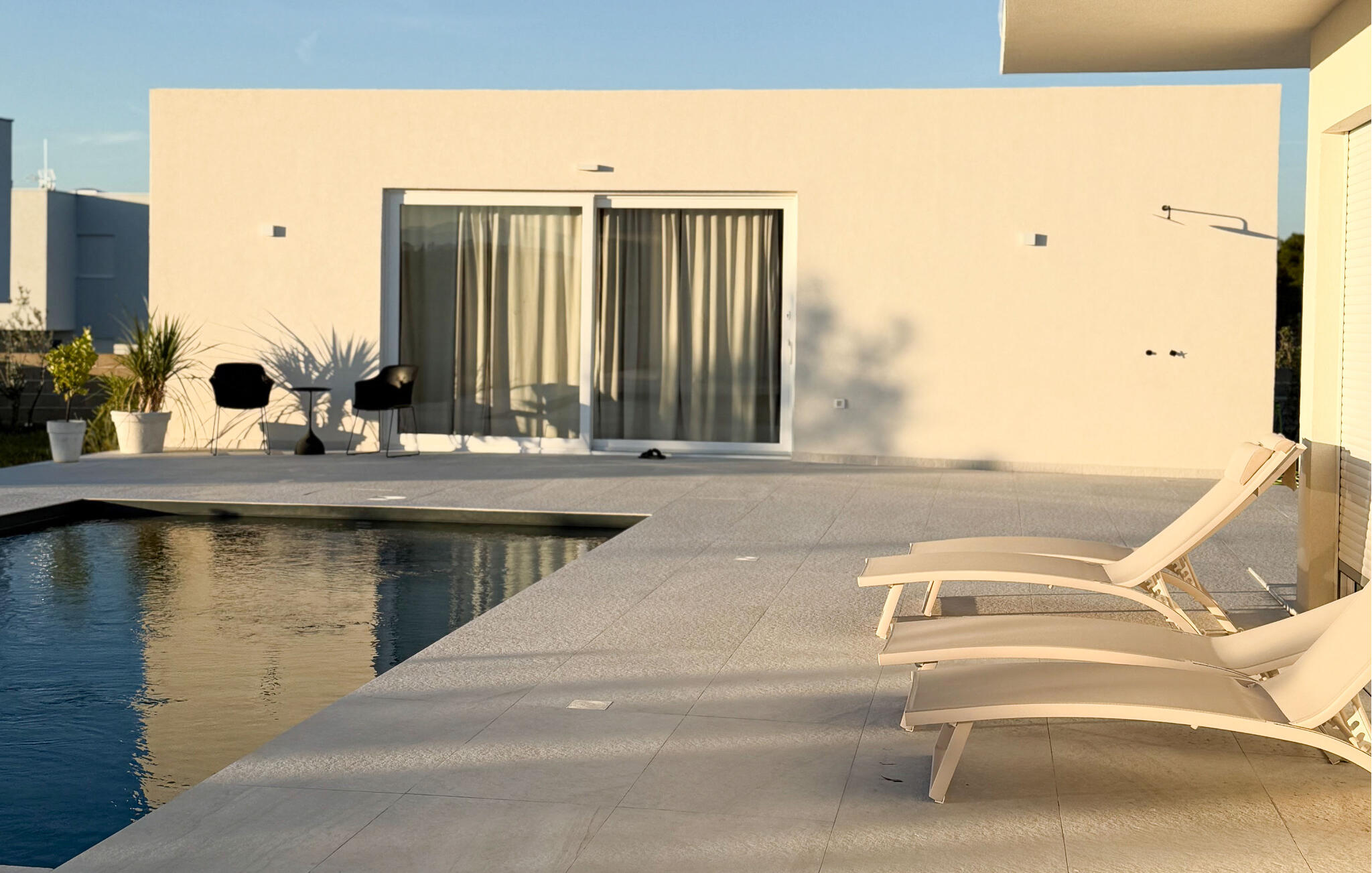 Geniet van een stijlvolle vakantie in een modern huis met een zwembad, veel ruimte en een rustige locatie.