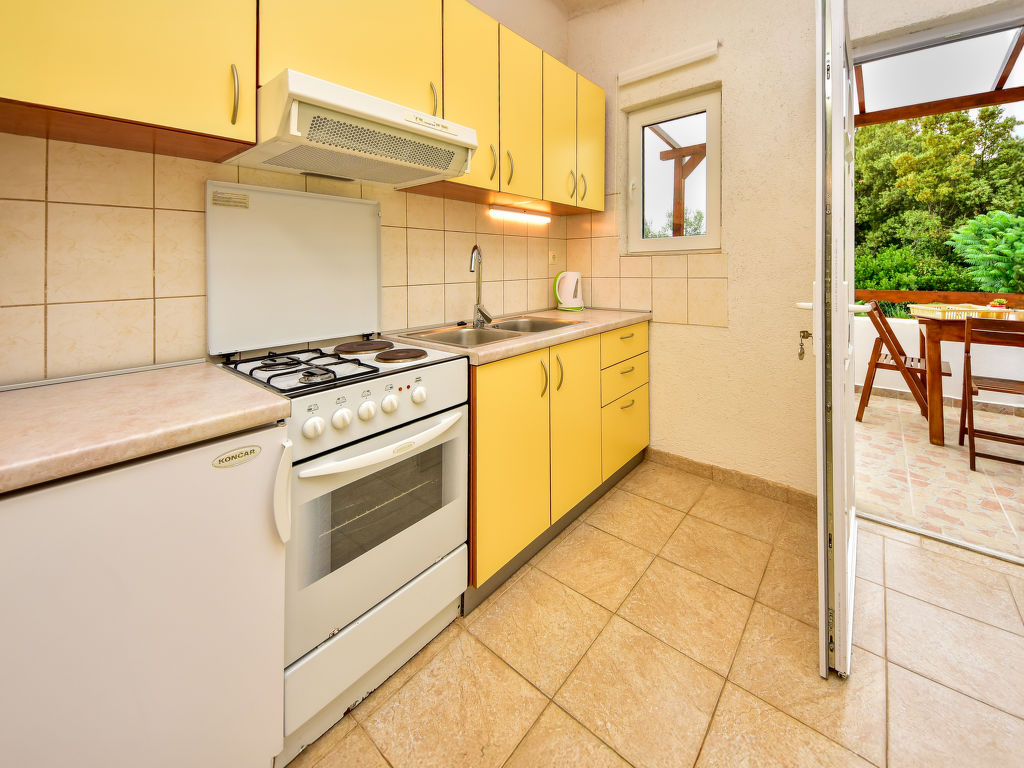 Appartementencomplex "Marija". 3 km van het centrum van Sukošan, rustige, zonnige ligging, 750 m van zee, 750 m van het strand. Voor medegebruik: terrein 700 m2 (omheind). Tuinmeubelen, barbecue (schommel). In het huis: internetaansluiting. Parkeerplaats bij het huis op het terrein. Winkel 1.5 km, restaurant, kiezelstrand 750 m.