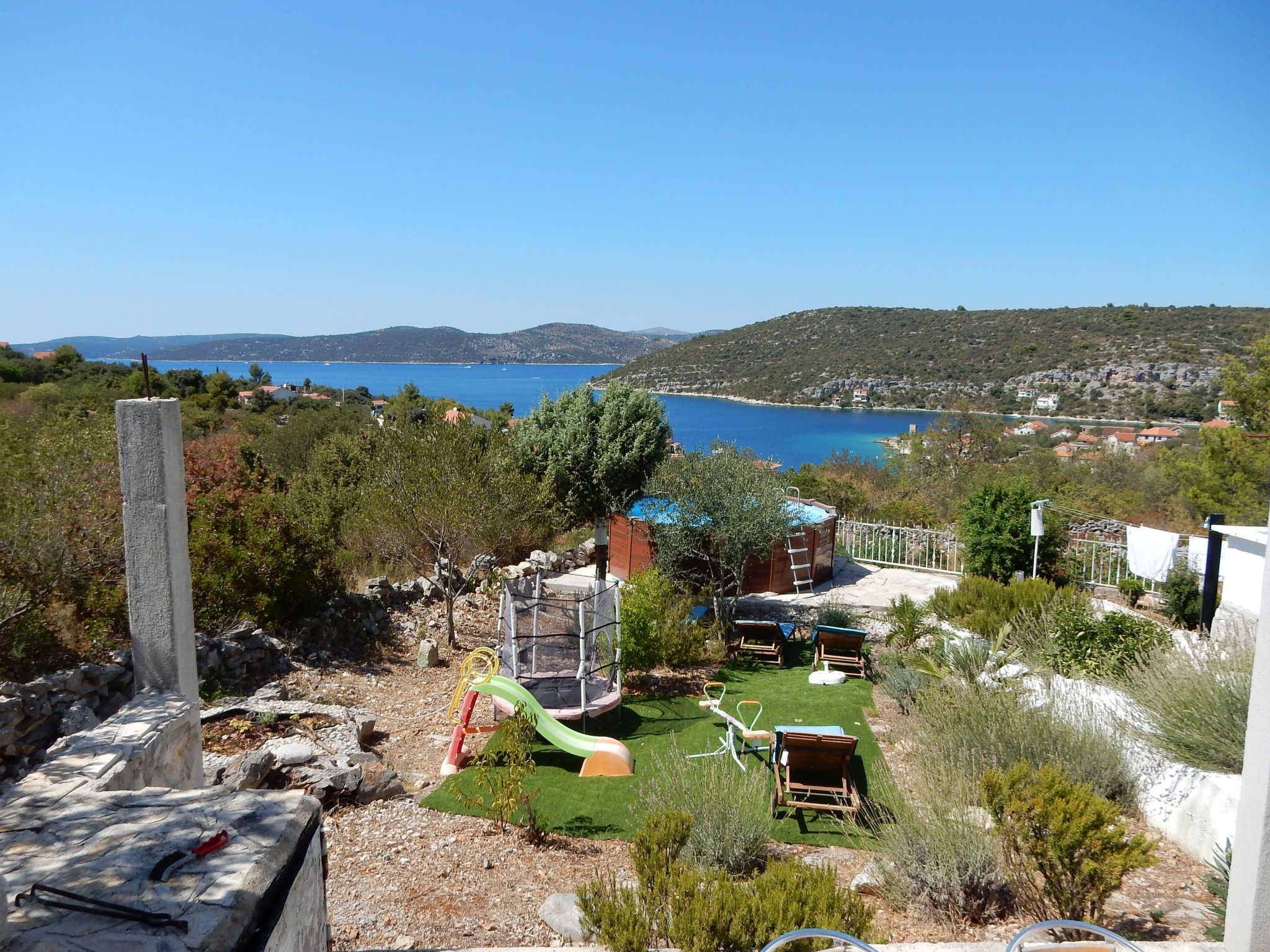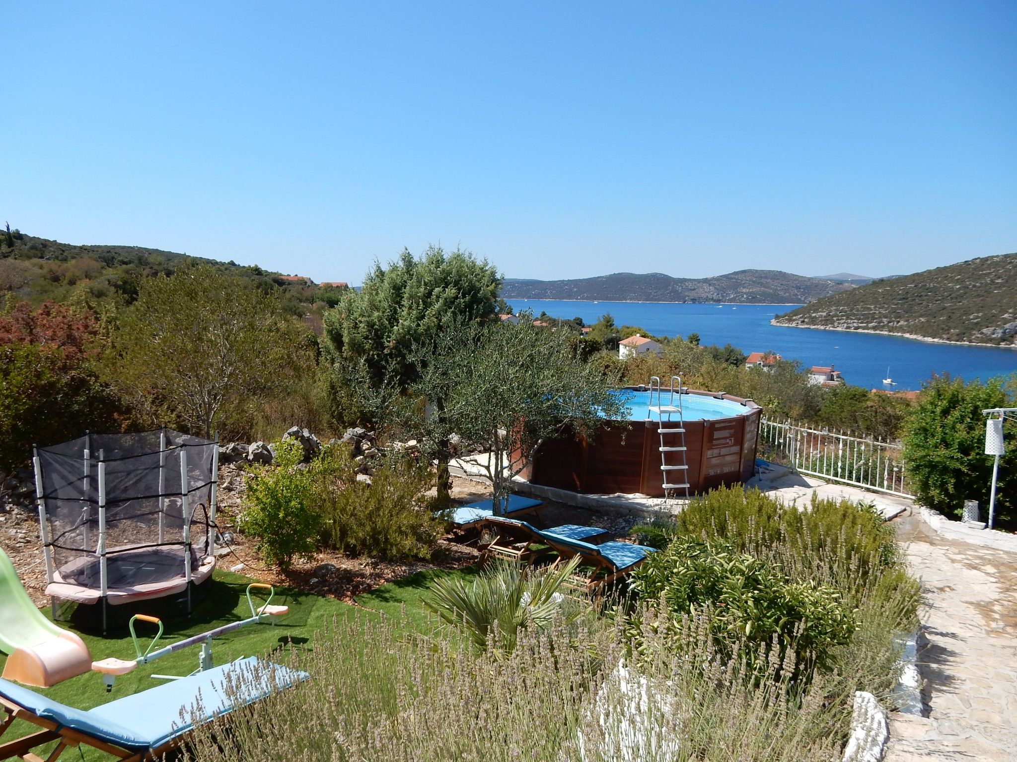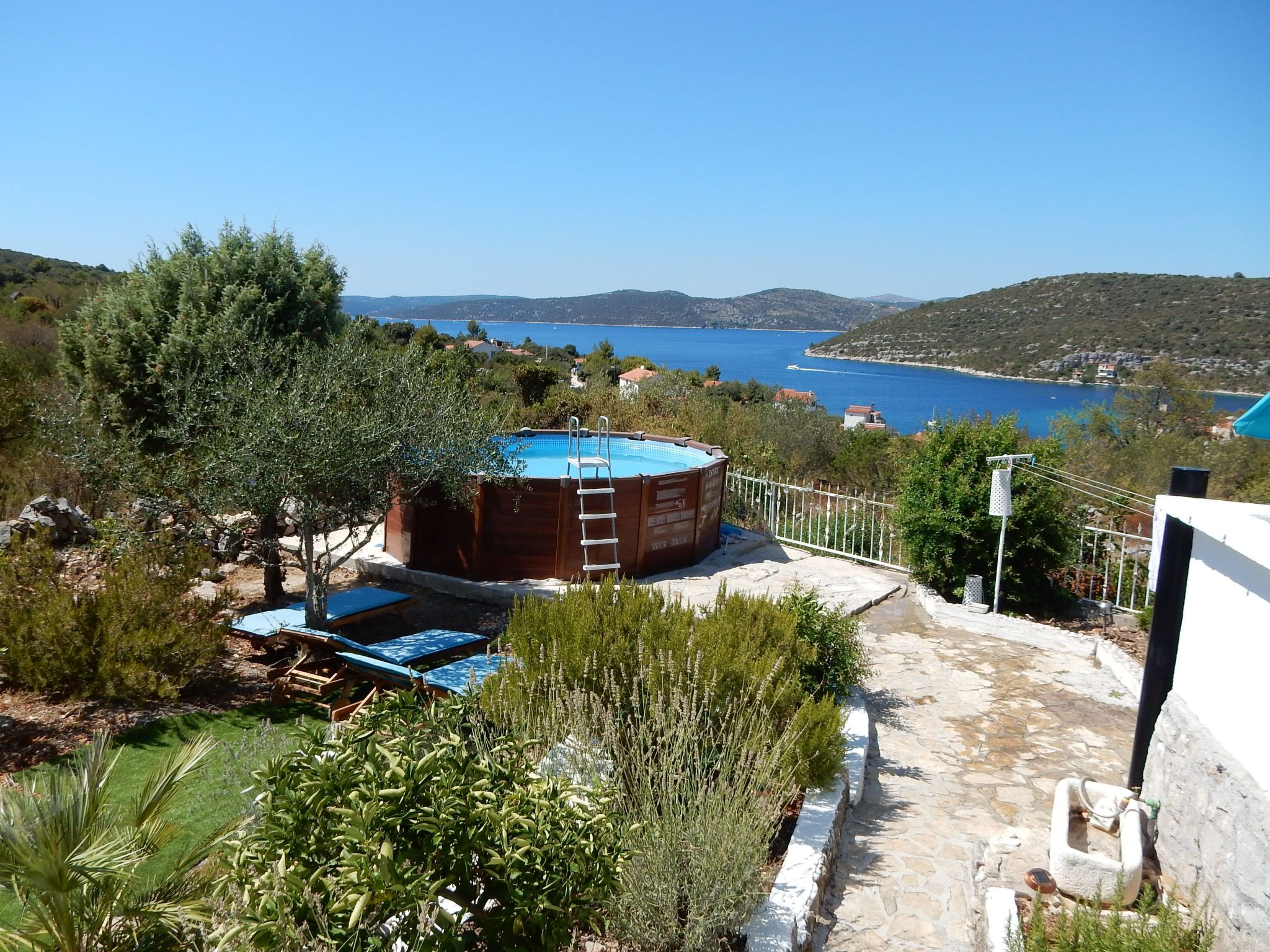 This large, detached holiday house with a little garden is somewhat outside Drvenik on the island of Drvenik Veliki and is near the sea and the beaches. You can enjoy the sun, the beach and tranquillity in unspoilt nature, far away from the noise of town. The house is for your own exclusive use. The house has a garden planted with Mediterranean plants and flowers. The site is enclosed by a wall and therefore ensures maximum privacy. Two parking spaces are available. Outside there is a walled sitting area with a stone table and stone benches, as well as a barbecue. You can enjoy a beautiful view of the sea from the terrace and the balconies. The comfortably furnished house was renovated in 2013 and can accommodate eight people. Two of the total of four spacious bedrooms each have a double bed (160 x 200cm) and a cupboard. The two others, which have a separate entrance from the garden, are each furnished with a double bed (180 x 200cm), cupboard and dresser. Two bedrooms also have their own bathroom with a shower and toilet. There is also a third, separate bathroom. The modern kitchen with a dining table is fully equipped. The large living room has a comfortable sitting area with sofas and an LCD TV, as well as a dining table for eight people. It is 500 metres to the locality and 250 metres to the sea. You can spend carefree days on the nearby beaches, relax, soak up the sun and experience the sea. The boat that connects the island with the town of Trogir runs three times a day the whole year round. The boat harbour is just five kilometres from Split airport and there are regular bus connections from the airport to Trogir. It is therefore easy to arrange a day trip to Split. There are four restaurants on the island, of which three are in the main bay and one is in the famous Krknjaši bay, where there is also a popular sandy beach. There is also a shop for everyday groceries on the island.The house provides a wireless Internet connection and a safe for your valuables.