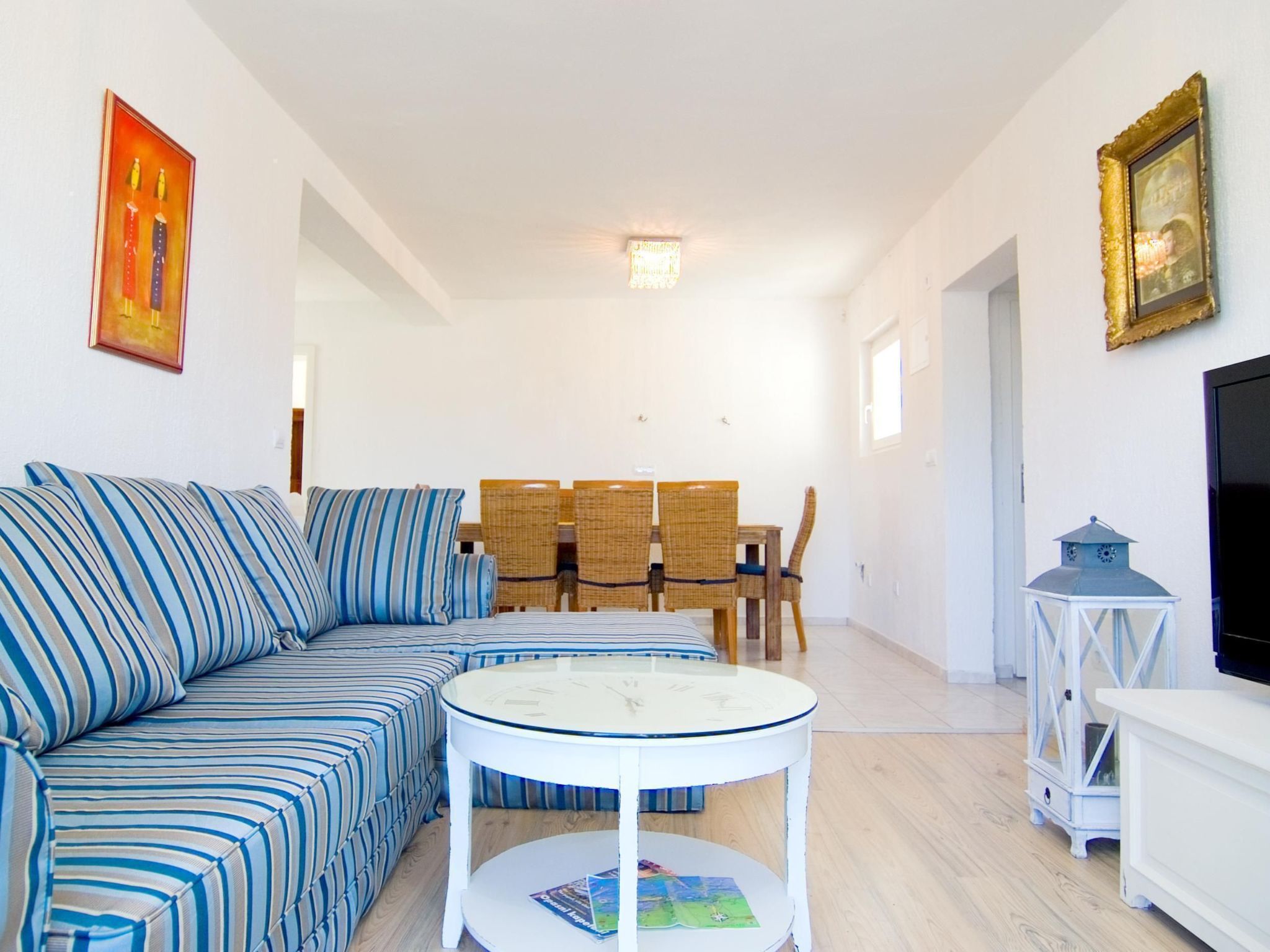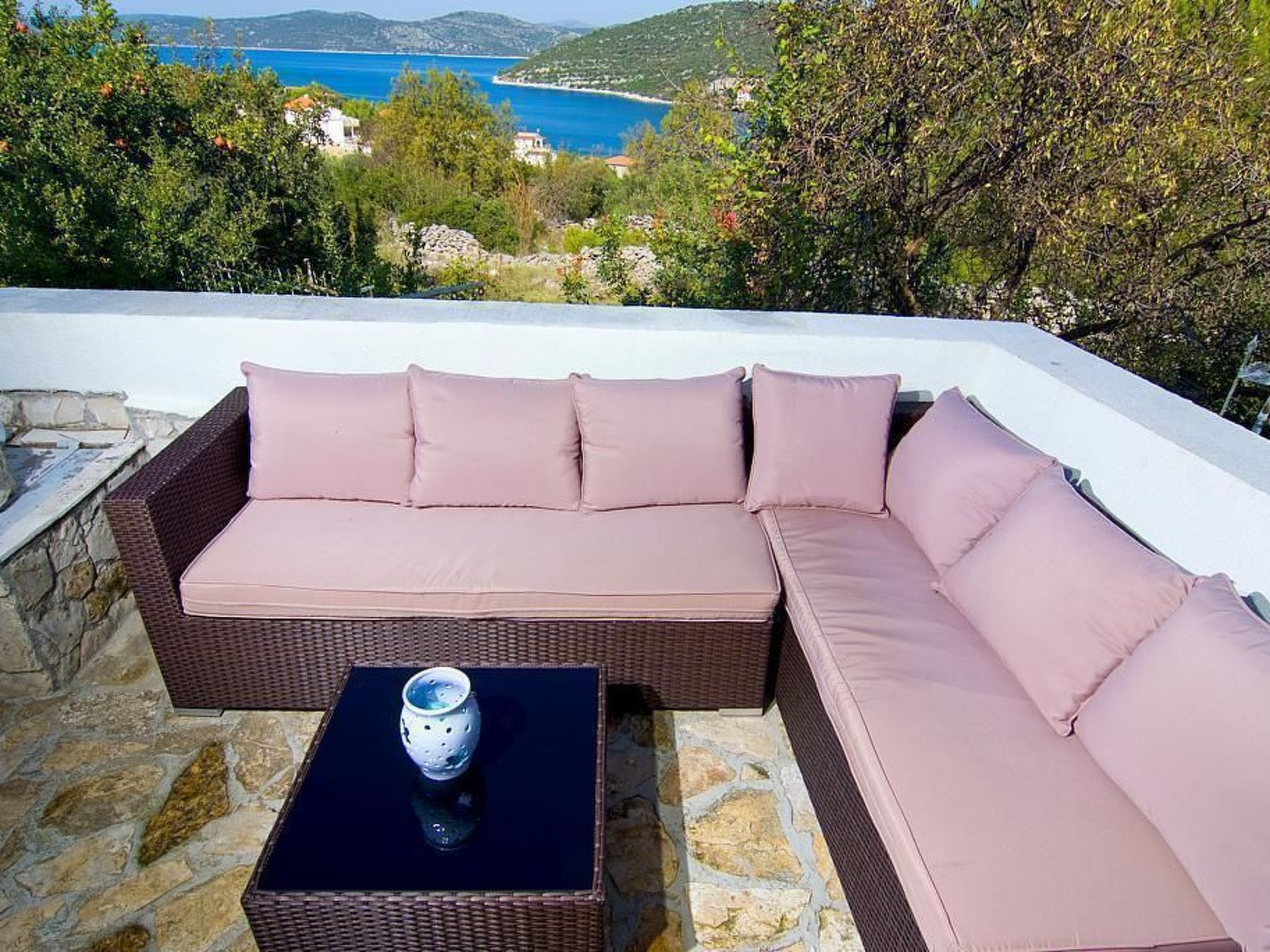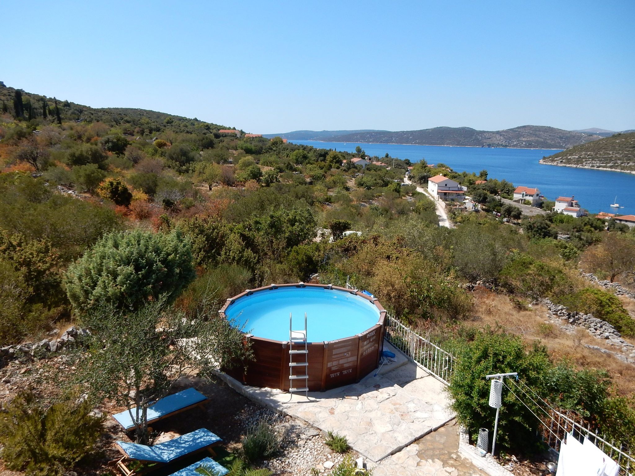 This large, detached holiday house with a little garden is somewhat outside Drvenik on the island of Drvenik Veliki and is near the sea and the beaches. You can enjoy the sun, the beach and tranquillity in unspoilt nature, far away from the noise of town. The house is for your own exclusive use. The house has a garden planted with Mediterranean plants and flowers. The site is enclosed by a wall and therefore ensures maximum privacy. Two parking spaces are available. Outside there is a walled sitting area with a stone table and stone benches, as well as a barbecue. You can enjoy a beautiful view of the sea from the terrace and the balconies. The comfortably furnished house was renovated in 2013 and can accommodate eight people. Two of the total of four spacious bedrooms each have a double bed (160 x 200cm) and a cupboard. The two others, which have a separate entrance from the garden, are each furnished with a double bed (180 x 200cm), cupboard and dresser. Two bedrooms also have their own bathroom with a shower and toilet. There is also a third, separate bathroom. The modern kitchen with a dining table is fully equipped. The large living room has a comfortable sitting area with sofas and an LCD TV, as well as a dining table for eight people. It is 500 metres to the locality and 250 metres to the sea. You can spend carefree days on the nearby beaches, relax, soak up the sun and experience the sea. The boat that connects the island with the town of Trogir runs three times a day the whole year round. The boat harbour is just five kilometres from Split airport and there are regular bus connections from the airport to Trogir. It is therefore easy to arrange a day trip to Split. There are four restaurants on the island, of which three are in the main bay and one is in the famous Krknjaši bay, where there is also a popular sandy beach. There is also a shop for everyday groceries on the island.The house provides a wireless Internet connection and a safe for your valuables.