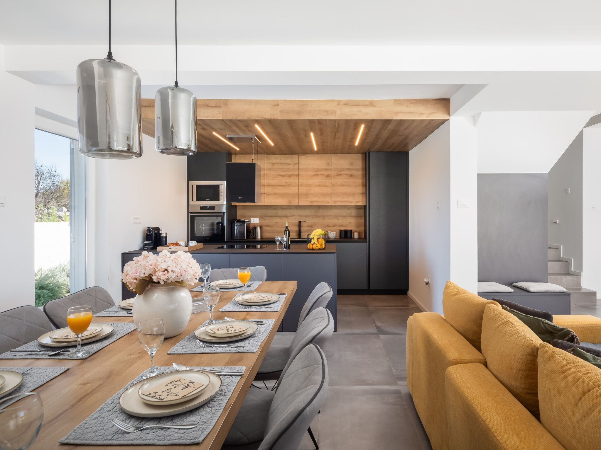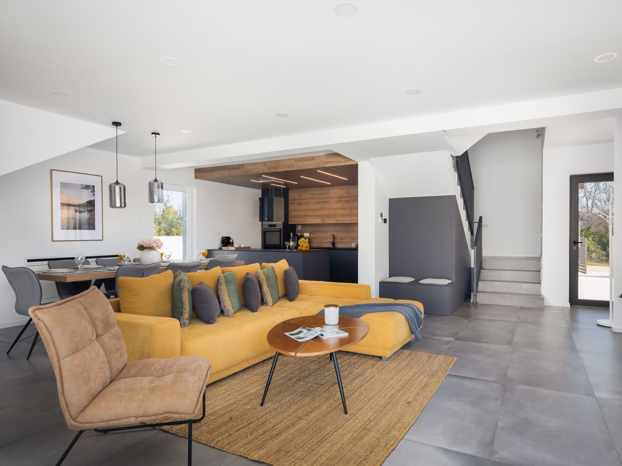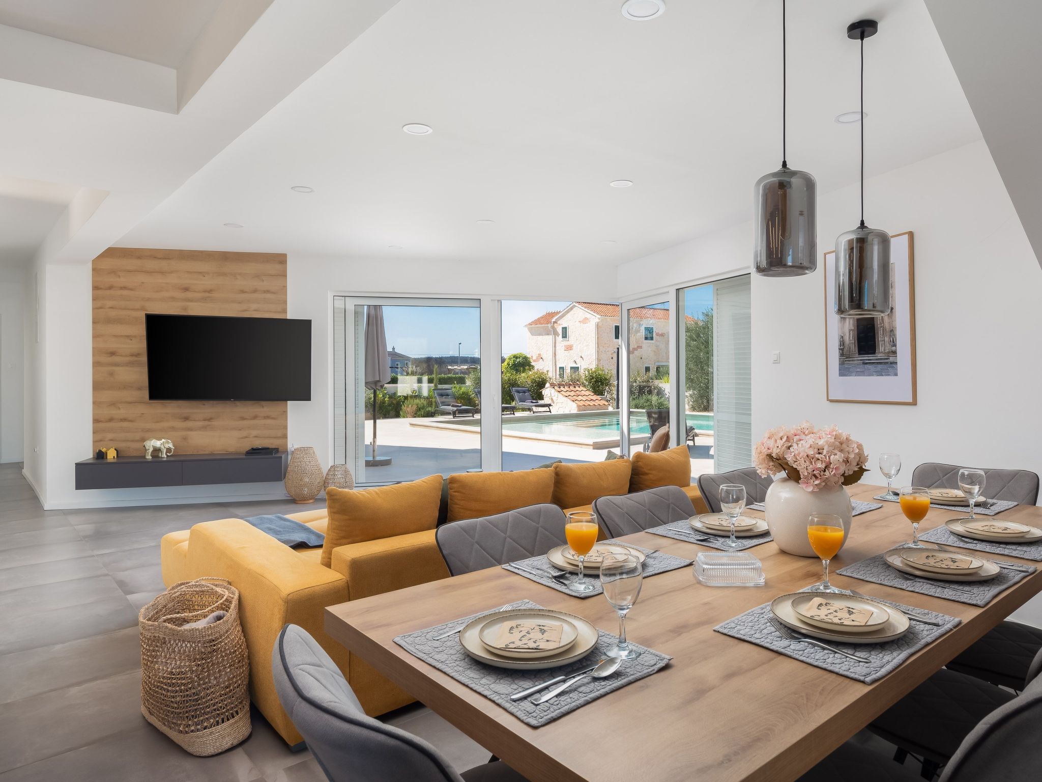 Discover the serene beauty of Zaton bei Sibenik, Dalmatien, with a stay at the exquisite Villa Vallis. Ideal for families or groups of up to 8 persons, this holiday house offers a perfect blend of comfort and style, ensuring a vacation experience like no other. Surrounded by the tranquil Dalmatian landscape, this property invites you to relax and rejuvenate in a setting that feels both luxurious and welcoming.Inside, Villa Vallis boasts meticulously designed living spaces equipped with all the modern amenities you could desire for a comfortable stay. Each of the four bedrooms is accompanied by its own bathroom, providing privacy and convenience for all guests. The house features air conditioning and underfloor heating throughout, ensuring a pleasant indoor climate regardless of the season. Additionally, practical amenities such as a washing machine, clothes dryer, dishwasher, coffee machine, and an electric kettle add to the convenience, making it easy to feel at home.The outdoor area of Villa Vallis is where this property truly shines. A meticulously landscaped garden for your sole use surrounds the house, offering a tranquil space for relaxation. The jewel in its crown is the stunning hot tub, inviting you to unwind under the starlit sky. A spacious terrace and a balcony extend the living space outdoors, perfect for soaking up the sun or enjoying al fresco meals prepared on the barbecue.Nestled in the picturesque region of Dalmatien, just 1500 meters from the nearest beach and 1000 meters from the closest grocery store, Villa Vallis's location combines convenience with the beauty of the Adriatic coast. The town of Vodice nearby pulsates with life, offering a vibrant mix of restaurants, cafes, and shops, alongside beautiful beaches and marinas, making every day of your stay an adventure waiting to happen.Villa Vallis is more than just a holiday house; it's a gateway to a unique vacation experience. Here, every detail is carefully crafted to ensure that your stay is not just comfortable, but genuinely memorable. Whether you're lounging by the hot tub, exploring the local scenery, or simply enjoying the peace of the garden, Villa Vallis is the perfect backdrop for an unforgettable holiday in Zaton bei Sibenik, Dalmatien.