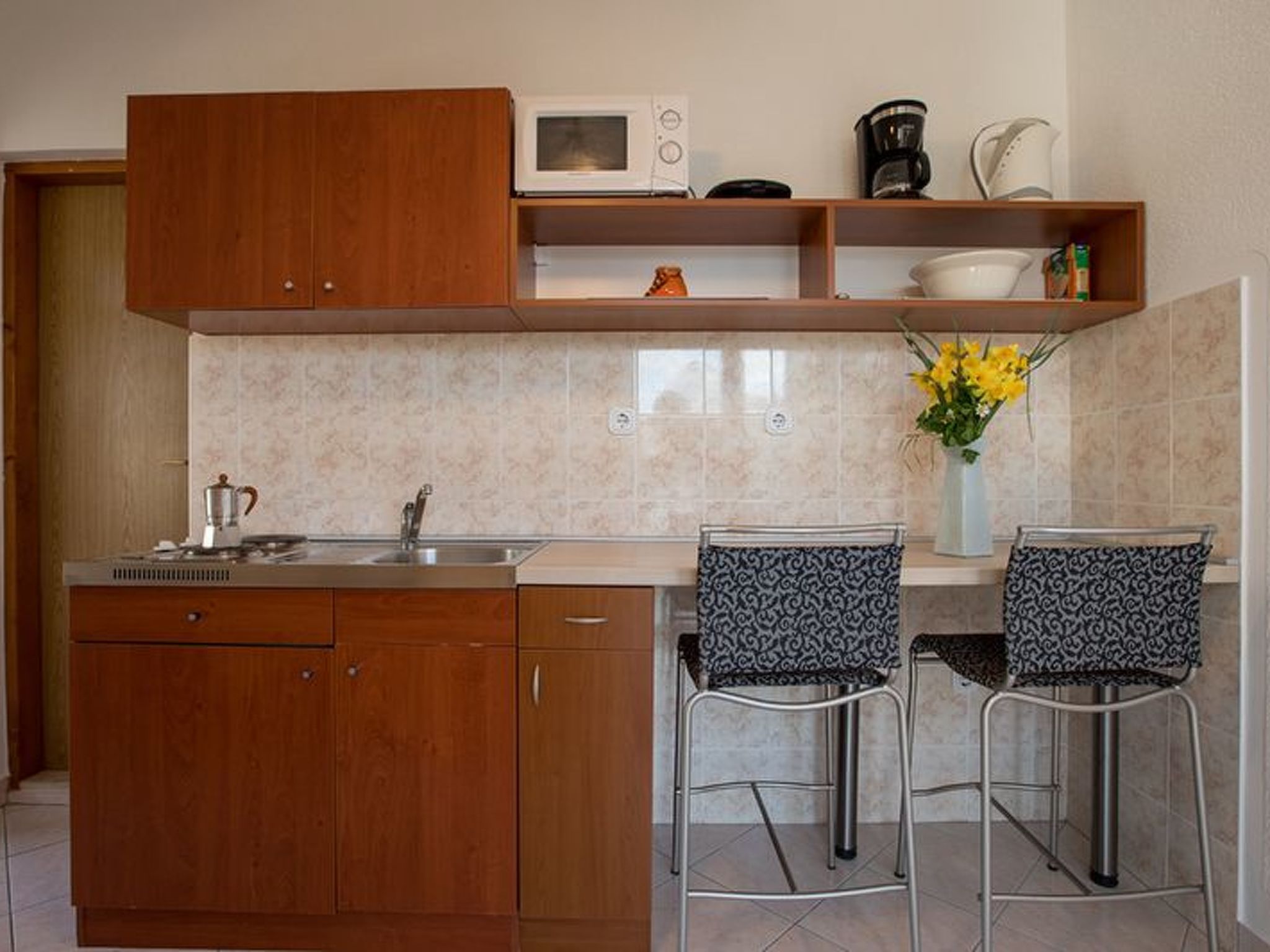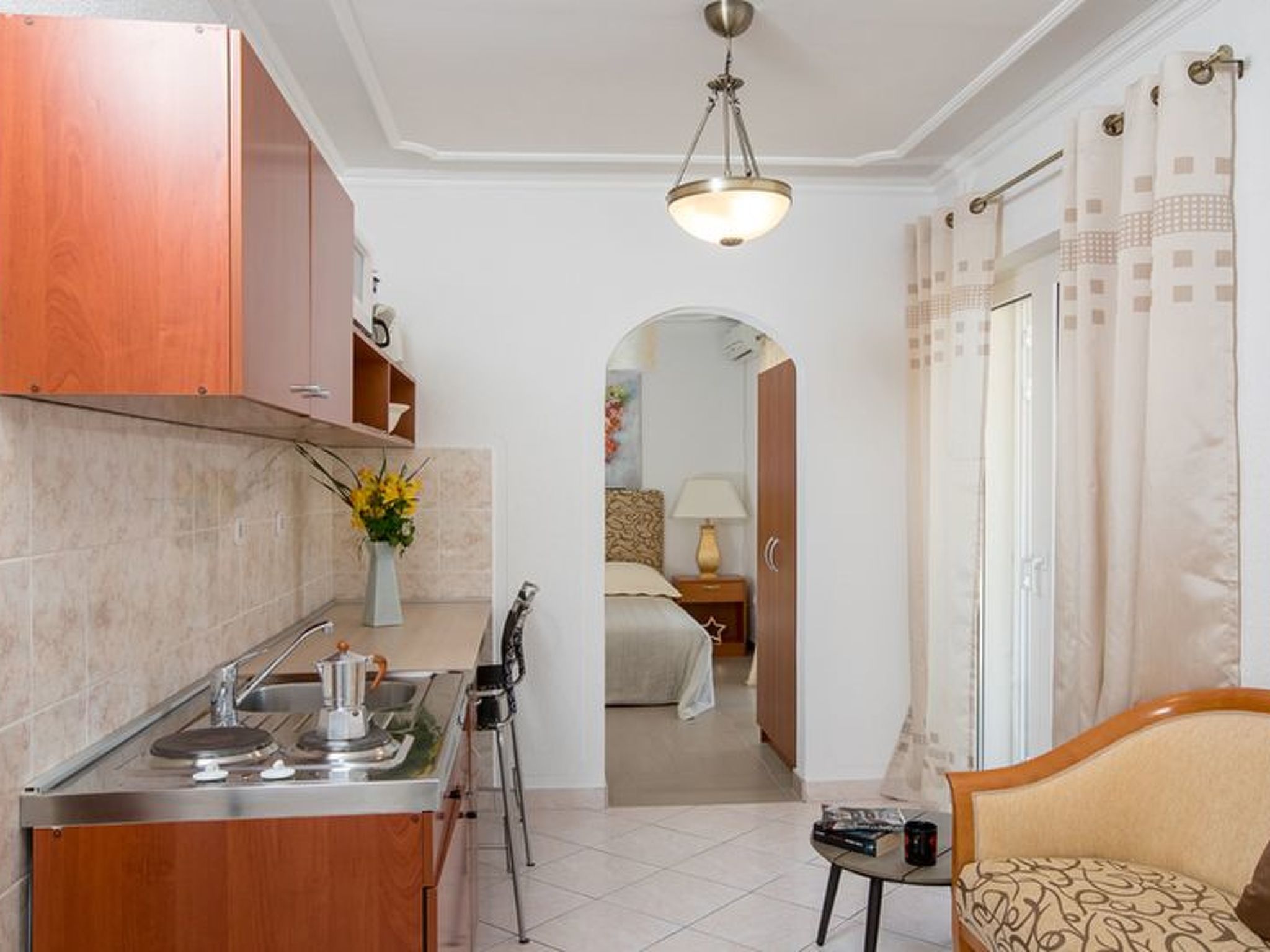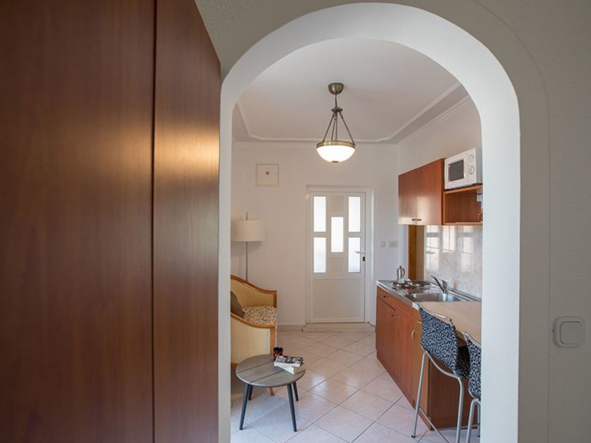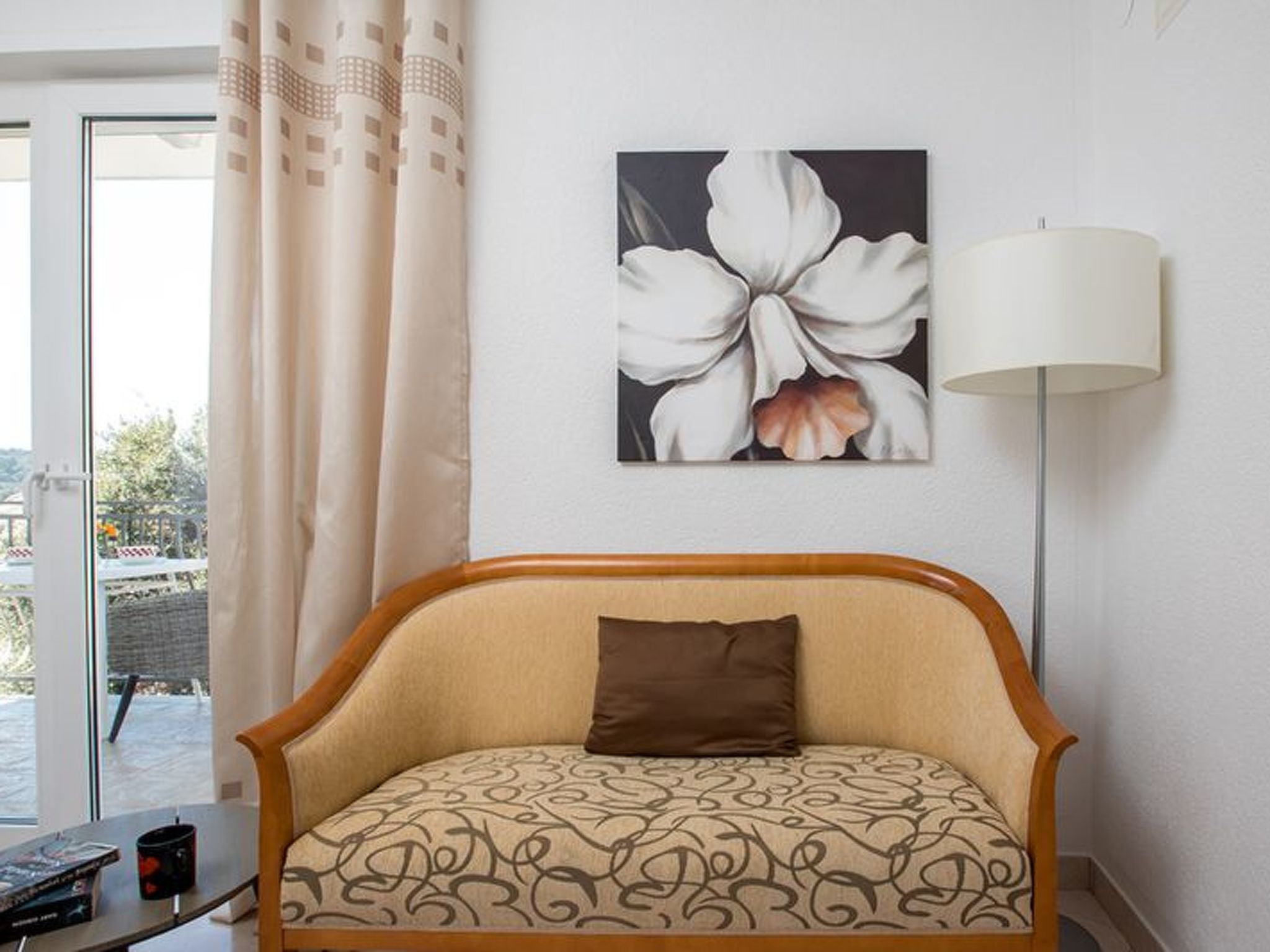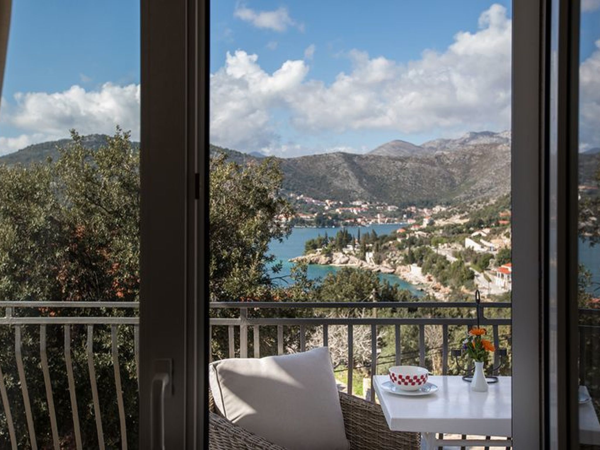 Perfect place for those wanting a friendly atmosphere, peace and quiet overlooking a breath-taking view of the Mediterranean Sea.This little oasis of peace is located only 8 km from Dubrovnik and is reachable from the City by a regular bus service, the ride taking some 20 minutes. A unique promenade, a few kilometres long, divides the bay into two places, Štikovica - Zaton Mali and Zaton Veliki (Small and Big Zaton). Veliki Zaton has a post office, bank, shops, bars and restaurants. What you will not find in Zaton are large hotels and crowds, so if you are looking for a place to relax, you will certainly be delighted with Zaton. Here you can enjoy various activities such as walking, jogging, diving, climbing, surfing and windsurfing. Wireless internet connection. Pets not allowed. SAT TV Air-con. Baby crib. Outside grill for all apartments. Pebbles’ beach at 3 min walk. Restaurants at 3 min walk. They are stairs to arrive to Mélanie and its not suitable for very old people or people with disabilities. Private parking is available in front of the house. In our offer is transfer airport – harbour , and numerous excursions.Info: The apartment has 25m2 Is intended for 2 people ( + 1 child possible ) and consist of 1 bed room with double bed in open space living room with sofa bed and small kitchen corner,hob, fridge, kettle, microwave, 1 bathroom with shower , balcony 12m2 with table and chairs ( divided and shared with apartment B ), and shaded terrace with sun chairs, air-condition, SAT TV. Outside grill. Capacity: Sleeps 2
