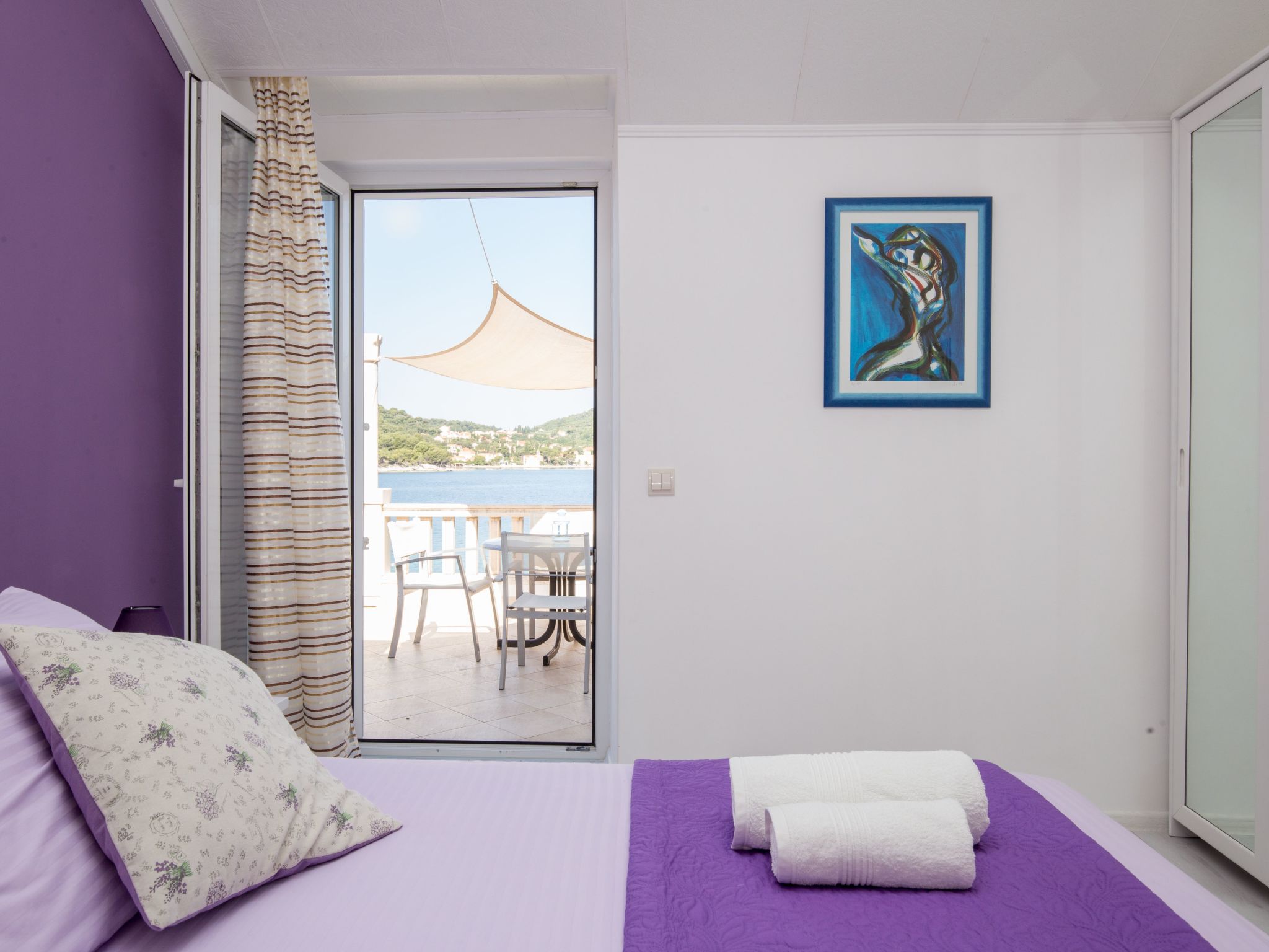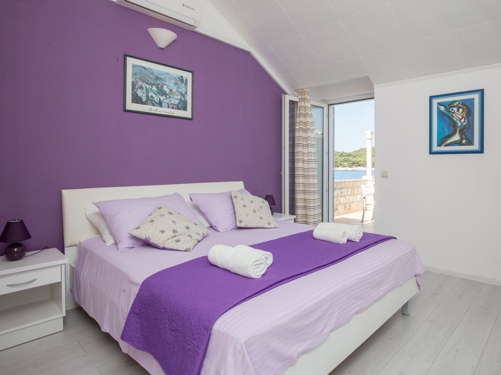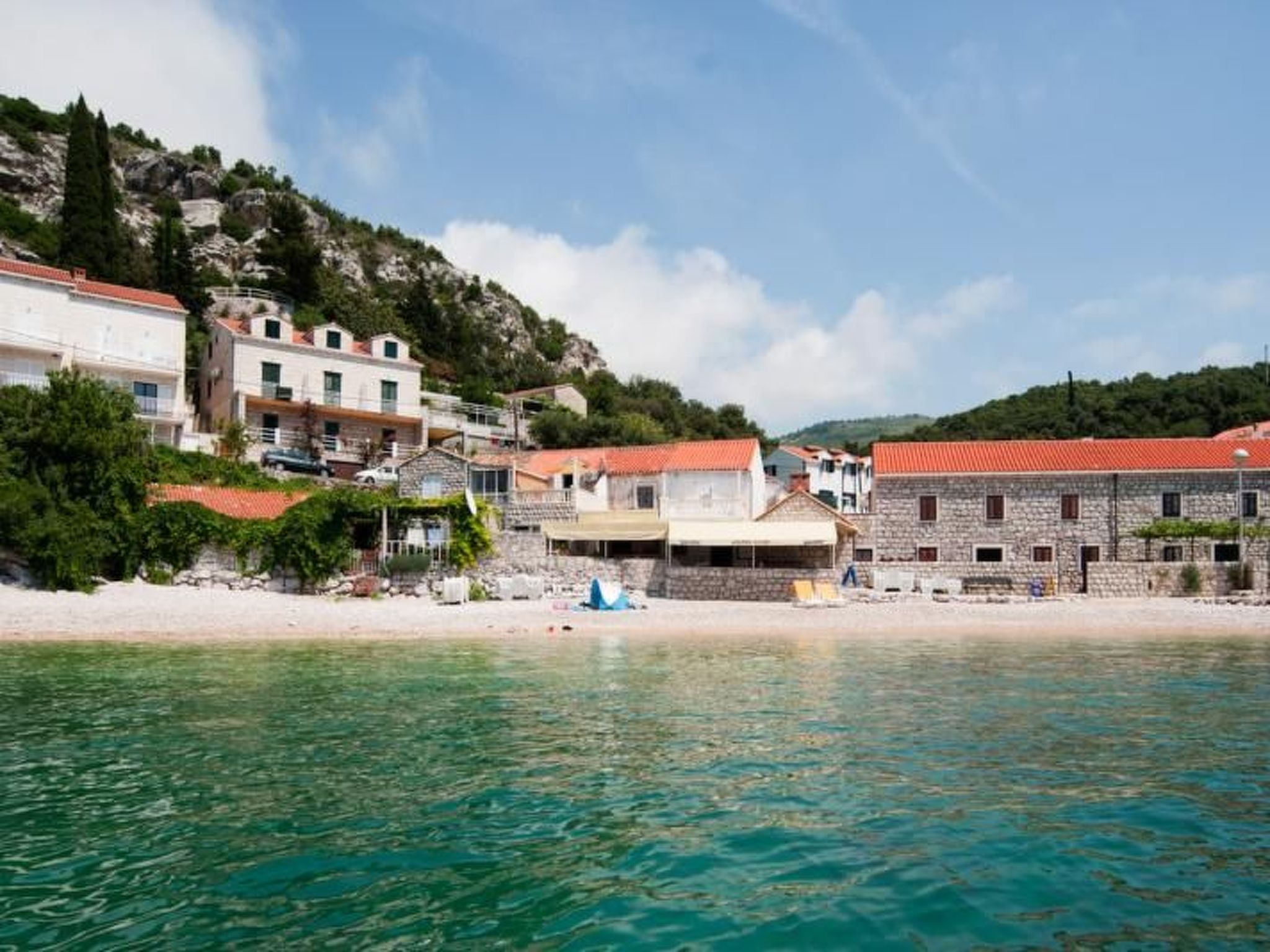 The living space of 100m² is spread over two floors. It has a light living room, a very modern kitchen with a dining space, three bedrooms and three spacious daylight bathrooms. The air-conditioned (cool/warm) living room is on the ground floor, with an elegant corner sofa suite, a coffee table, a TV with cable channels and a USB port. You go through into the glossy built-in kitchen in white and blue, equipped with a dishwasher, a four-zone gas stove with a stainless steel cooker hood, an electric oven, a fridge with a freezer compartment, a microwave, a kettle, a toaster and a coffee machine. There is a round dining table with six chairs for leisurely holiday meals. One of the bedrooms is on the ground floor, with one double bed measuring 180 x 200cm, and there is also the first bathroom with a shower cubicle bath, a washbasin with a cupboard underneath and a wall mirror, a washing machine, a hairdryer and a toilet. Wide stairs lead to the upper floor with another two bedrooms and two bathrooms. One of the bedrooms has a double bed (160 x 200cm), the other has two single beds (90 x 200cm) that can also be joined together as a double bed. There are two bathrooms, one has a bath and shower attachment while other has a shower cubicle, otherwise they are the same as the ground-floor bathroom. Plenty of bed linen and towels are provided and the reliable wireless Internet connection in the holiday house can be used free of charge.This fully air-conditioned (cool/warm) holiday house of 100m² made of natural stone is in a perfect seaside holiday location, just a few steps from the beach and the blue Adriatic Sea in the Zaton bay around the picturesque little coastal village of Stikovica in the sunny south of Croatia.It is less than 10 metres to the beach with crystal clear water, with a beach restaurant offering regional specialities and international cuisine. The nearest shopping facilities are in the centre of the little village of Zaton, about 2km away. The historical Mediterranean metropolis of Dubrovnik about 6km away is ideal for an interesting day trip.One of the bedrooms on the upper floor opens directly onto the private sunny terrace with a table and chairs, where you can enjoy the sunset over the sea with a glass of Croatian wine after a long day on the beach. If you arrive by car you can use the parking space right in front of the house.