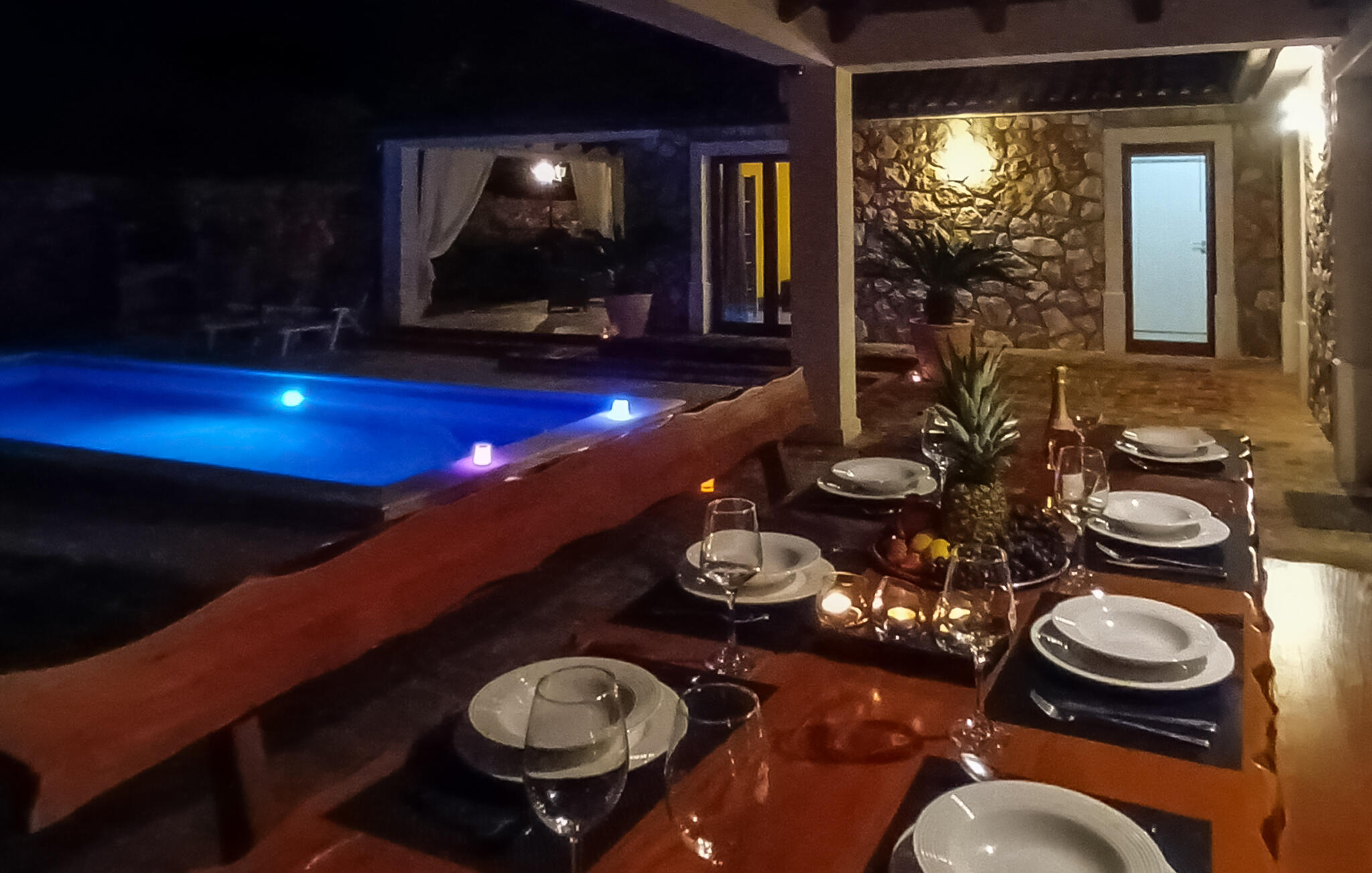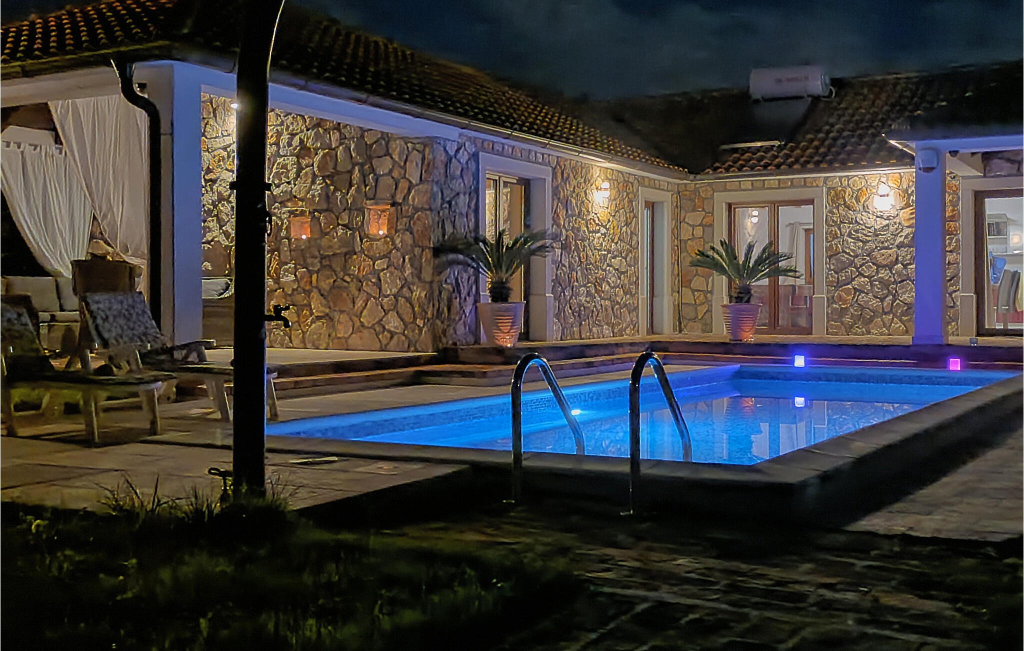 In de buurt van de populaire toeristische plaatsen Krk en Malinska, in het kleine dorpje Gostinjac, wacht dit prachtige vakantiehuis op u met een combinatie van traditionele en moderne charme. Het is ideaal voor natuurliefhebbers, want de prachtig aangelegde tuin biedt uitzicht op het platteland en diverse recreatiemogelijkheden. Verfris u in het buitenzwembad, waar het water niet gechloreerd is, terwijl de kinderen zorgeloos kunnen spelen met voldoende inhoud zoals een schommel, glijbaan of zandbak. Het huis strekt zich uit over begane grond en galerij met een schuin dak van ongeveer 60 cm. Geniet van de zonsondergang op de overdekte terrassen en ontspan met een glas wijn bij een licht briesje. Met de auto bent u snel bij de zee en bij zand-, kiezel-, rots- of afgelegen stranden. Bezoek de culturele evenementen in de zomer, maak gebruik van de vele sportmogelijkheden op het eiland en proef zeker de lokale wijnen en keuken.