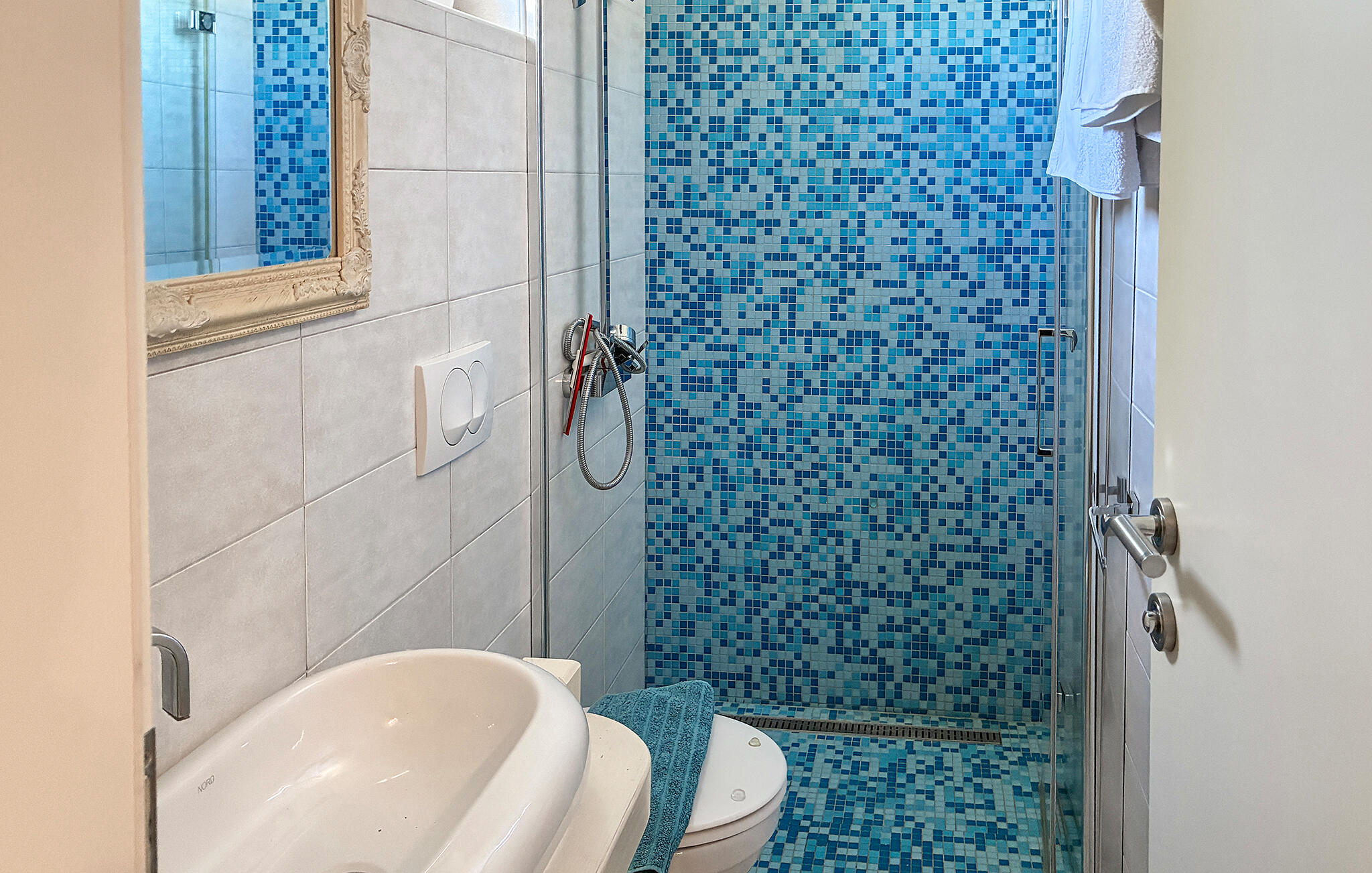 Stap naar buiten in de beschutte entree met mediterrane planten. Geniet van de warme lucht en voel de nabijheid van de zee. De verhoogde positie op het terras geeft je een prachtig uitzicht op de kust en de omliggende huizen. Maak een korte wandeling door de rustige steegjes en bereik het water in slechts een paar minuten.