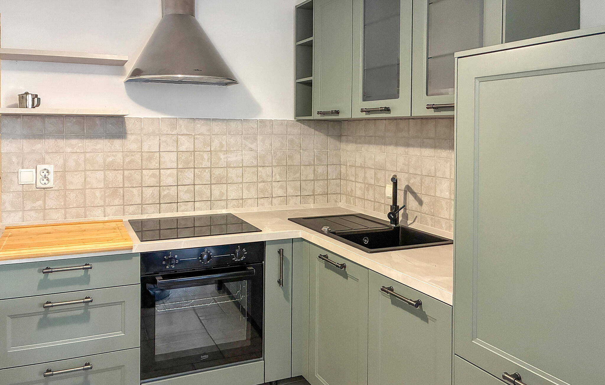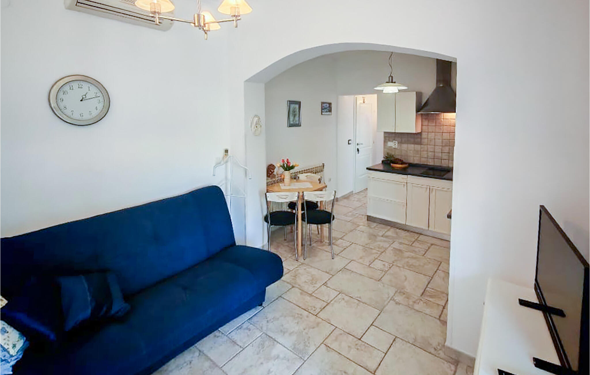 Breng ontspannende uren door met z`n tweeën in deze lichte en smaakvol ingerichte vakantiewoning. Neem plaats op de gezellige bank in de woonkamer en laat je blik door de ramen over de daken naar de zee dwalen. Maak je ontbijt klaar in de moderne, compacte keuken en geniet ervan aan de kleine eettafel. Begin de dag ontspannen en plan je excursies in een rustige sfeer. De vriendelijke kleuren en lichte tegelvloer creëren een aangename woonsfeer. Trek je `s avonds terug en rond je vakantie af met een glas wijn.