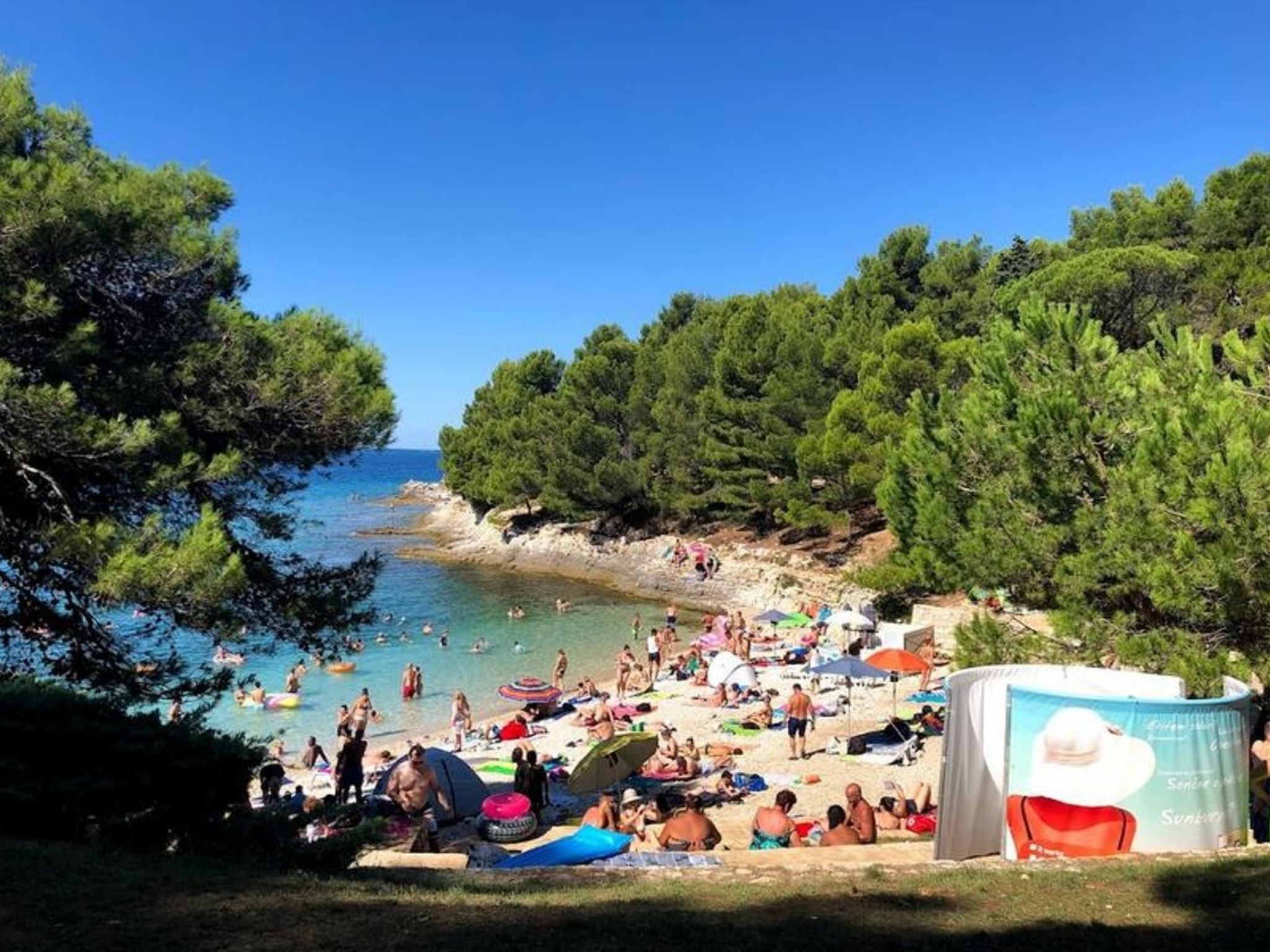 Mooi, maar klein. Mooie rotsen om vanaf te springen. Prachtige kleur water en mooie witte stenen die afgevlakt zijn en daardoor ietsje comfortabeler dan scherpe kiezels. Vind je vakantiehuis Medulin.