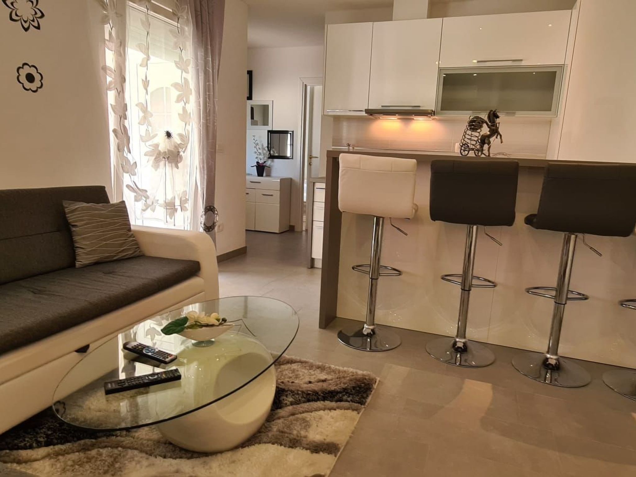 Your charming holiday home in Istria!Discover our lovingly furnished holiday flat in Kastel and enjoy a relaxing stay in the midst of the beautiful Istrian countryside.Location:- Quietly located flat in Kastel, a picturesque village in Istria- 6 kilometres from Buje, a lively town with a wide range of offers- 12 kilometres from Umag, a popular seaside resort with beautiful beaches- Close to the village centre:- Grocery shops for basic daily supplies- Restaurants with traditional Istrian cuisine- Ideal starting point for:- Excursions in the surrounding area- cycling tours- Beach days on the Adriatic- 52 m² living space for 4 people- Modern flat with terrace on the ground floor- Fully equipped kitchen with ceramic hob, oven, dishwasher, fridge, freezer compartments and microwave, kettle, coffee machine, toaster, cutlery, crockery, pans, pots and glasses- High table with four bar stools- Two bedrooms with natural light:- Double bed (160 cm x 200 cm)- Loft bed- Bedside tables- lamps- Wardrobes- Modern bathroom with shower, WC, washbasin with vanity unit and mirror cabinet- Cosy living room with contemporary furnishings and satellite TV- WLAN access in all rooms- Air conditioning- Towels provided- Baby cot free of charge on request- Shared pool with two other flats, ideal for cooling off on hot days, relaxing on sun loungers and having fun in the water- Cosy barbecue area, ideal for cosy barbecue evenings and preparing delicious meals- Sun loungers by the pool (two per flat) for relaxing and sunbathing- Terrace with direct pool access- Towels and air conditioning included free of charge in the rental price for a comfortable stay- Underfloor heatingNote:- The pool is open from May to October- Please note: The landlord lives on the property and will be happy to answer any questions you may have.- Numerous hiking and cycling trails nearby for exploring the beautiful Istrian countryside and active holidays in nature- Various restaurants and shopping facilities in the surrounding villages for savouring the local cuisine and buying souvenirs and groceries- Places of interest:- Buje: approx. 7 km: Old town with Venetian architecture, city walls and bell tower- Umag: approx. 13 km: Bathing beaches, sports facilities, ACI marina- Grožnjan: approx. 22 km: Artists' village with medieval flair- Motovun: approx. 27 km: Mountain village with breathtaking views- Pula: approx. 60 km: Roman amphitheatre, Temple of Augustus, triumphal arch- Brijuni National Park: approx. 70 km and Plitvice Lakes: approx. 140 km: unique natural landscapes-