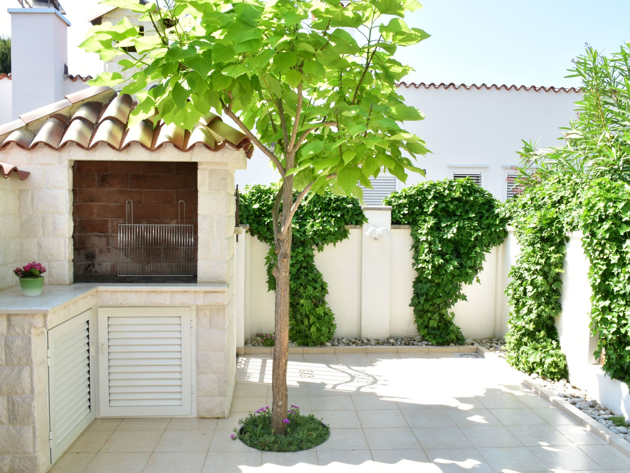 The house is just a few minutes' walk from the beach cafe, beach bars, and restaurants. Parking is also almost directly in front of the house. A playground and other activities are also easily accessible.The garden offers plenty of space and has garden furniture. The terrace is partially covered, so you can easily find shade.The house is modern and beautifully furnished, with a fully equipped kitchen with an oven, dishwasher, ceramic hob, toaster, and microwave. A coffee maker is also included. One bedroom is located on the ground floor with a separate shower, toilet, and sink, and a separate TV. The second bedroom is on the floor with access to the terrace, where there is also a pull-out sofa. The bathroom on the ground floor includes a shower, toilet, sink, bidet, and a washing machine. The living area has a TV and comfortable furniture. The entrance to the house is private and separate.The beach is just a few minutes' walk away.