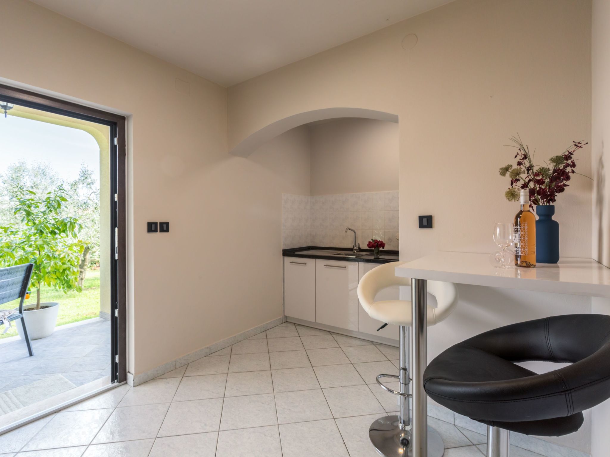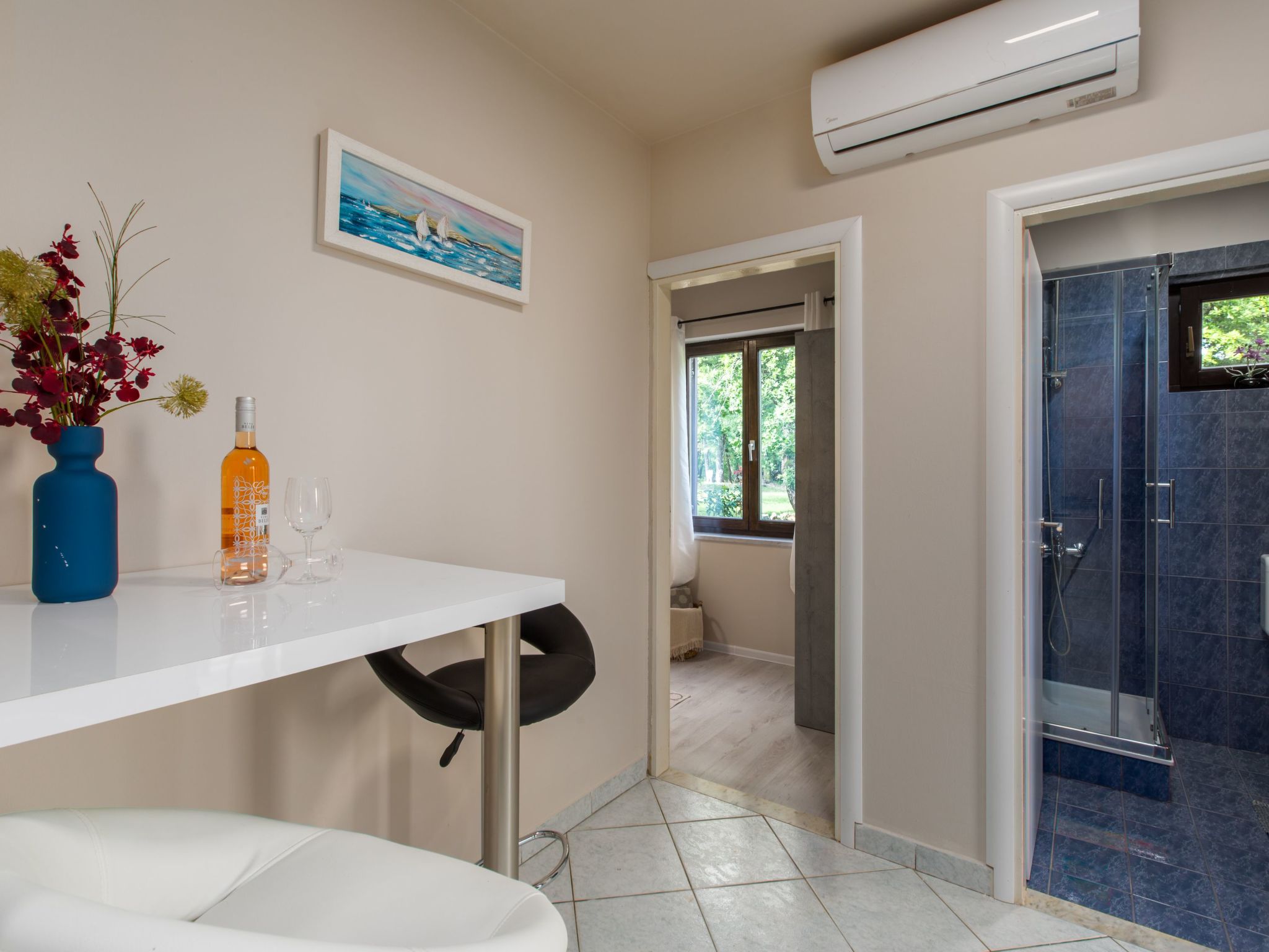 Maximaal 1 huisdier/hond toegestaan. Discover the cosy retreat of Apartment Adelia 3 in Susnjici, Istria, perfect for couples or solo travellers looking for an idyllic getaway. This charming holiday flat offers 30 square metres of living space with everything you need for a relaxing stay surrounded by the picturesque Istrian countryside. With its attentively furnished interior, the flat promises a warm and inviting ambience for your holiday.Inside, you will find a practically furnished flat with a cosy living room with a small kitchenette and a high dining table for two. Relax in a cosy atmosphere and enjoy all the benefits this accommodation has to offer. The bedroom with a comfortable double bed and satellite TV invites you to relax after an eventful day and can be completely darkened so that you can sleep in peace. A modern bathroom with shower/WC completes the feel-good offer of the holiday flat.The outside area of Residence Adelia features a spacious, partially fenced garden, which offers you a refreshing 44m² communal pool and a wide range of opportunities for relaxation. Parking for several vehicles, a swing for children and an inviting oak forest for carefree hours of outdoor play are further highlights. There is also a wonderful covered summer kitchen with barbecue and seating for communal use, which invites you to socialise.The location in Susnjici is ideal for those who appreciate both tranquillity and proximity to local amenities. Just 4 km from the holiday flat is the nearest town centre with shops and restaurants where you can sample local specialities and stock up on everything you need. With the town of Porec within easy reach, you also have an excellent base from which to discover the cultural and natural beauties of Istria.The Adelia 3 holiday flat is the perfect setting for an unforgettable holiday in Istria. Here you can relax in peace, enjoy nature and leave everyday life behind you. Experience a unique combination of comfort, hospitality and the beauty of Istria, which will make your holiday an unforgettable experience.