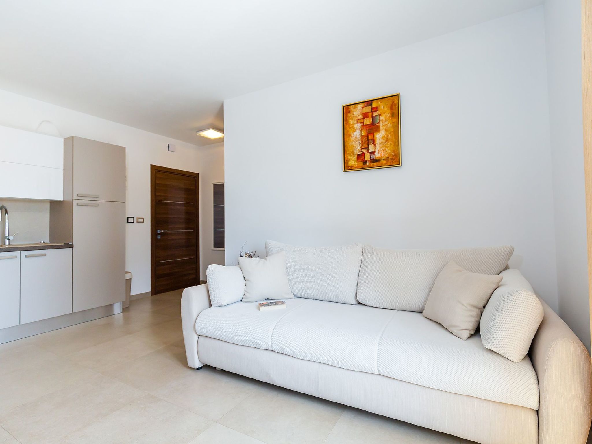 Heel leuk strandje met zon en schaduw. Het strand is schoon en goed onderhouden, deels gazon, deels met stenen. Er zijn veel ligstoelen, maar ook ruimte voor wie liever op de rotsen wil zonnen. Er zijn ook springkussens voor kinderen. Vind je vakantiehuis Porec.
