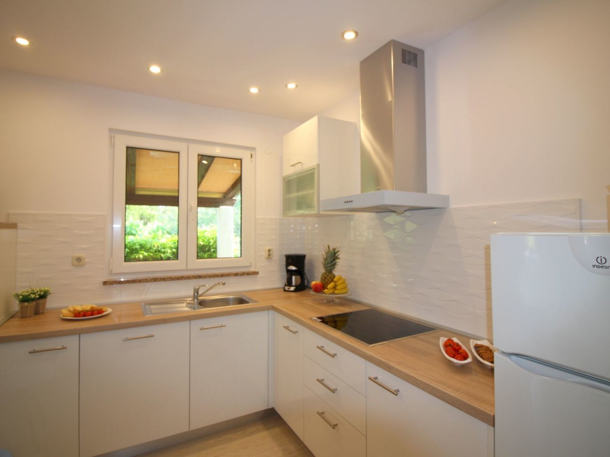 Welcome to our barrier-free holiday flat in Porec, Istria, a true gem for all those who appreciate peace and nature but don't want to miss out on the proximity of urban civilisation. With a size of 58 m², surrounded by lush greenery and in a sunny location in the Portun district, our flat offers the perfect starting point for enjoyable activities in the breathtaking region of Istria. Be it culinary discoveries or a visit to the countless wineries - connoisseurs will find their paradise here.Inside, the flat impresses with its appealing modern furnishings that leave nothing to be desired. There is a cosily furnished living/dining room with a sofa, satellite TV and air conditioning, which offers a seamless transition to the garden and terrace. There are also two bedrooms for your comfort - one with a double bed and another with two separate beds. The flat also has a fully equipped kitchen with microwave, dishwasher, filter coffee machine, toaster and kettle, as well as a bathroom with shower and WC.The outdoor area with its covered terrace and high-quality patio furniture invites you to spend relaxing hours outdoors. The direct access to the well-tended garden offers additional space for relaxation and is ideal for families with children or pets. Here you can enjoy the sun in peace and quiet or enjoy a cosy get-together on a warm summer evening.Porec itself is one of the most charming holiday resorts in the whole of Istria and impresses with its historic old town, ancient monuments and the famous Eufrasiana Basilica. The surrounding area offers not only cultural highlights, but also a wide variety of activities: from hiking and cycling tours through the picturesque vineyards and along the coast to exciting excursions to Venice, the Lim Fjord or the national parks of Plitvice and Brijuni. Tennis players and cycling enthusiasts will also find ideal conditions here.Experience unforgettable holidays in our holiday flat in Porec, where comfort meets tranquillity, natural beauty meets cultural diversity. Let yourself be enchanted by the hospitality of Istria and enjoy every minute of your holiday to the full. Ideal for couples or families, our temporary home offers the perfect setting for a break from everyday life or an eventful journey of discovery through one of Croatia's most beautiful regions. 2163-11-02/2-17-3