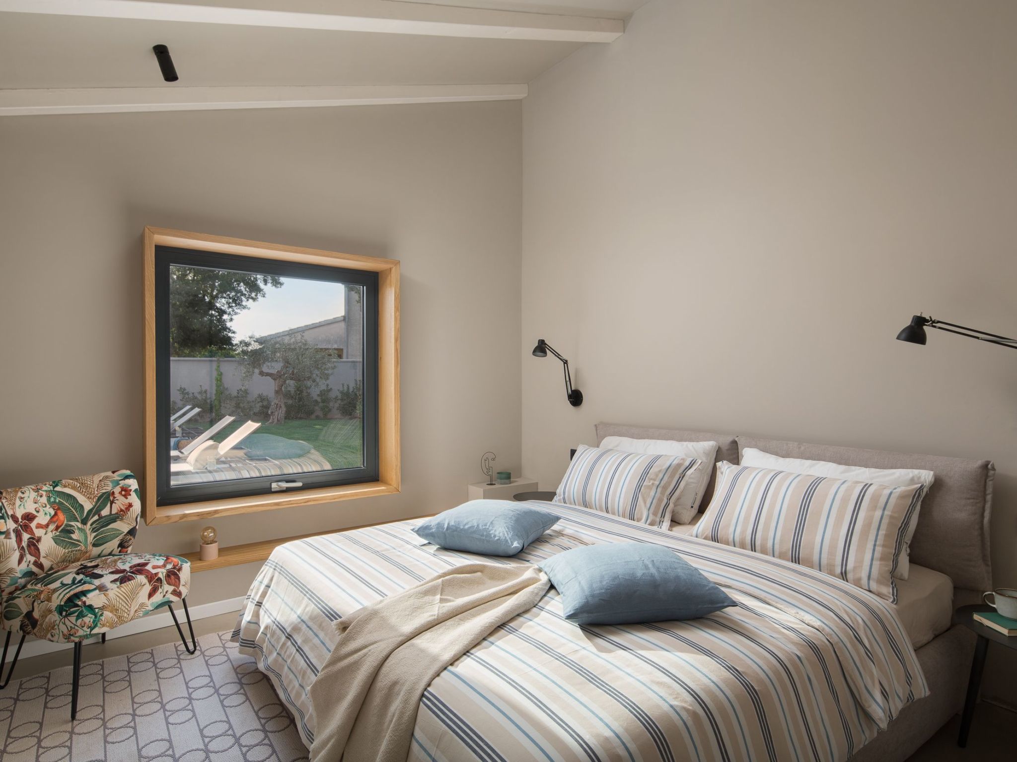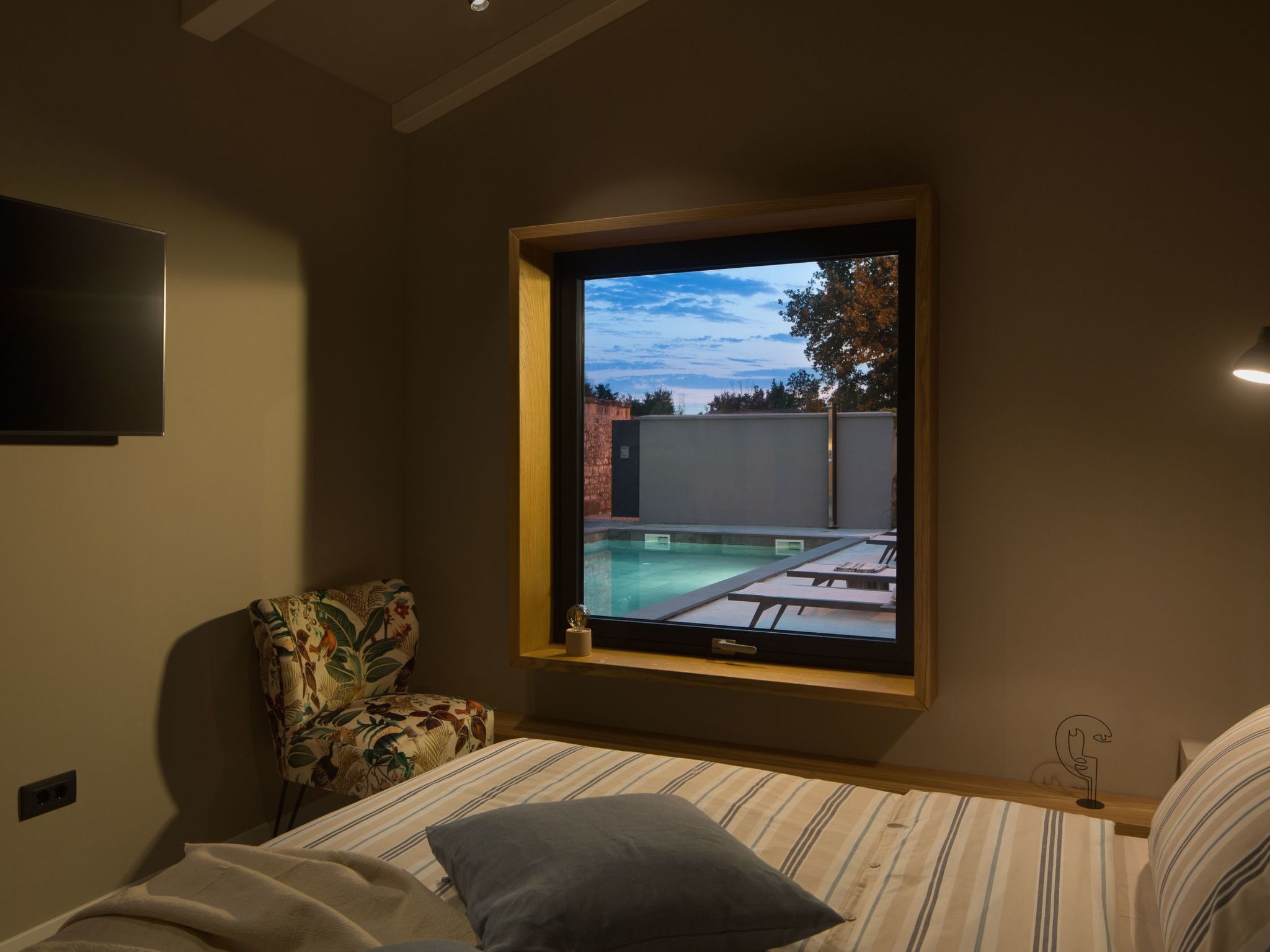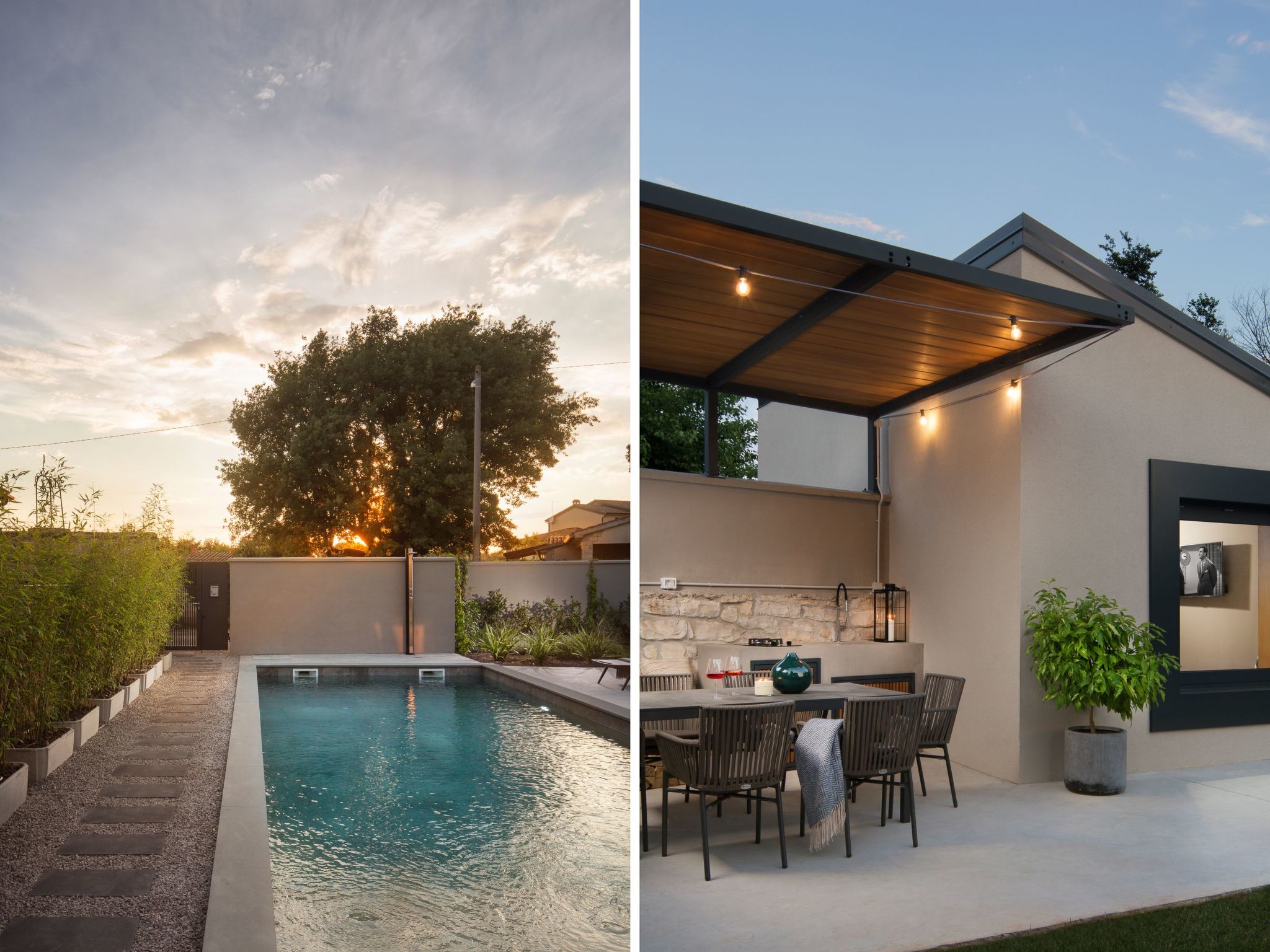 Discover the charm of Susnjici, Istria, at the cosy Villa Bino & Maria, a tranquil paradise ideal for an unforgettable holiday for up to four guests. Surrounded by idyllic landscapes, just a few kilometres from the lively beaches and cultural heart of Porec, this welcoming accommodation offers the perfect base for your adventures in the region.Inside, you'll find a thoughtful 65sqm layout that skilfully combines comfort and function. The villa is characterised by a spacious open-plan living room that is seamlessly connected to the kitchen and dining area, making cooking and relaxing together particularly enjoyable. A bedroom that can be darkened guarantees peaceful nights and the amenities such as air conditioning, underfloor heating, washing machine and tumble dryer ensure carefree living.The outdoor area of this holiday home is a true retreat. On the fenced plot you will find a private 40 square metre pool, which promises refreshment on hot days. A covered summer kitchen with a dining table invites you to enjoy convivial evenings with home-cooked meals, while two parking spaces ensure your mobility. The private garden offers plenty of space for relaxation and play.Despite its quiet location, the holiday home is ideally situated - only approx. 3.5 km from the nearest restaurant and shop, while the town centre and nearest grocery store are only 4 km away. The proximity to Porec, a town known for its historical sights and beautiful beaches, makes it easy to explore Istria's rich cultural offerings and picturesque coastal landscape.Villa Bino & Maria is an oasis of tranquillity that enchants with its name and charm. It provides an ideal backdrop for a relaxing holiday in Istria that will live long in the memory. With its comfortable amenities and lovely decoration, it is the perfect place for families or small groups who want to discover the beauties of Istria without having to give up the comforts of home.