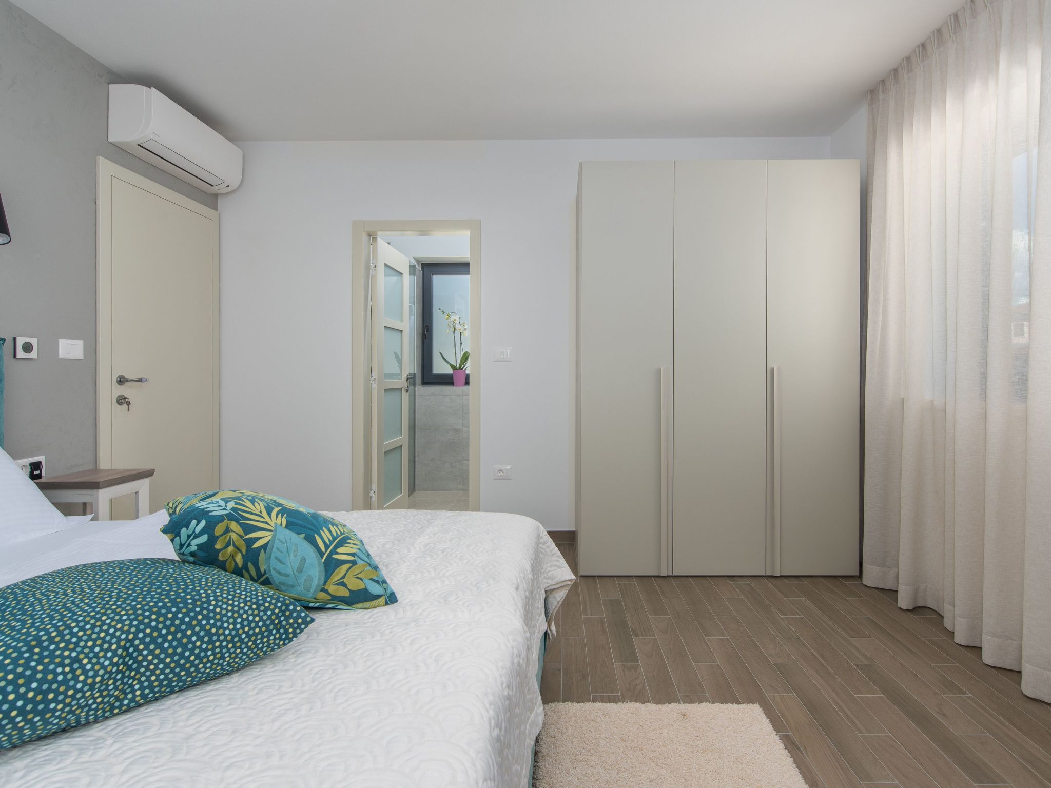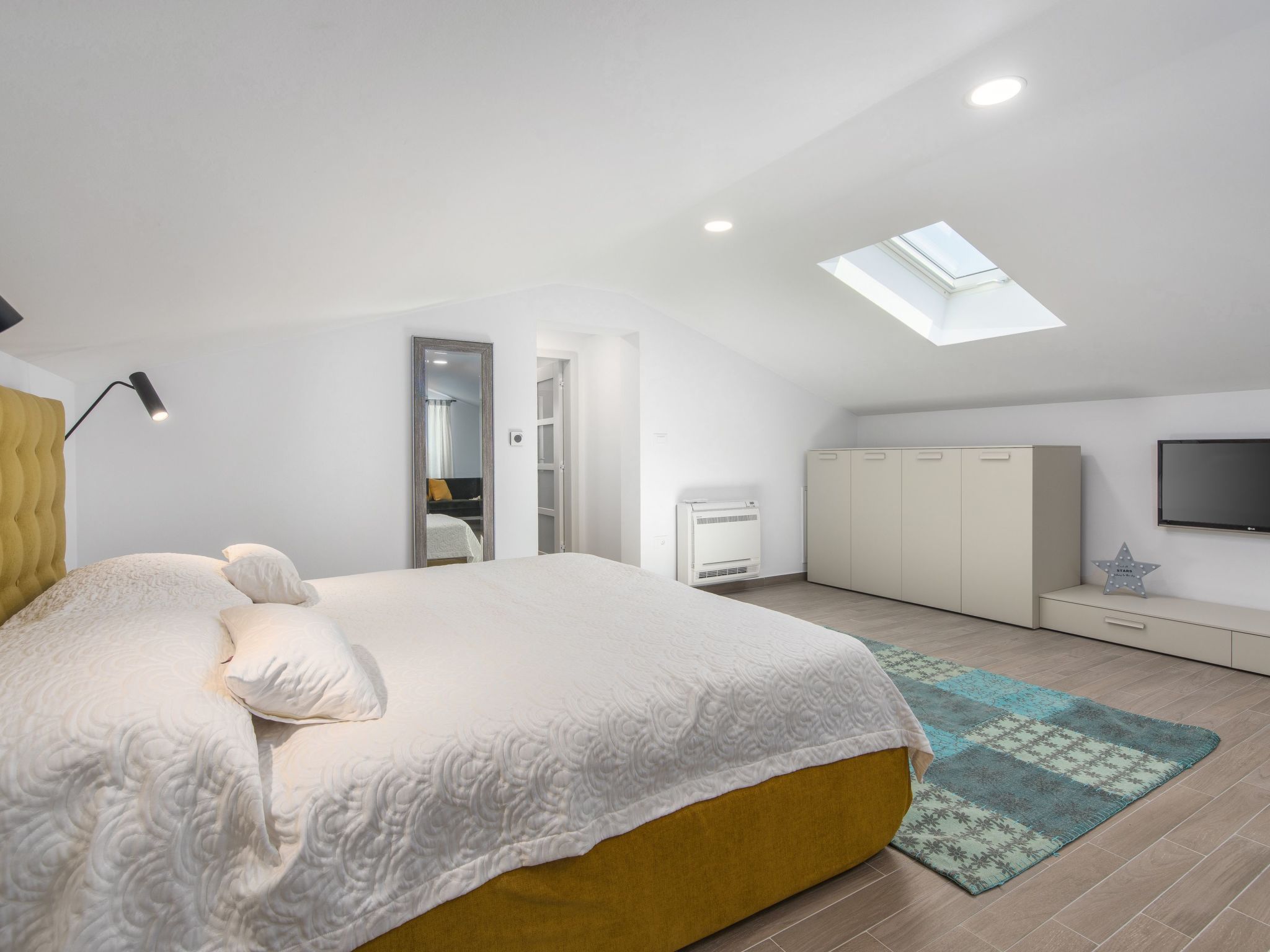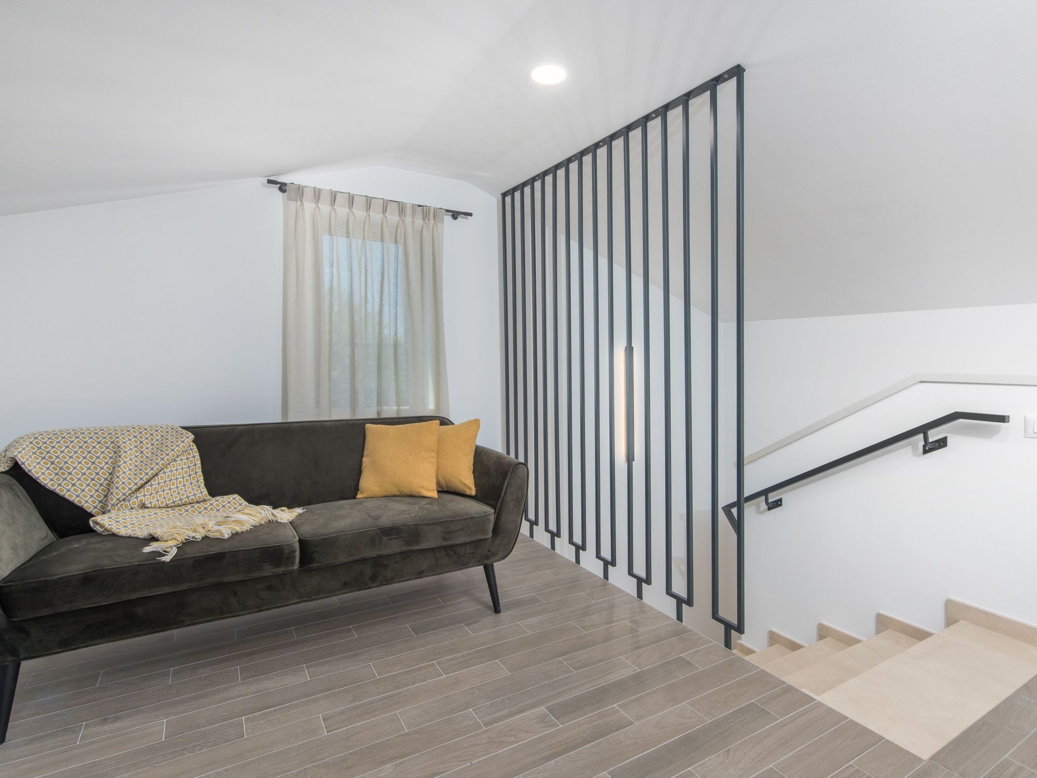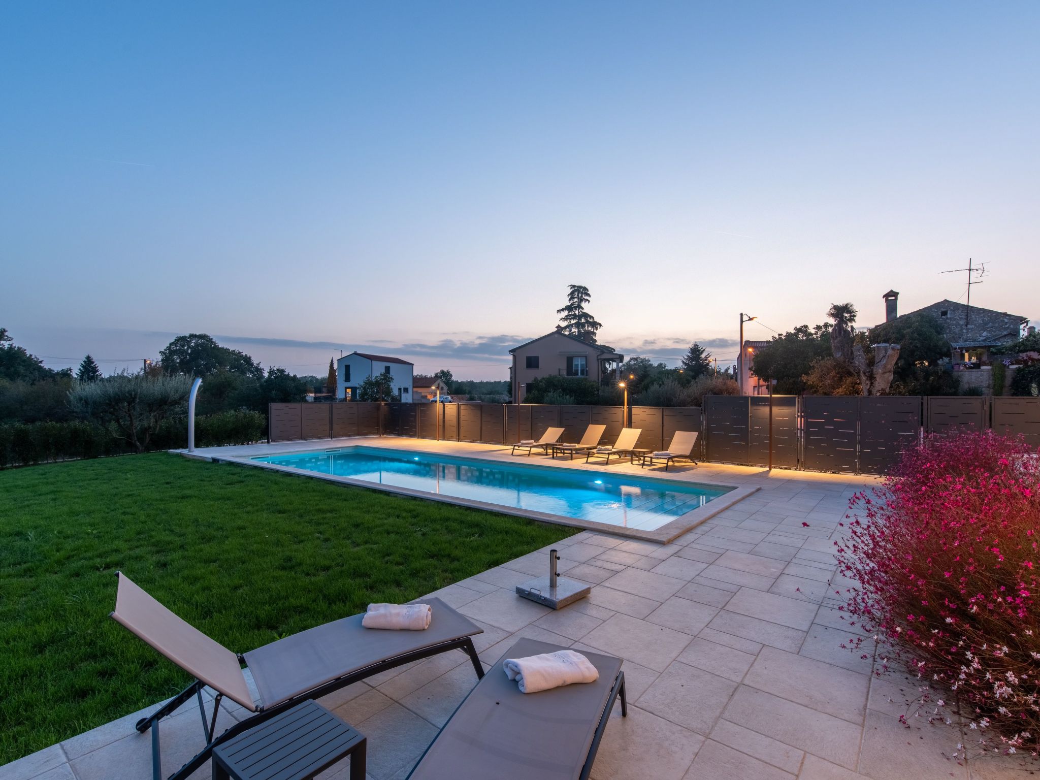 Villa Daniela Veleniki is located in a typical Istrian village, only 5 km from Porec and the sea. This stone house was completely renovated in 2021 and furnished in a modern style. On its own 800 square metre fenced plot, guests of the villa have at their disposal a saltwater pool of 48 square metres with sun loungers and parasols, barbecue and dining table with chairs for outdoor dining. Two private car parks are located outside the property, directly in front of the house. The famous restaurant-taverna is nearby and several supermarkets are about 4km away.Villa Daniela Veleniki offers space for 6 people with 240 square metres of living space and consists of three fully air-conditioned floors. In addition to the classic air conditioning units, the whole house has underfloor cooling/heating. On the ground floor there is a living area with access to the pool and garden, fully equipped kitchen with dining table, laundry room and bathroom with shower/WC. On the first floor there are two double bedrooms each with its own bathroom and on the 2nd floor (attic) there is a spacious double bedroom with its own shower/WC and sitting area. Thanks to its location, Villa Daniela Veleniki is an excellent choice for a holiday in the countryside and yet 10 minutes drive from the beach.Youth groups are not allowed.