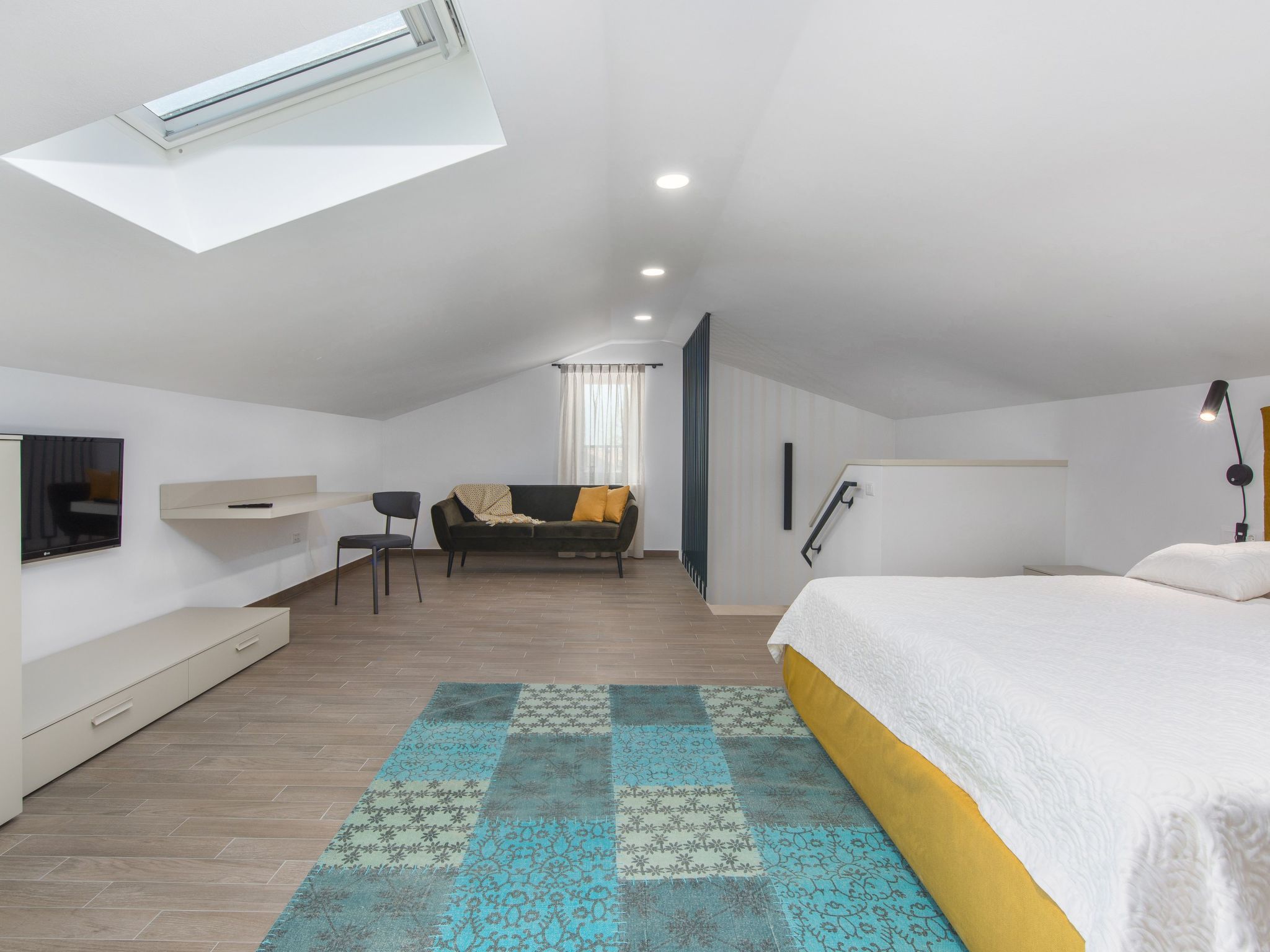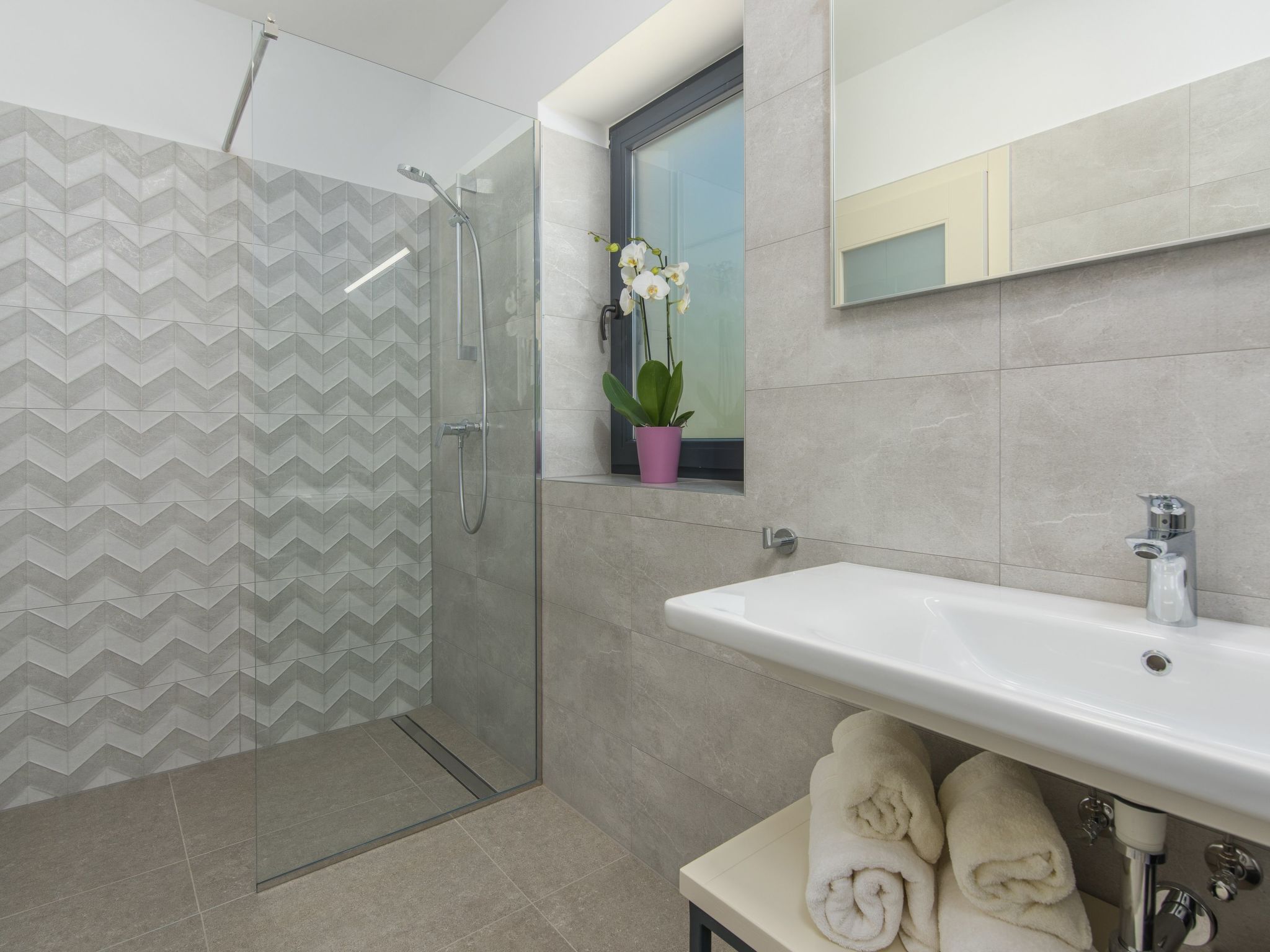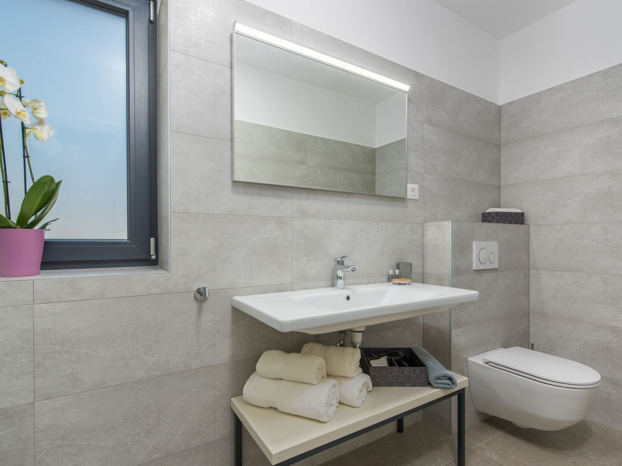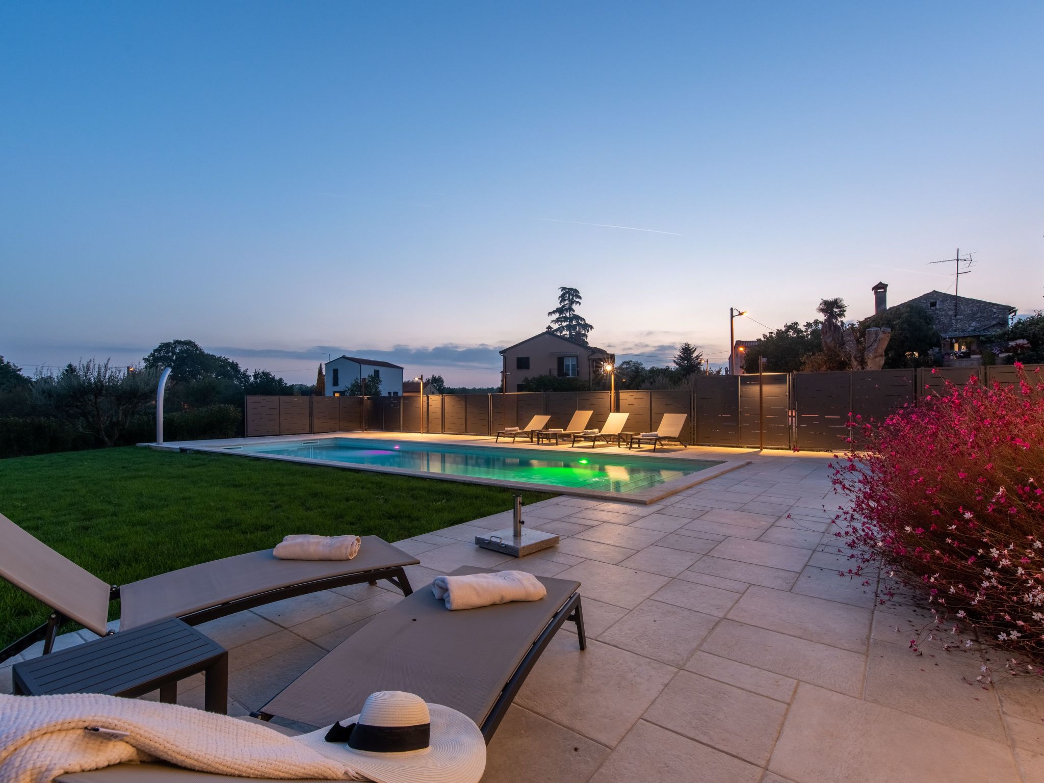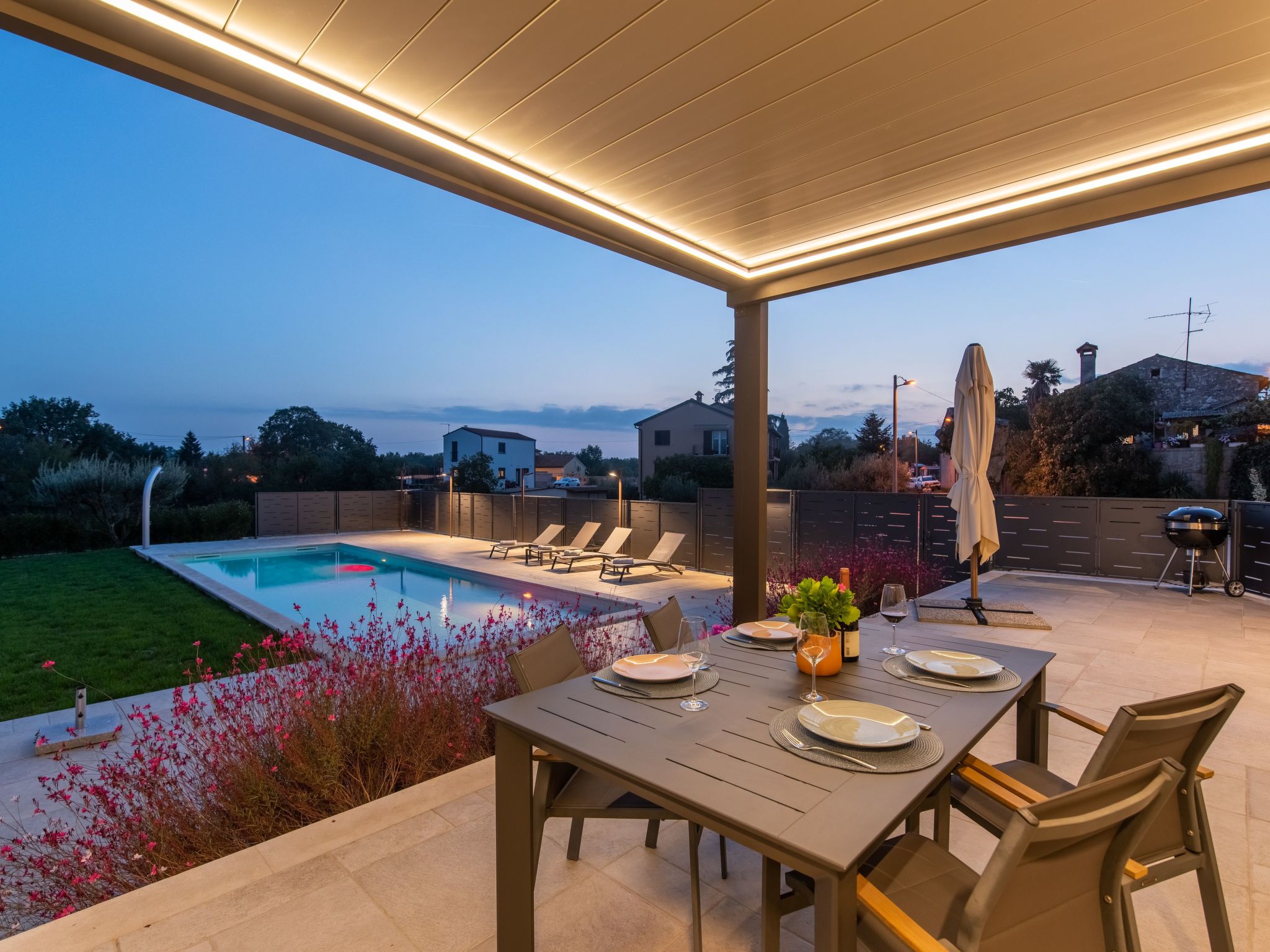 Villa Daniela Veleniki is located in a typical Istrian village, only 5 km from Porec and the sea. This stone house was completely renovated in 2021 and furnished in a modern style. On its own 800 square metre fenced plot, guests of the villa have at their disposal a saltwater pool of 48 square metres with sun loungers and parasols, barbecue and dining table with chairs for outdoor dining. Two private car parks are located outside the property, directly in front of the house. The famous restaurant-taverna is nearby and several supermarkets are about 4km away.Villa Daniela Veleniki offers space for 6 people with 240 square metres of living space and consists of three fully air-conditioned floors. In addition to the classic air conditioning units, the whole house has underfloor cooling/heating. On the ground floor there is a living area with access to the pool and garden, fully equipped kitchen with dining table, laundry room and bathroom with shower/WC. On the first floor there are two double bedrooms each with its own bathroom and on the 2nd floor (attic) there is a spacious double bedroom with its own shower/WC and sitting area. Thanks to its location, Villa Daniela Veleniki is an excellent choice for a holiday in the countryside and yet 10 minutes drive from the beach.Youth groups are not allowed.