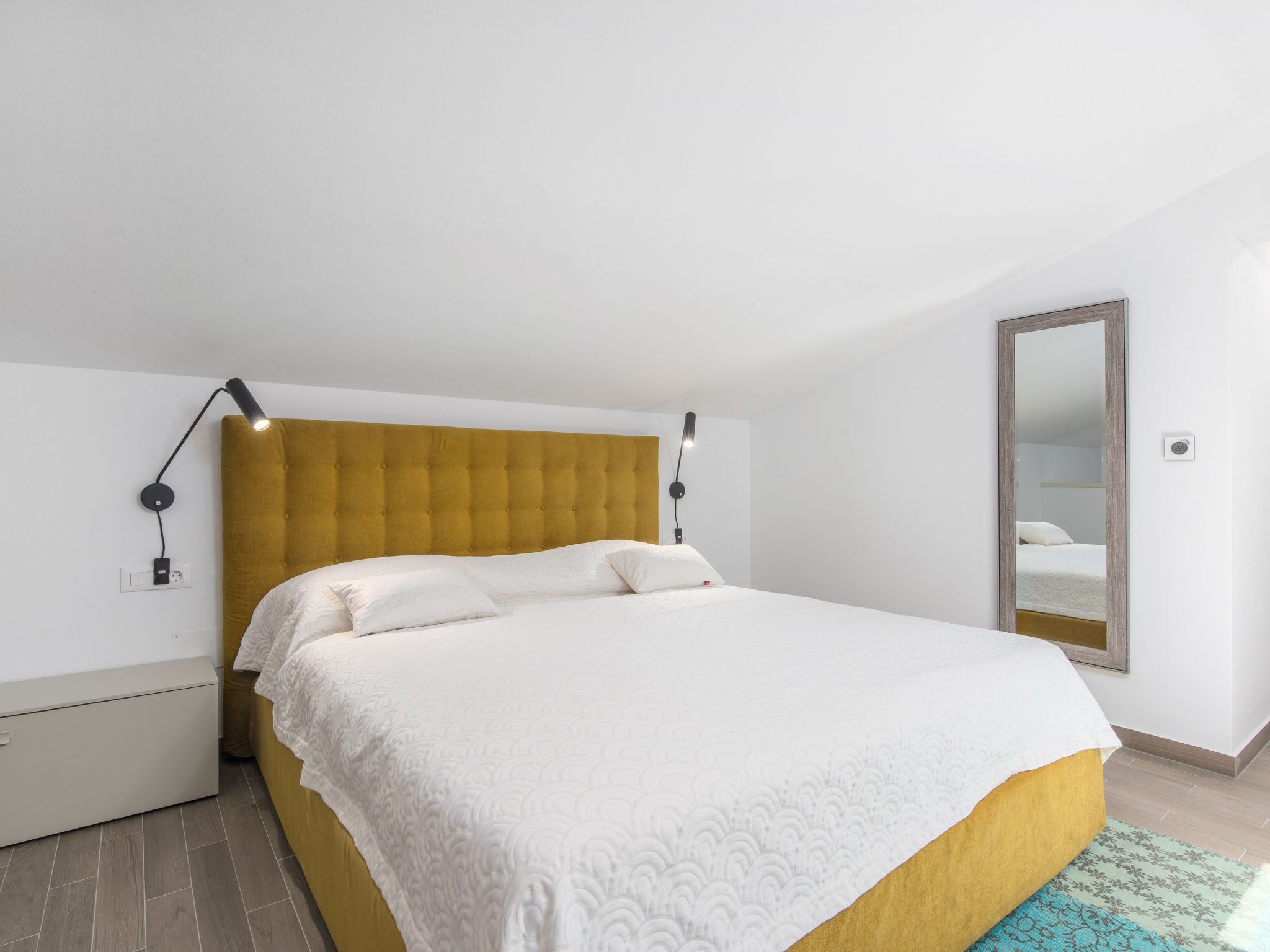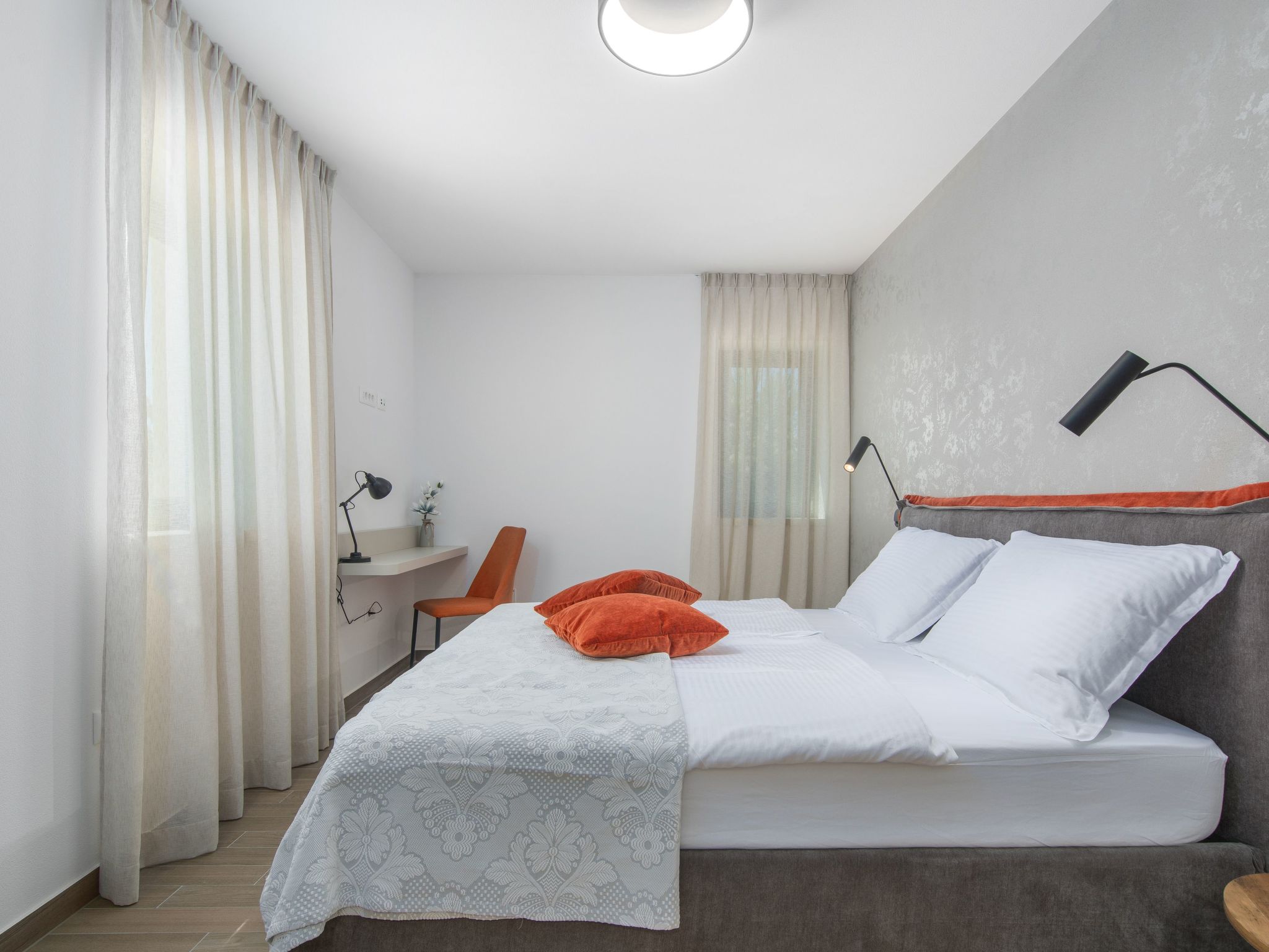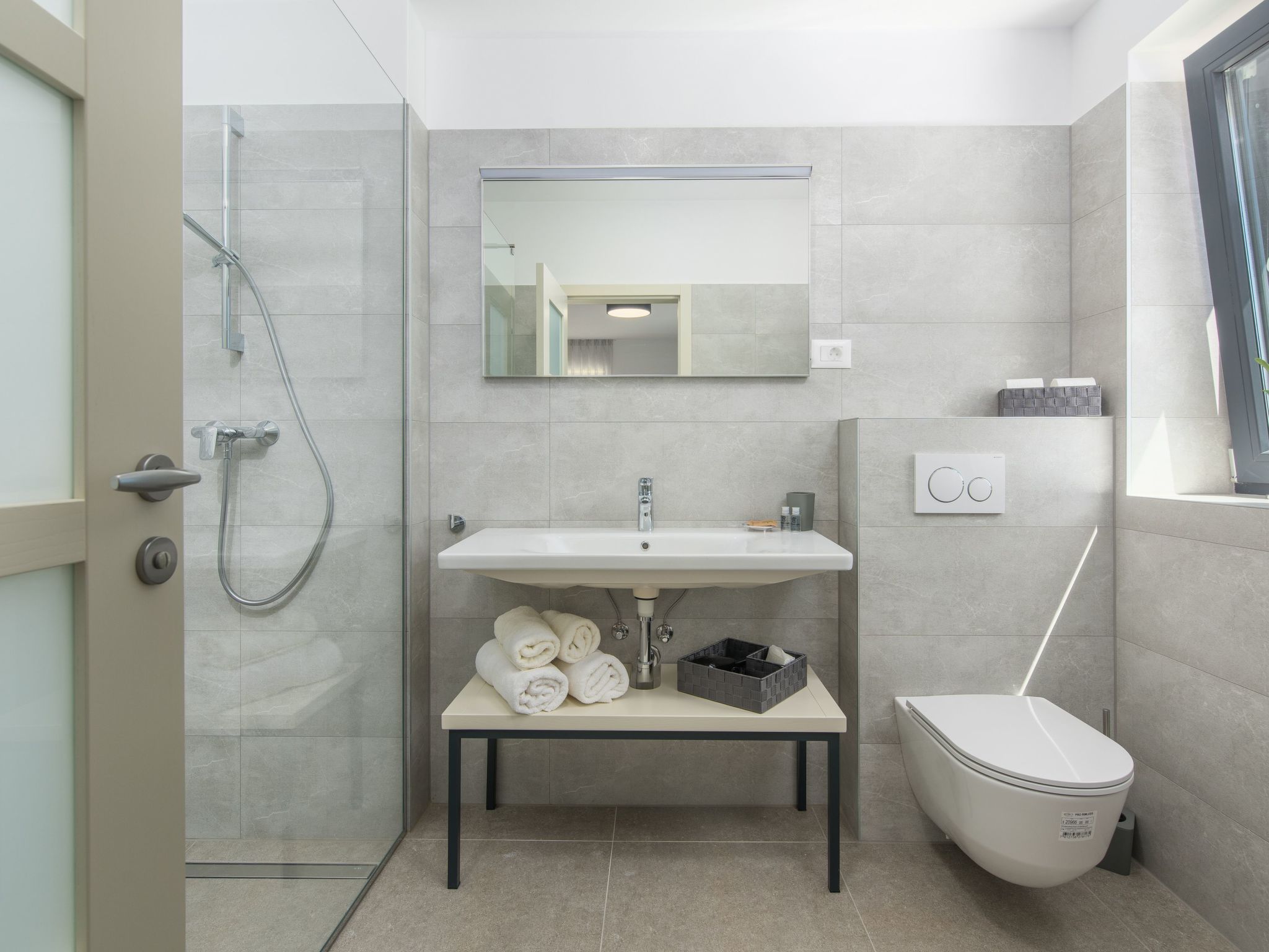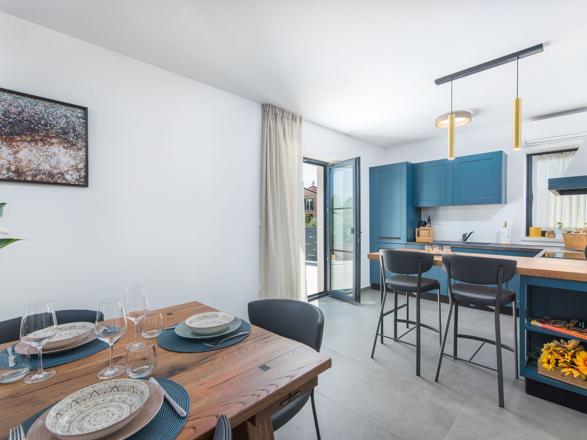 Villa Daniela Veleniki is located in a typical Istrian village, only 5 km from Porec and the sea. This stone house was completely renovated in 2021 and furnished in a modern style. On its own 800 square metre fenced plot, guests of the villa have at their disposal a saltwater pool of 48 square metres with sun loungers and parasols, barbecue and dining table with chairs for outdoor dining. Two private car parks are located outside the property, directly in front of the house. The famous restaurant-taverna is nearby and several supermarkets are about 4km away.Villa Daniela Veleniki offers space for 6 people with 240 square metres of living space and consists of three fully air-conditioned floors. In addition to the classic air conditioning units, the whole house has underfloor cooling/heating. On the ground floor there is a living area with access to the pool and garden, fully equipped kitchen with dining table, laundry room and bathroom with shower/WC. On the first floor there are two double bedrooms each with its own bathroom and on the 2nd floor (attic) there is a spacious double bedroom with its own shower/WC and sitting area. Thanks to its location, Villa Daniela Veleniki is an excellent choice for a holiday in the countryside and yet 10 minutes drive from the beach.Youth groups are not allowed.