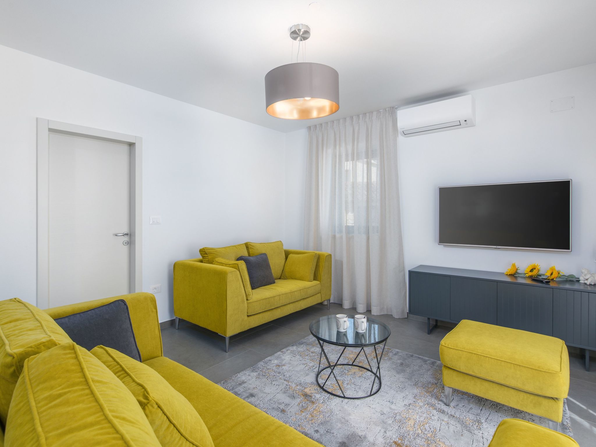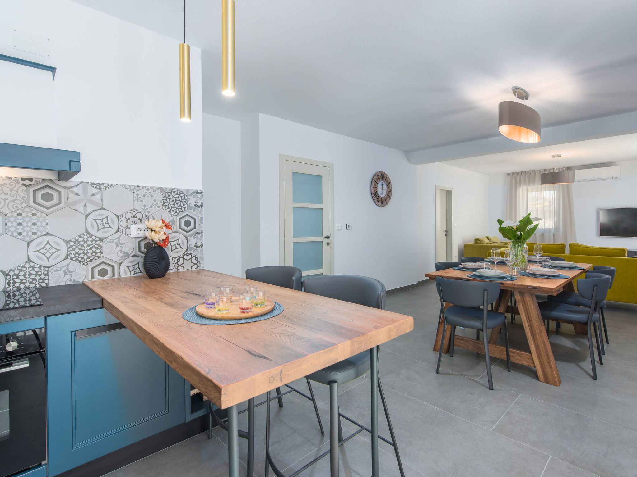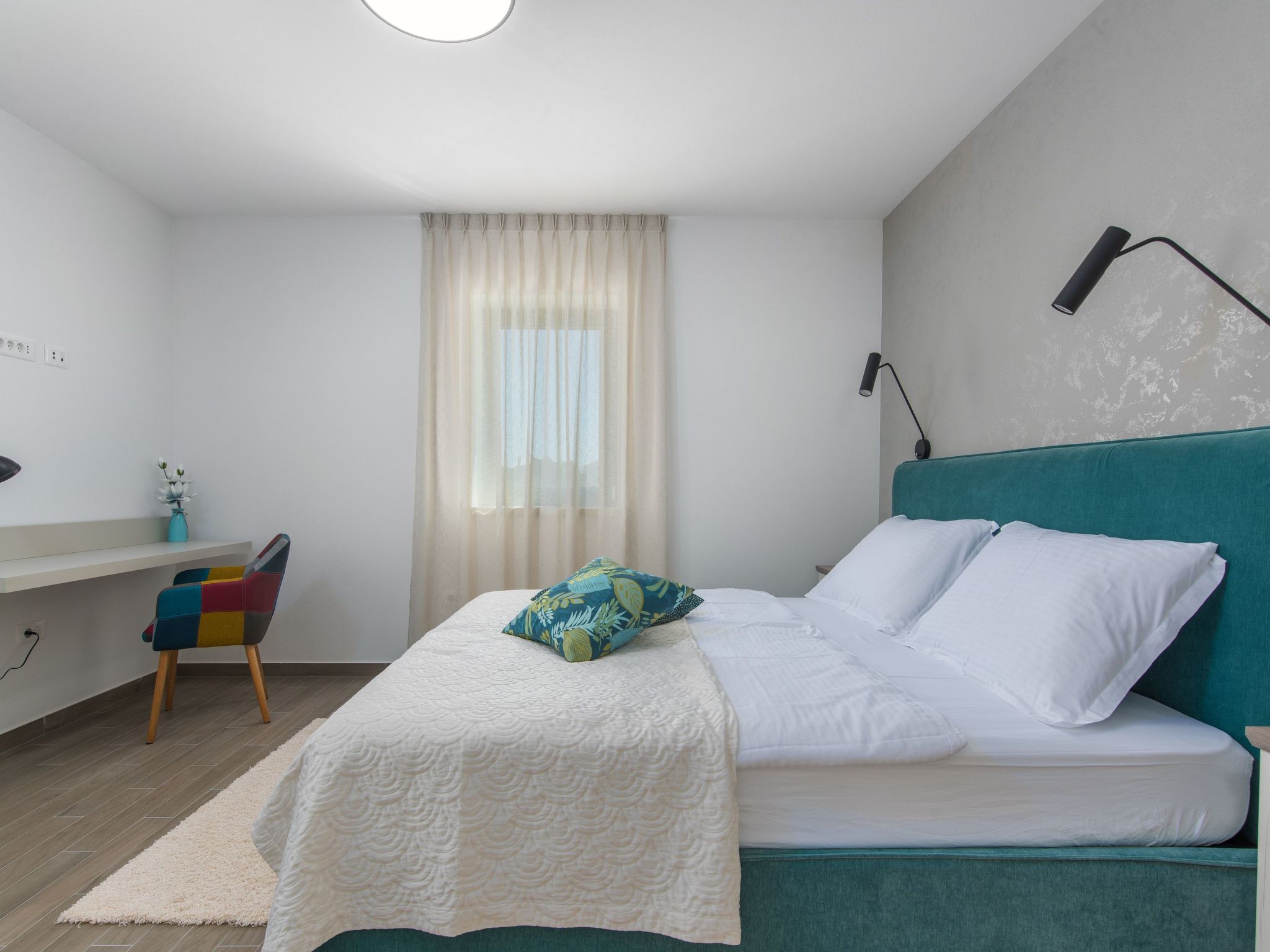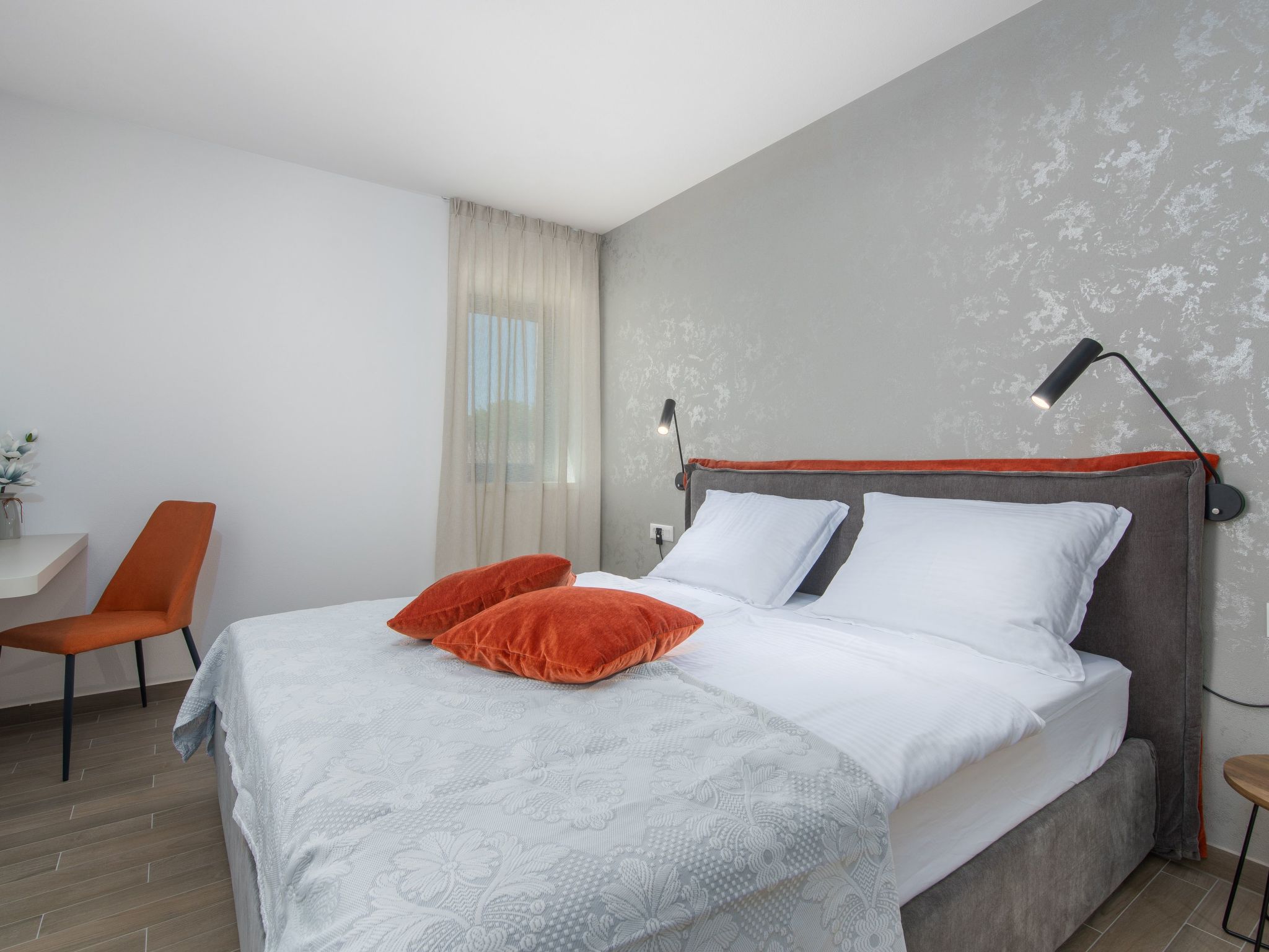 Villa Daniela Veleniki is located in a typical Istrian village, only 5 km from Porec and the sea. This stone house was completely renovated in 2021 and furnished in a modern style. On its own 800 square metre fenced plot, guests of the villa have at their disposal a saltwater pool of 48 square metres with sun loungers and parasols, barbecue and dining table with chairs for outdoor dining. Two private car parks are located outside the property, directly in front of the house. The famous restaurant-taverna is nearby and several supermarkets are about 4km away.Villa Daniela Veleniki offers space for 6 people with 240 square metres of living space and consists of three fully air-conditioned floors. In addition to the classic air conditioning units, the whole house has underfloor cooling/heating. On the ground floor there is a living area with access to the pool and garden, fully equipped kitchen with dining table, laundry room and bathroom with shower/WC. On the first floor there are two double bedrooms each with its own bathroom and on the 2nd floor (attic) there is a spacious double bedroom with its own shower/WC and sitting area. Thanks to its location, Villa Daniela Veleniki is an excellent choice for a holiday in the countryside and yet 10 minutes drive from the beach.Youth groups are not allowed.