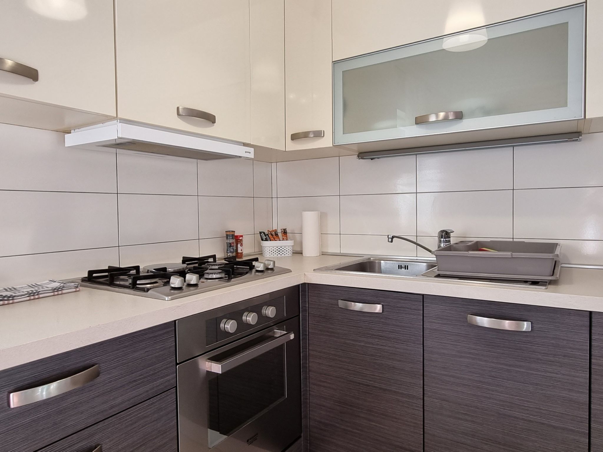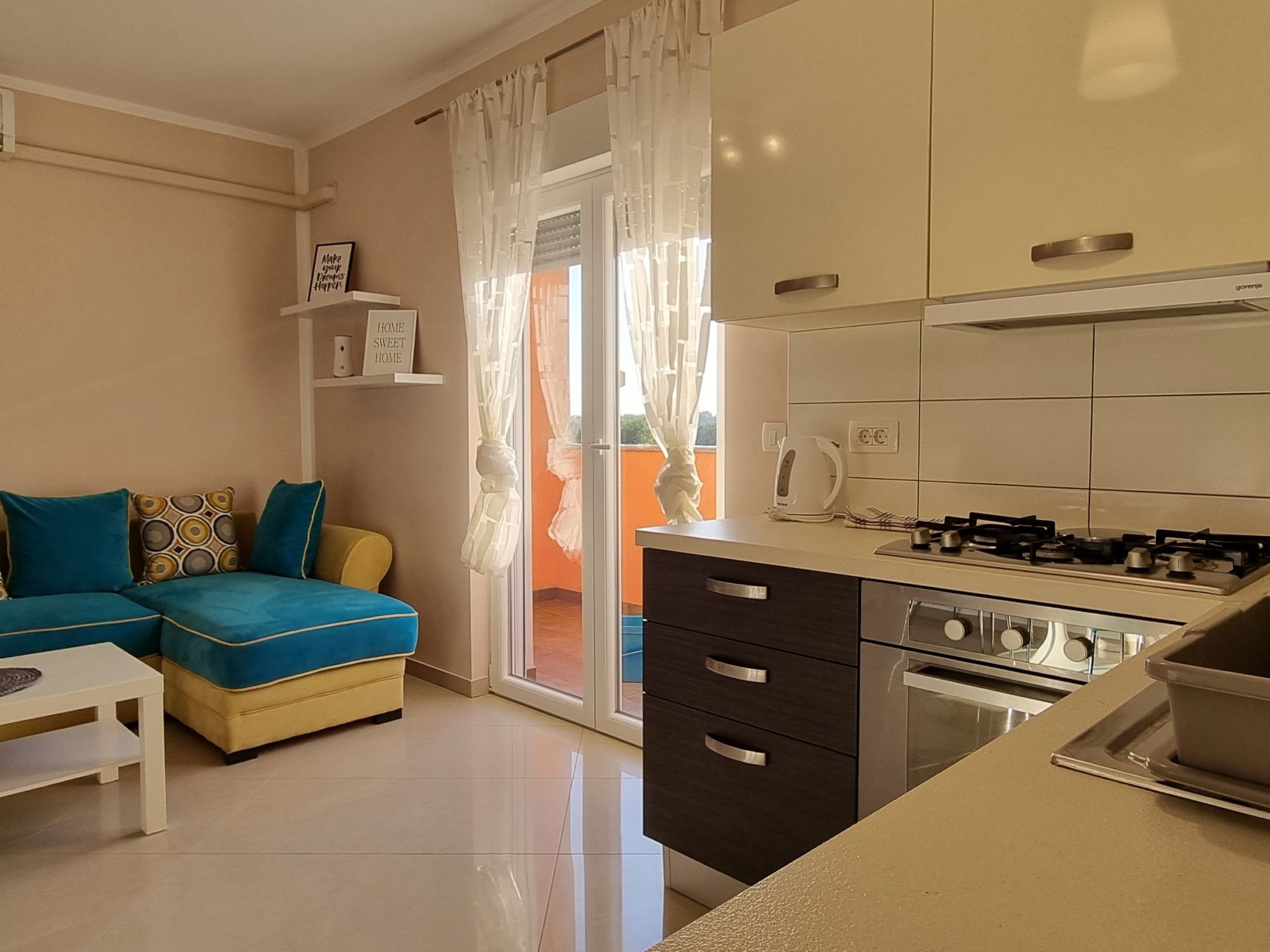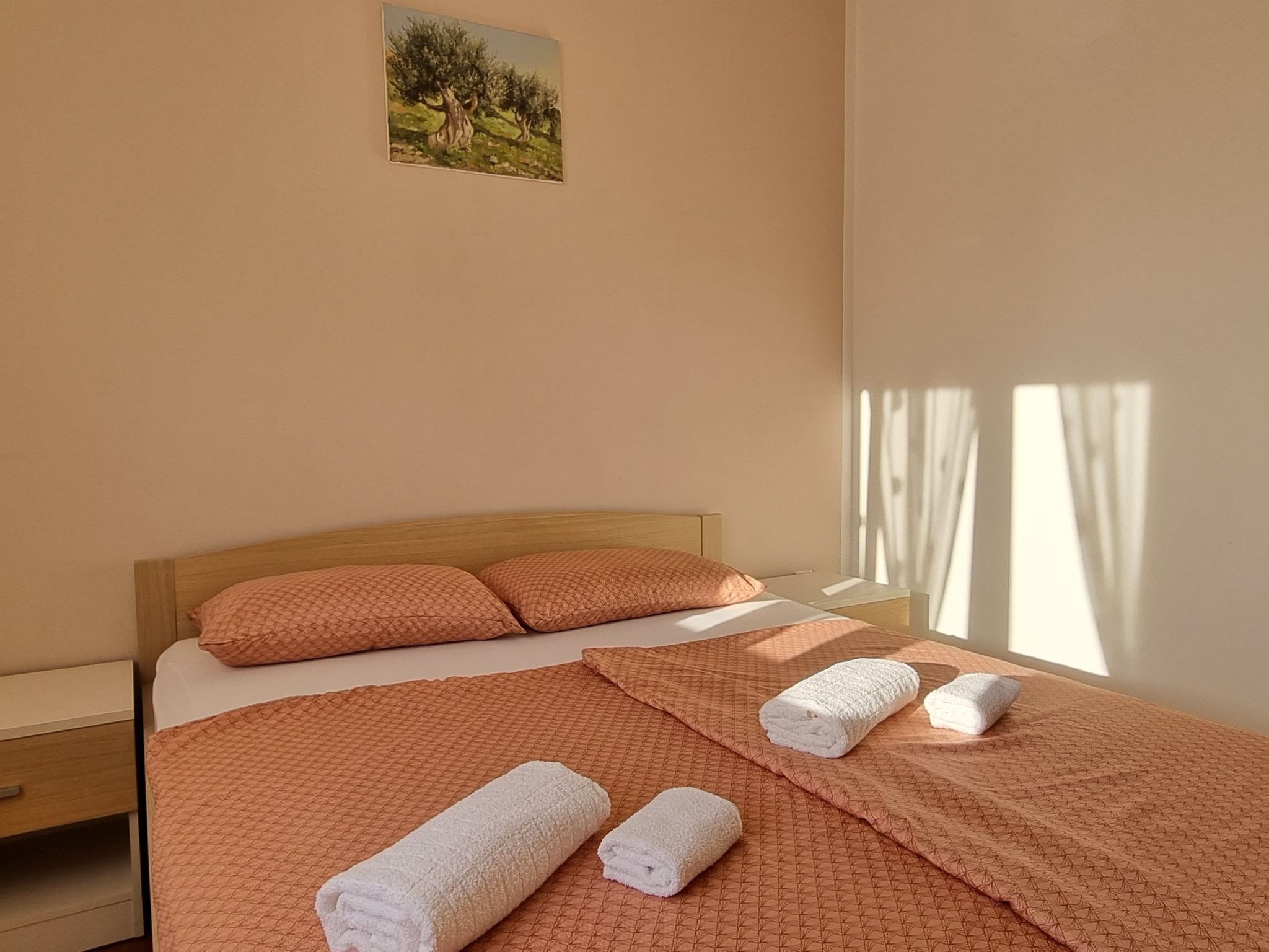 Mooi kiezelstrand en rotsen aan de ene kant van de baai, aan de andere kant een geplaveide oever met terrassen en trappen om toegang te krijgen tot het water. Op het strand is er een kleine bar met verhuur van parasols en ligstoelen en daarachter is de verhuur van kajaks. Vind je vakantiehuis Pula.