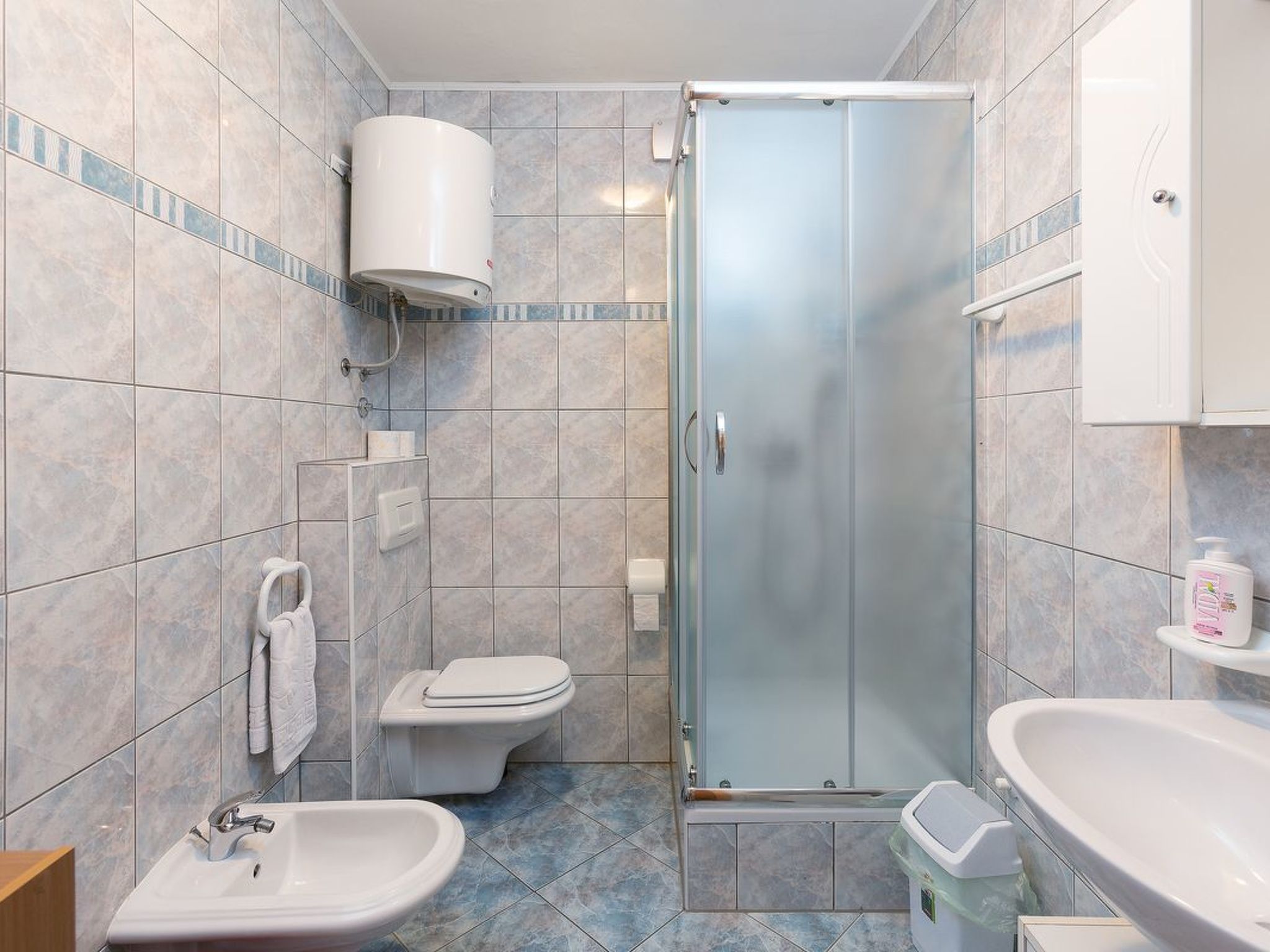 Mooi kiezelstrand en rotsen aan de ene kant van de baai, aan de andere kant een geplaveide oever met terrassen en trappen om toegang te krijgen tot het water. Op het strand is er een kleine bar met verhuur van parasols en ligstoelen en daarachter is de verhuur van kajaks. Vind je vakantiehuis Pula.