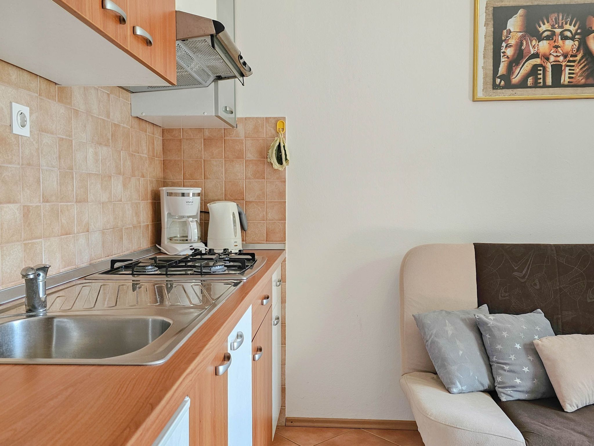 Dit appartement op de eerste verdieping ligt in een rustig deel van Novigrad en biedt de perfecte combinatie van comfort en ontspanning. Het is ideaal voor koppels en bestaat uit een gezellige slaapkamer, een praktisch ingerichte keuken met een eethoek en een badkamer met een douche. Er is ook een balkon om 's ochtends koffie te drinken of 's avonds te genieten van een glas wijn. Er is een barbecue beschikbaar voor gezamenlijk gebruik met gasten van het andere appartement. SAT-TV, airconditioning en WLAN zijn inbegrepen, en beddengoed en handdoeken zijn aanwezig - alles wat je nodig hebt voor een zorgeloze vakantie! Novigrad, de parel van de westkust van Istrië, staat bekend om zijn authentieke sfeer, uitstekende gastronomie en kristalheldere zee. Slenter door de smalle straatjes van de oude stad, geniet van de zonsondergang vanaf de stadsmuren of proef verse visdelicatessen in de plaatselijke tavernes. Prachtige stranden, fietspaden en wijnroutes bieden talloze mogelijkheden voor verkenning en een actieve vakantie. Boek je verblijf en ervaar de magie van Istrië in ons gezellige appartement! Huisdieren zijn niet toegestaan. Basisinformatie - Huisdieren toegestaan: geen - verdieping waarop het object zich bevindt: 1e verdieping - totaal aantal verdiepingen in het gebouw boven de begane grond: 2 - huiseigenaar woont op het perceel - niet-rokers - aantal slaapkamers: 1 - aantal badkamers: 1 Top eigenschappen - wifi - airconditioning: deels - balkon - privéparkeerplaatsen in totaal: 1 Slapen slaapkamer 7 - tweepersoonsbed (1.80 m breed) Badkamer badkamer 7 - douche - wastafel - toilet - bidet Koken/Wonen - koffiezetapparaat: koffiezetapparaat - koelkast/vriezer: koelkast - kookplaat: gasfornuis - waterkoker - aantal woonkamers: 1 Entertainment - televisie: satelliet-tv Buitenbereik - outdoor meubilair - barbecue: barbecue Omgeving - dichtstbijzijnde centrum van een plaats: 1,5 km - levensmiddelenzaak: 300 m - restaurant: 500 m - strand: 800 m - kiezelstrand: 800 m - betonstrand: 800 m - zee: 800 m