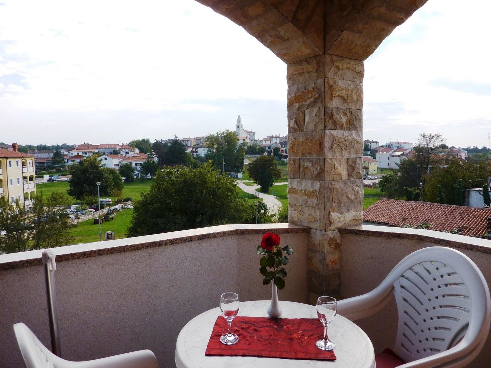 No.9. ****Stern holiday flat A9 is suitable for 2 people and is furnished with wrought iron and solid wood furniture. The holiday flat is located on the 2nd floor and has: - 1 comfortable bedroom with double bed - 1 modern bathroom with hairdryer and Jacuzzi - well-equipped kitchen with living room (44 m2) - covered balcony with a view of the garden and old town (7m2).Satellite TV, Wi-Fi, electric hob, fridge with freezer compartment, coffee maker, electric cooker, microwave, toaster. Air conditioning, safeLoggia 7m2Covered car park In the gardenWell-kept garden with roses, deckchairs and barbecueSmoking is permitted on the balcony, terrace and in the garden.Funtana is a tourist resort in the central part of the west coast of Istria. The indented flat coast with its islets is particularly picturesque and therefore very attractive to tourists. Apart from a good catering offer, Funtana also has sports and leisure facilities. All types of water sports (sailing, diving, water skiing) and well-marked cycling routes are particularly popular.The small and cosy town of Vrsar, where the famous heartbreaker Casanova spent part of his time, is 3 km away and Porec with its Euphrasian complex, declared a UNESCO World Heritage Site in 1997, is only 6 km away, as are many interesting towns such as Rovinj, one of the most romantic tourist towns on the Adriatic, or Pula with its numerous Roman monuments. The medieval town of Motovun and the artists' town of Grožnjan, as well as many other small towns in the heart of Istria, can be reached within an hour's drive.