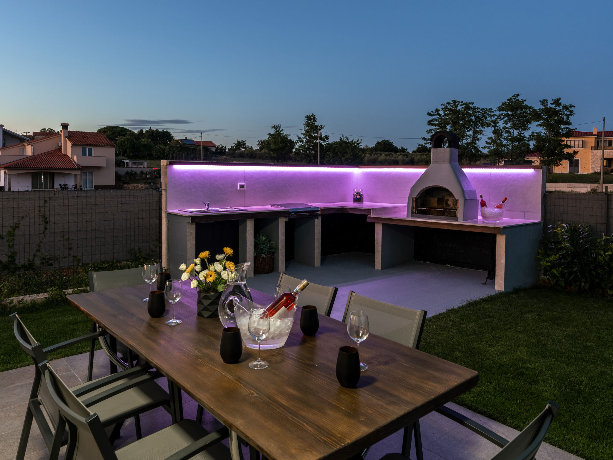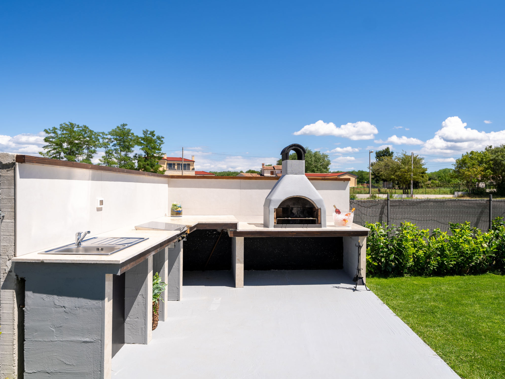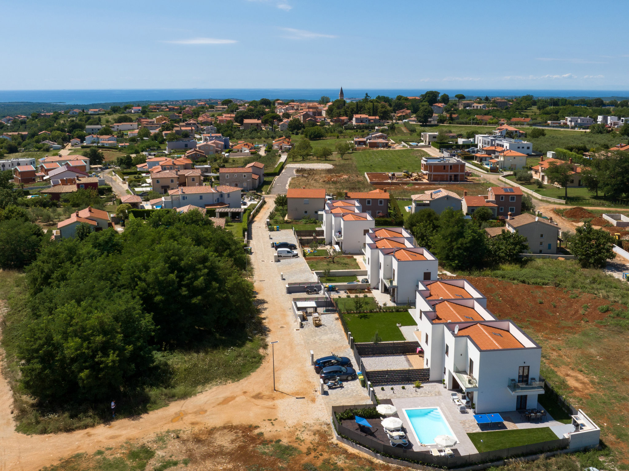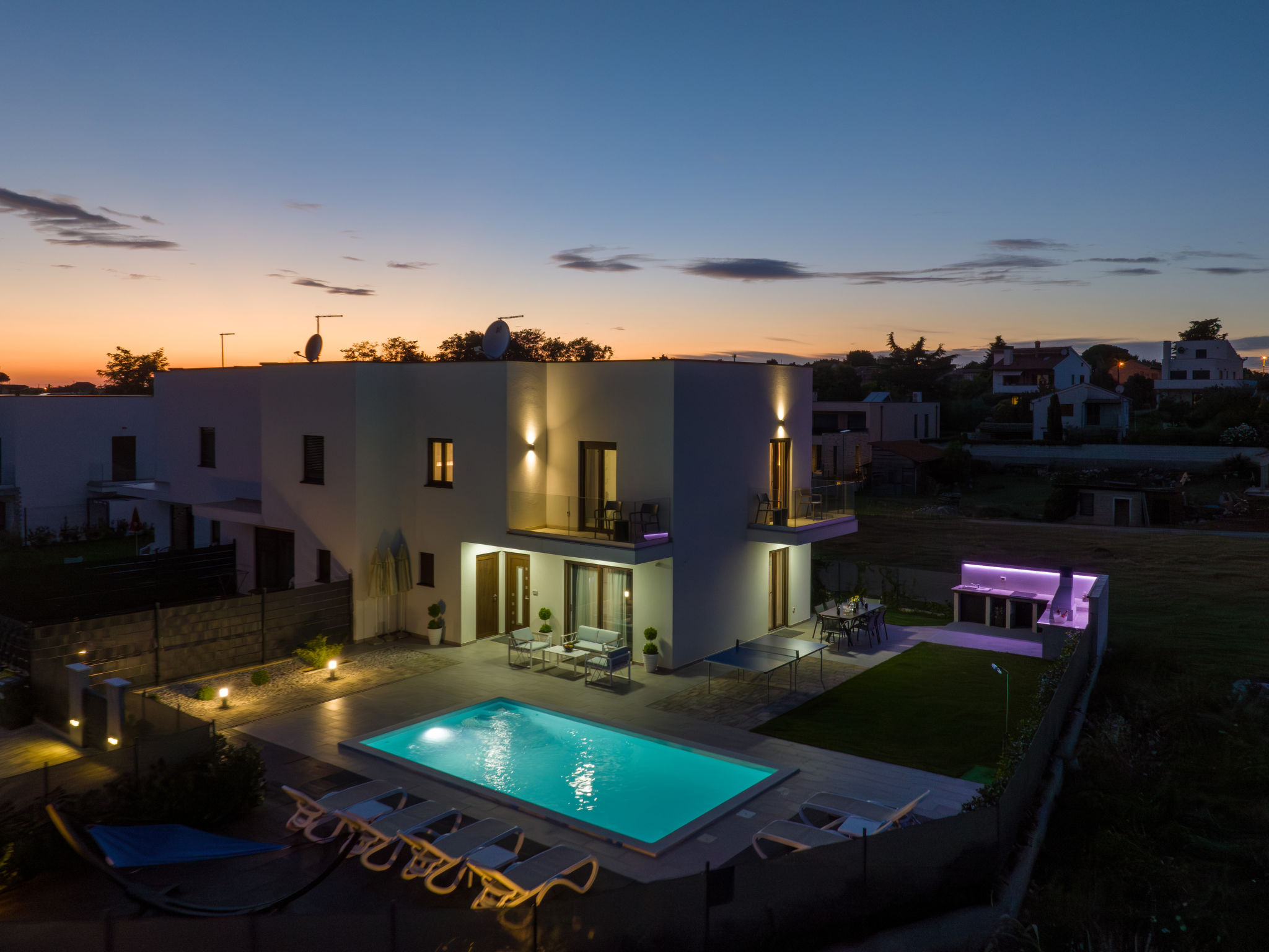 Mooi rijtjeshuis "Aria Blue", van 2 verdiepingen. In het gehucht Krancici, 500 m van het centrum van Kaštelir, 15 km van het centrum van Porec, zonnige ligging, 10 km van zee. Voor alleengebruik: terrein 275 m2 (omheind), openluchtzwembad hoekig (7 x 4 m, 145 cm diepte, seizoensgebonden beschikbaarheid: 01.Mrt. - 10.Dec.) met trap. Buitendouche, tafeltennis, terras (10 m2), tuinmeubelen, barbecue. In het huis: internetaansluiting, wasmachine. Parkeerplaats (voor 2 auto's) bij het huis. Winkel 500 m, restaurant 2 km, bushalte 6.1 km, kiezelstrand 10 km, rotsstrand 10 km. Wandelroutes 100 m vanaf het huis, fietspad 150 m. Geschikt voor families. De eigenaar accepteert geen jeugdgroepen.