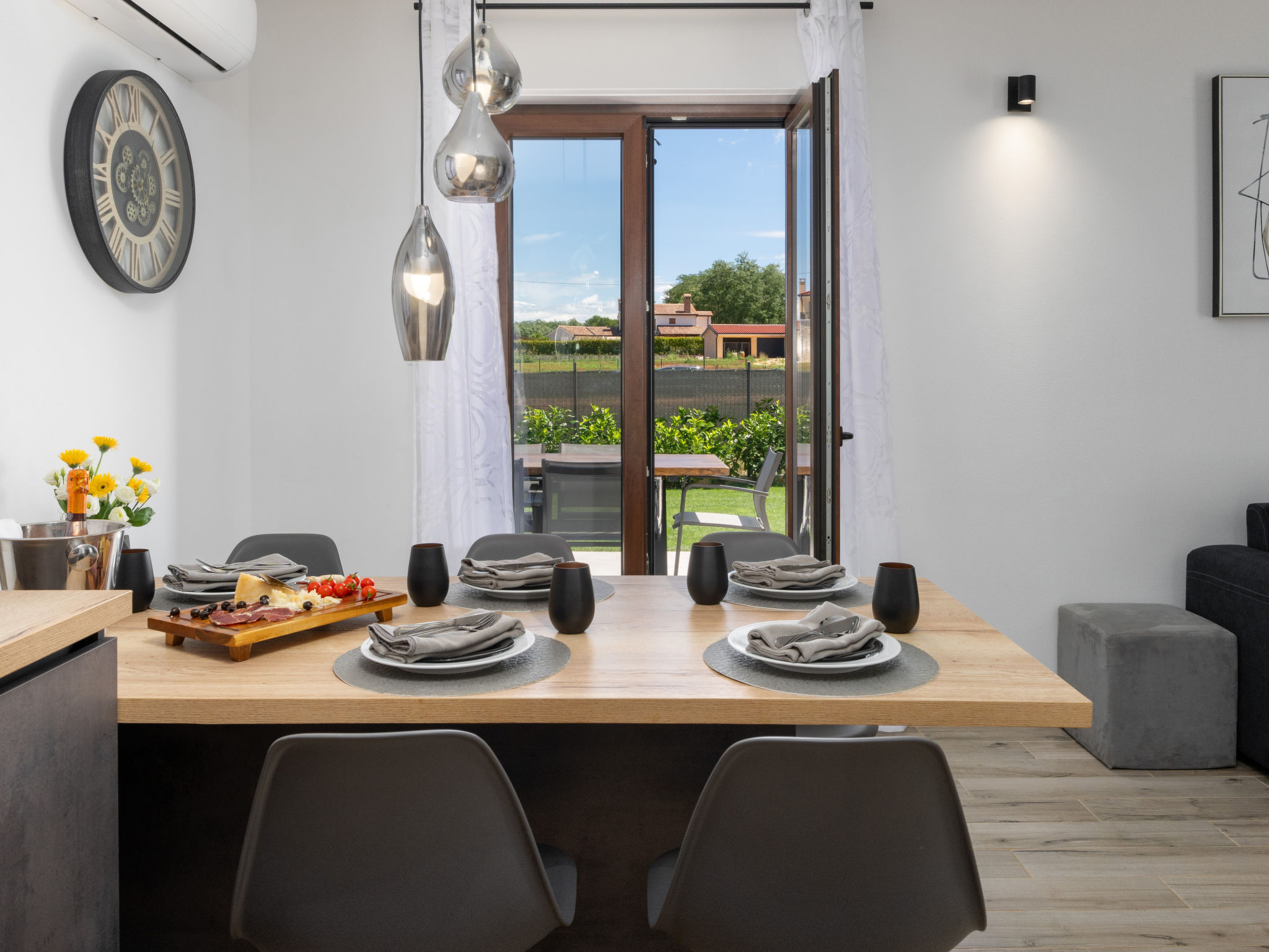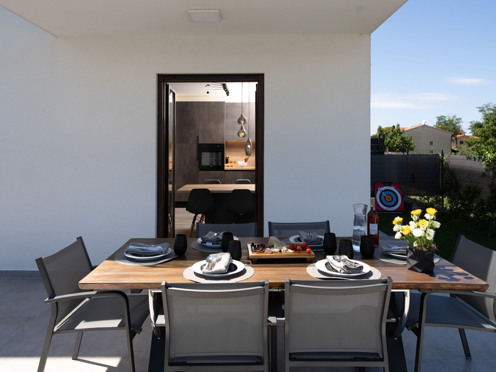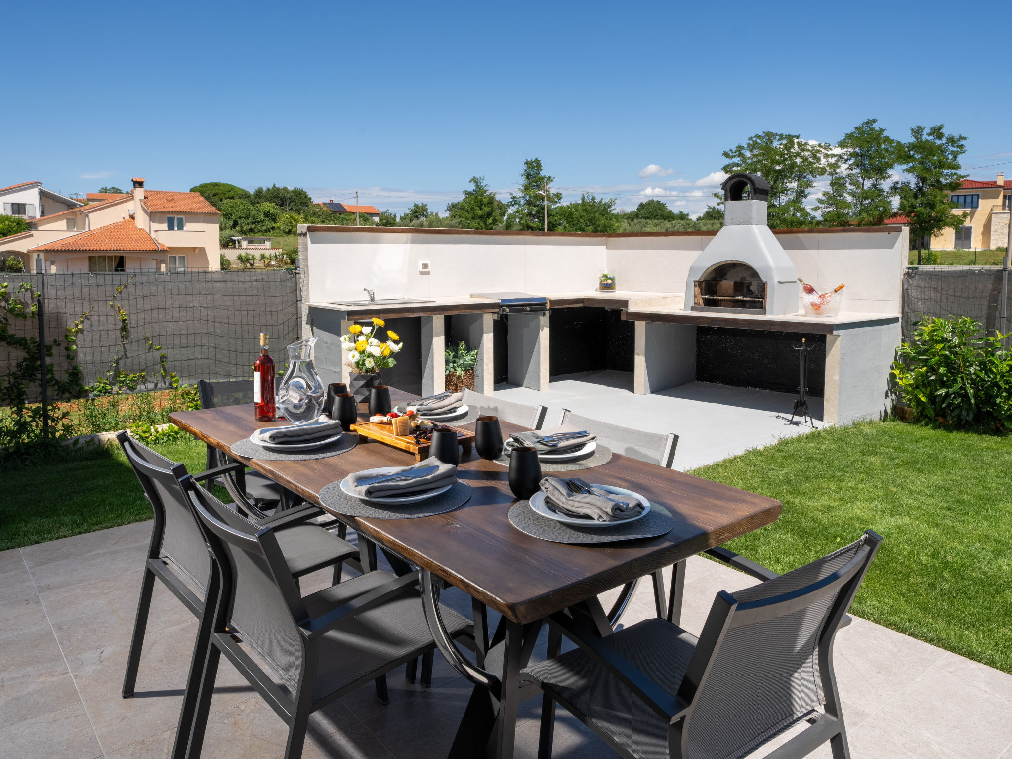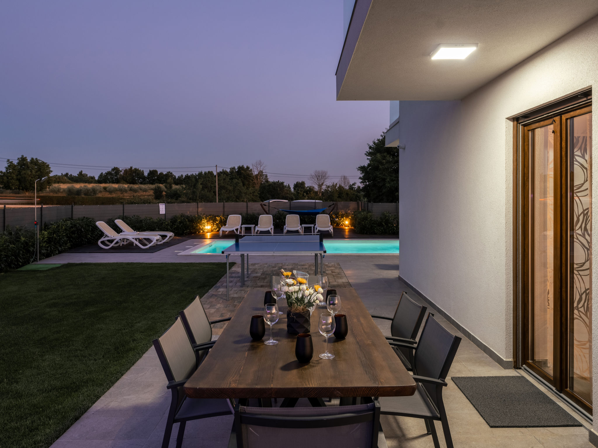 Mooi rijtjeshuis "Aria Blue", van 2 verdiepingen. In het gehucht Krancici, 500 m van het centrum van Kaštelir, 15 km van het centrum van Porec, zonnige ligging, 10 km van zee. Voor alleengebruik: terrein 275 m2 (omheind), openluchtzwembad hoekig (7 x 4 m, 145 cm diepte, seizoensgebonden beschikbaarheid: 01.Mrt. - 10.Dec.) met trap. Buitendouche, tafeltennis, terras (10 m2), tuinmeubelen, barbecue. In het huis: internetaansluiting, wasmachine. Parkeerplaats (voor 2 auto's) bij het huis. Winkel 500 m, restaurant 2 km, bushalte 6.1 km, kiezelstrand 10 km, rotsstrand 10 km. Wandelroutes 100 m vanaf het huis, fietspad 150 m. Geschikt voor families. De eigenaar accepteert geen jeugdgroepen.