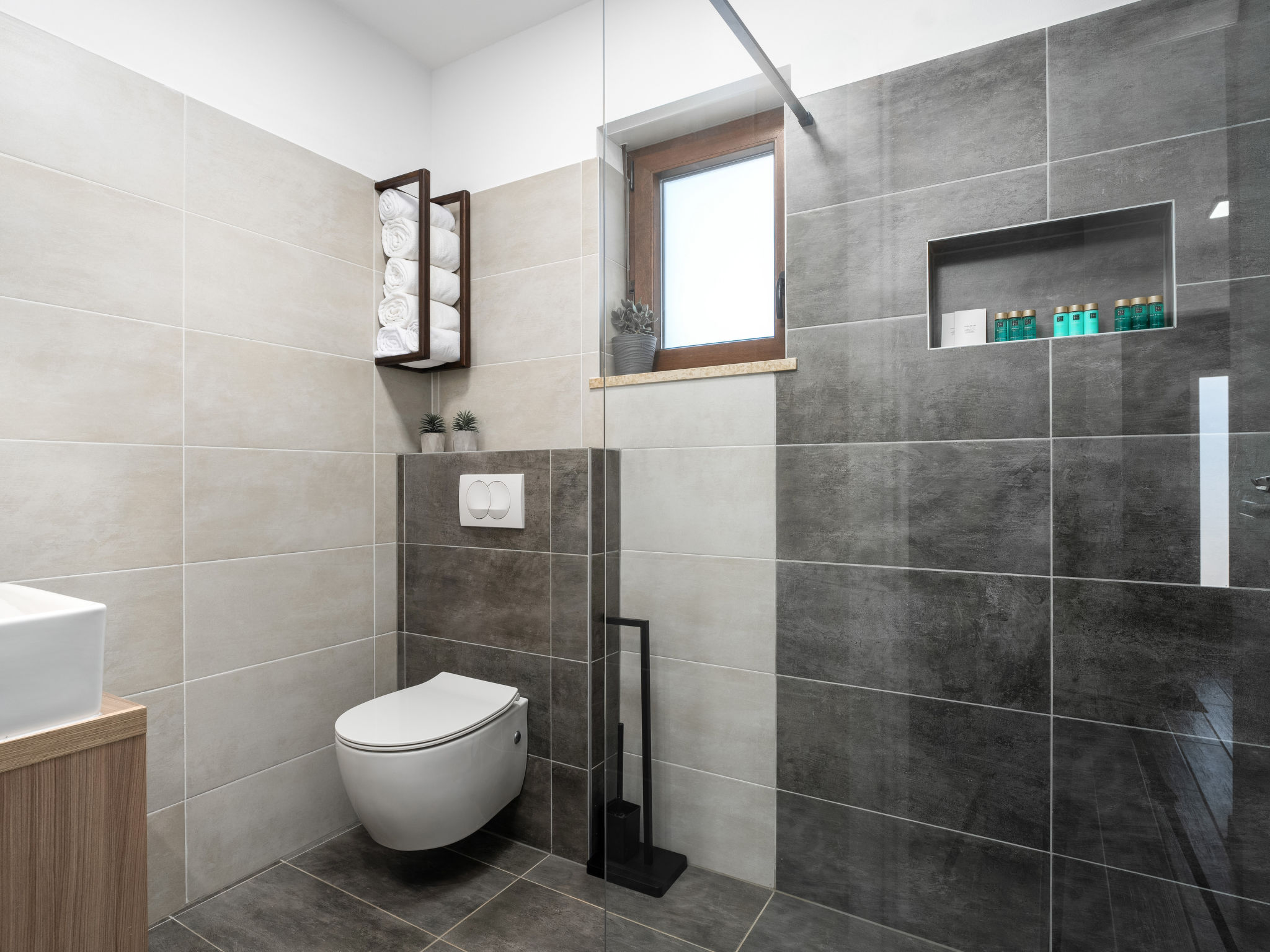 Huis 4-kamers 90 m2 op 2 verdiepingen. Gezellig ingericht: woon-/eetkamer met Sat-TV en air-conditioning. Uitgang naar het zwembad. Open keuken (oven, afwasmachine, 4 keramische glas kookplaten, broodrooster, waterkoker, magnetron, diepvriezer, elektrische koffiemachine). Douche/WC. Bovenverdieping: 2 kamers, elke kamer heeft 1 2-pers bed (2 x 90 cm, lengte 200 cm), Sat-TV en air-conditioning. Uitgang naar het terras. 1 kamer met 1 2-pers bed (130 cm, lengte 200 cm), Sat-TV en air-conditioning. Douche/WC, aparte WC. Vloerverwarming. 2 terrassen 6 m2, terras 12 m2, overdekt. Terrasmeubelen, ligstoelen. Ter beschikking: kluis, klamboe, kinderstoel, kinderbed, haardroger. Internet (Internet (WiFi), gratis). 2163-10-24-23-3