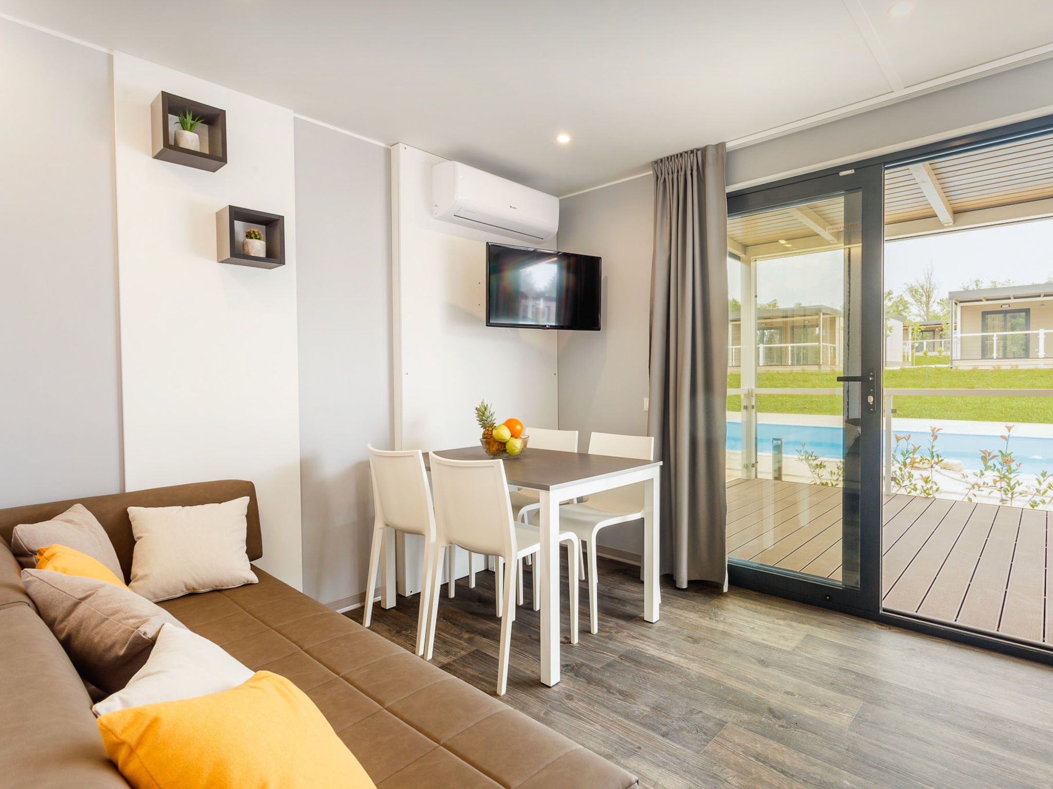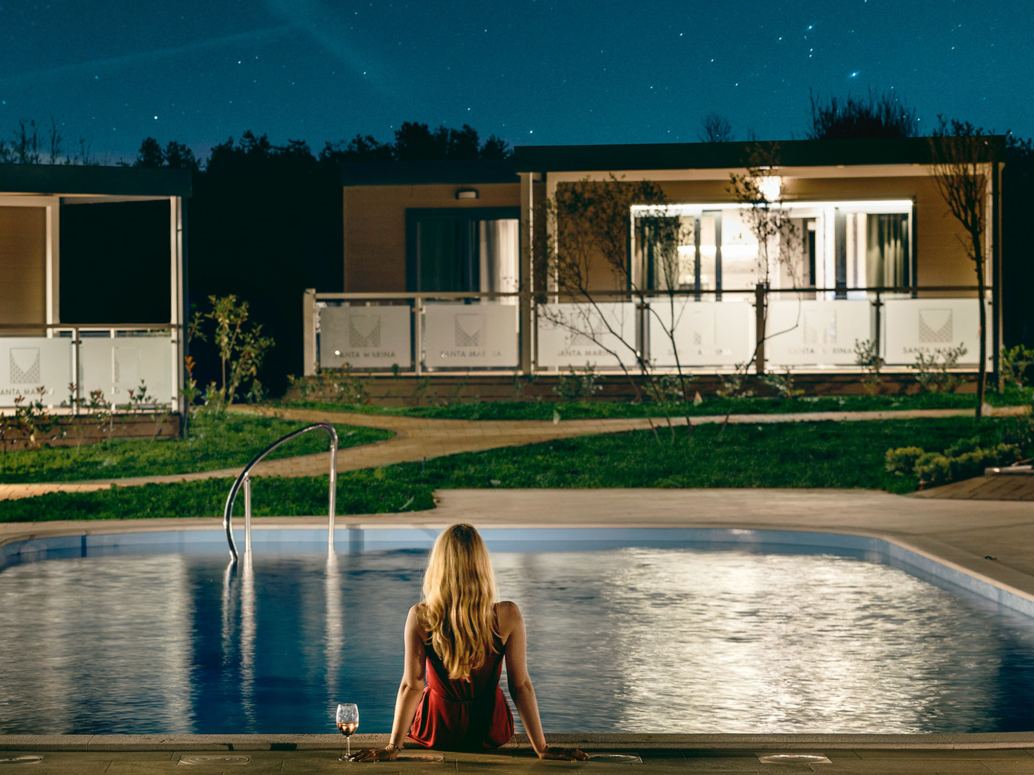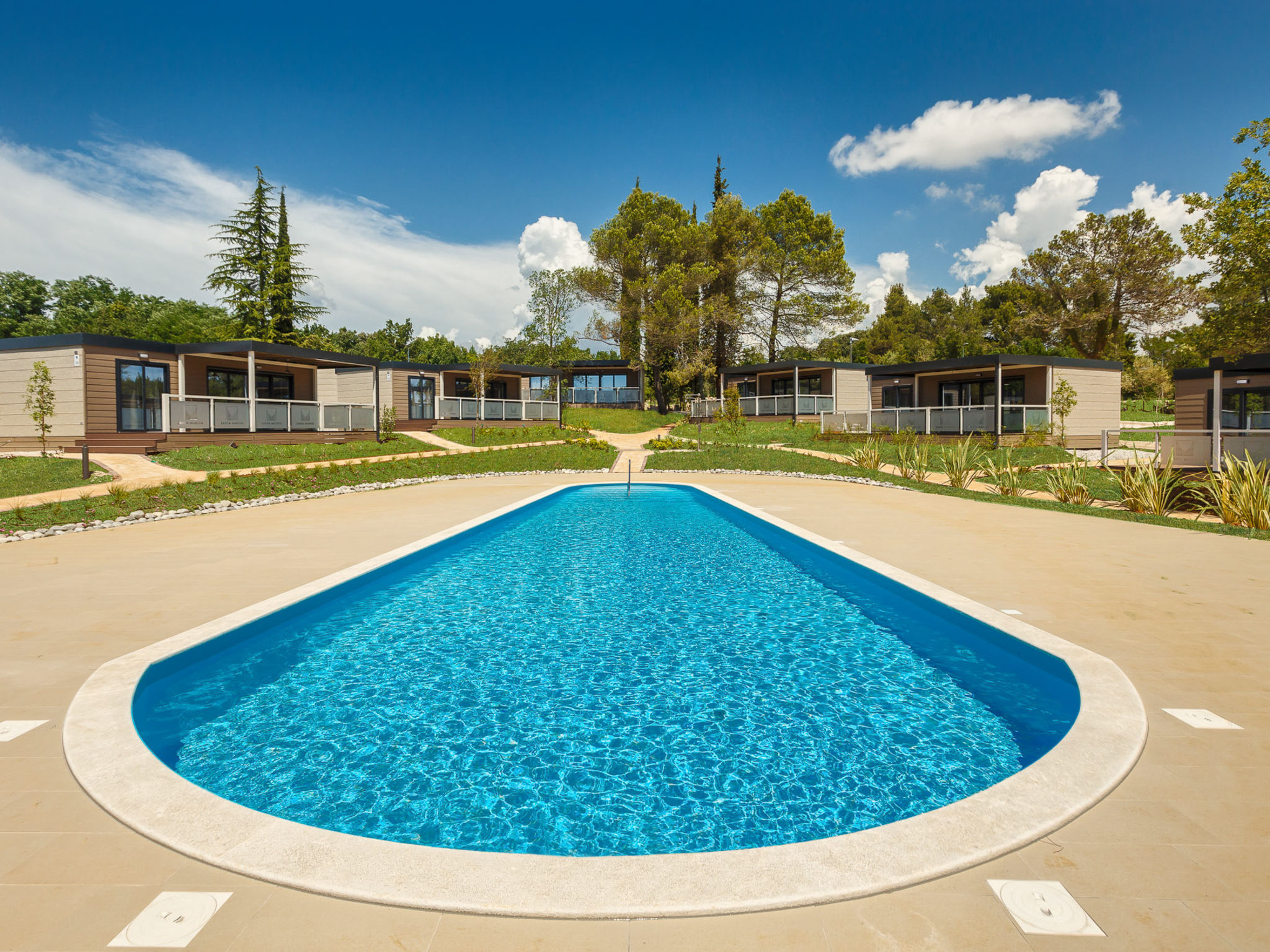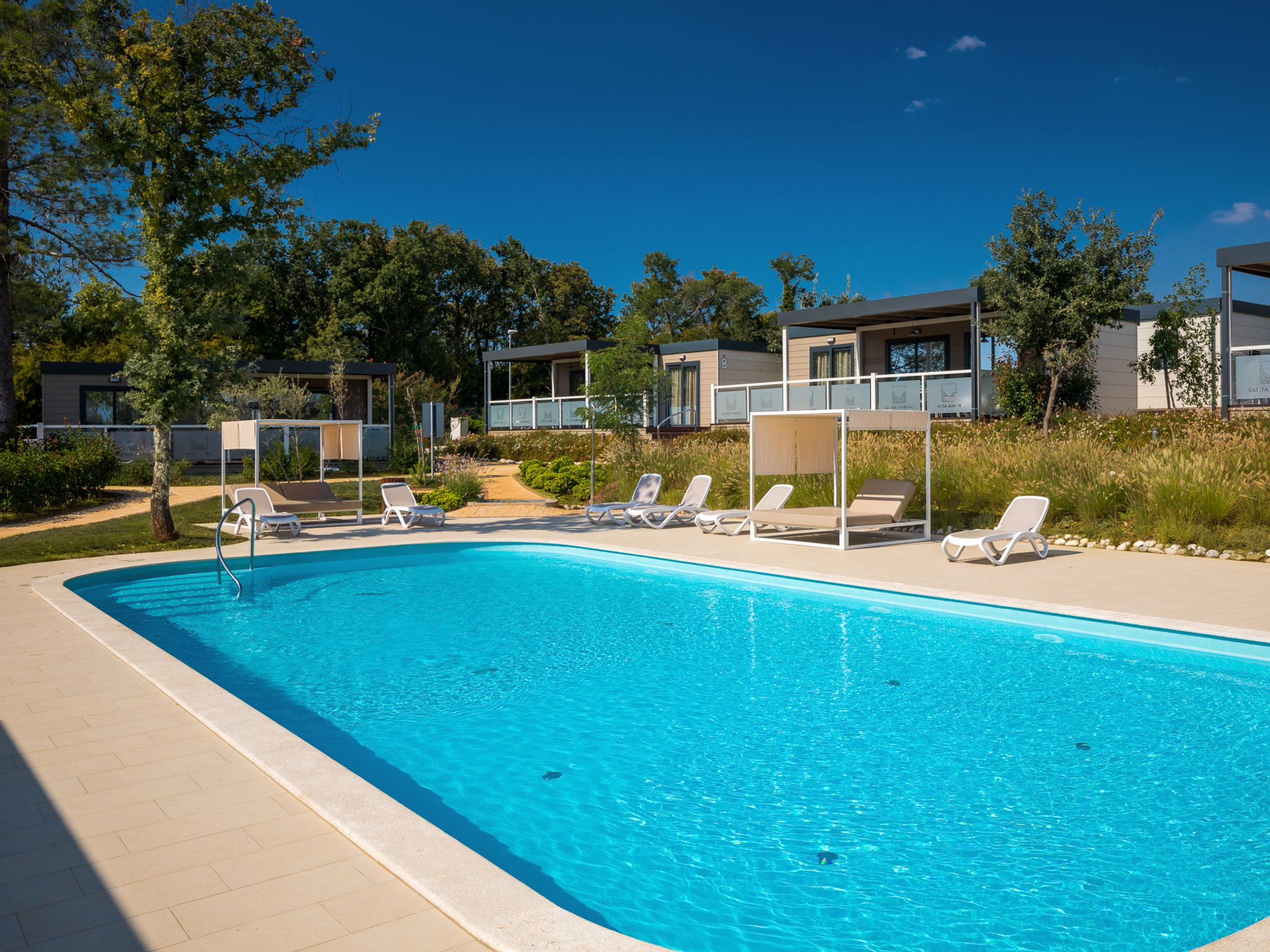 Mooi zwembad met zicht op zee in Novigrad. Er is een zwembad met zeewater en de bar biedt eten en drinken. Het eenvoudige podium biedt overdag diverse activiteiten en een programma, 's avonds optredens van diverse bands.