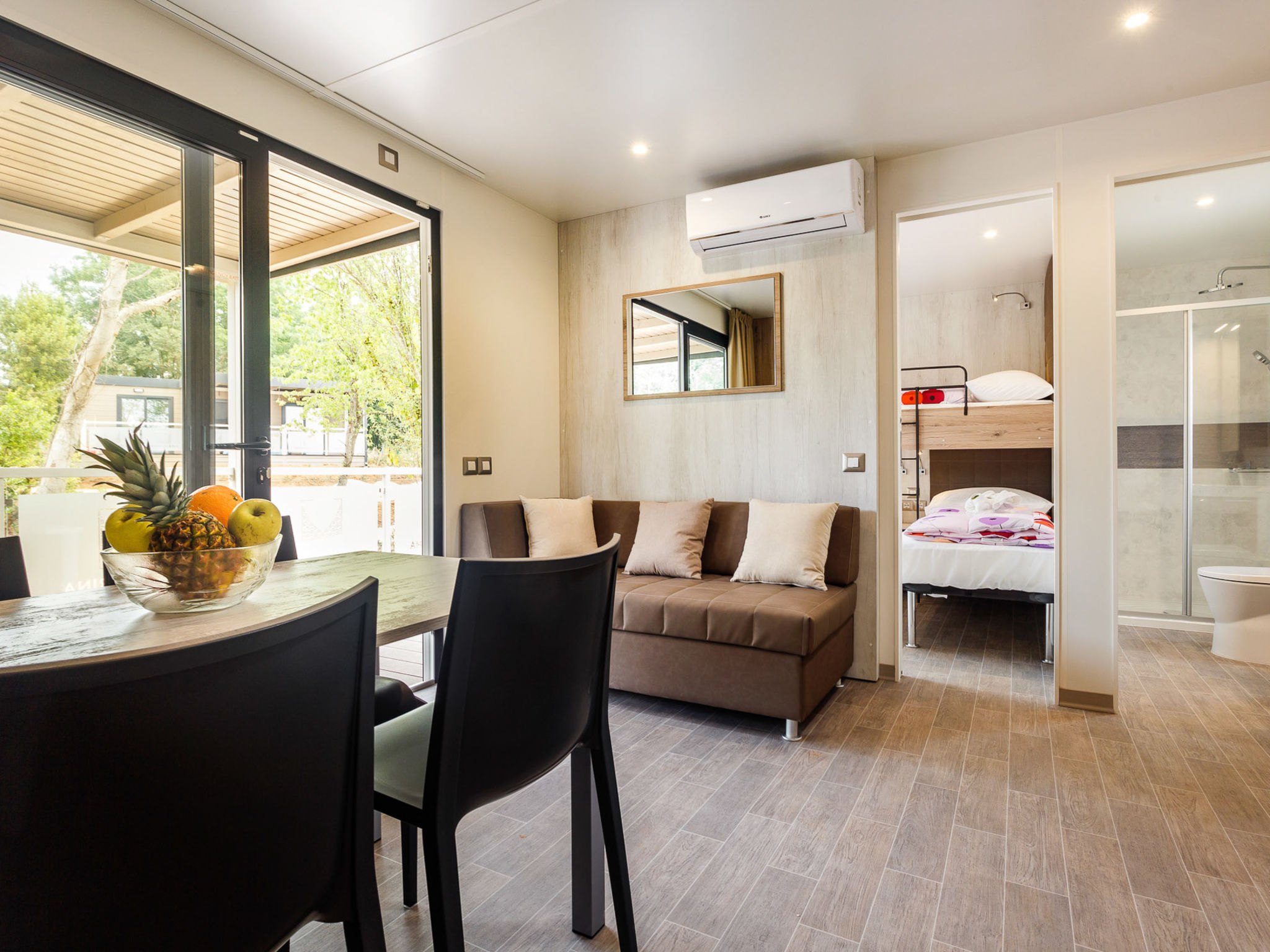 Een schoon netjes strand gelegen in een dicht dennenbos. De grond is bedekt met een dikke laag dennennaalden zodat het comfortabel is om te lopen of te liggen. Er is een gedeelte voor mindervaliden. Het strand heeft een grote speeltuin voor kinderen. Schoon en geschikt voor families met jonge kinderen. Vind je vakantiehuis Porec.
