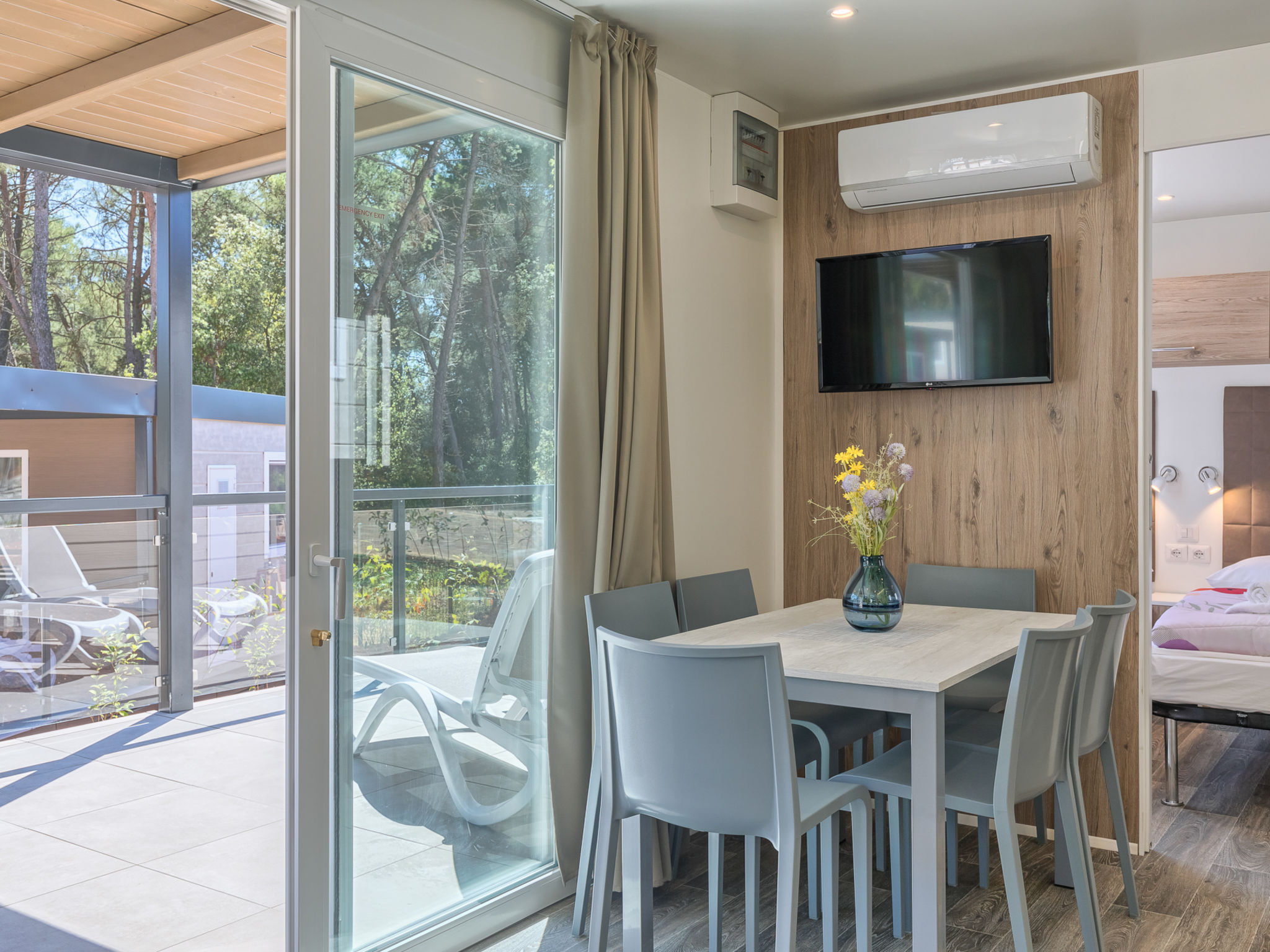 Mooi zwembad met zicht op zee in Novigrad. Er is een zwembad met zeewater en de bar biedt eten en drinken. Het eenvoudige podium biedt overdag diverse activiteiten en een programma, 's avonds optredens van diverse bands.