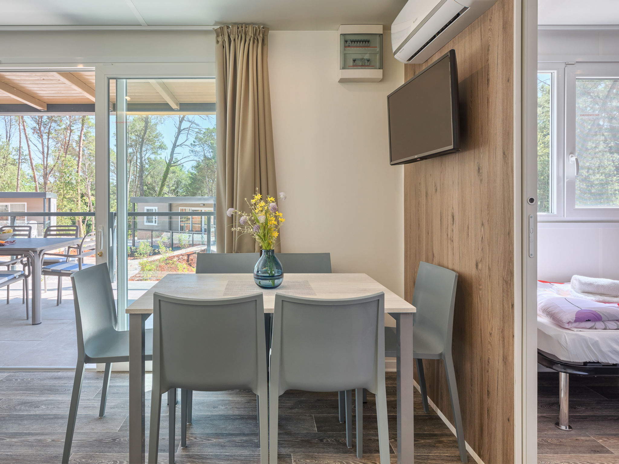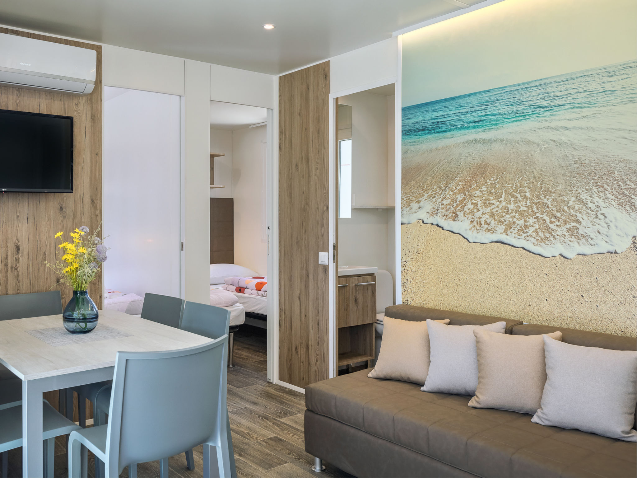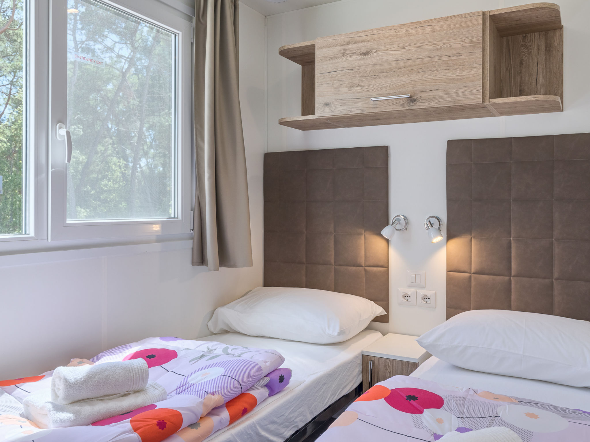 Een schoon netjes strand gelegen in een dicht dennenbos. De grond is bedekt met een dikke laag dennennaalden zodat het comfortabel is om te lopen of te liggen. Er is een gedeelte voor mindervaliden. Het strand heeft een grote speeltuin voor kinderen. Schoon en geschikt voor families met jonge kinderen. Vind je vakantiehuis Porec.